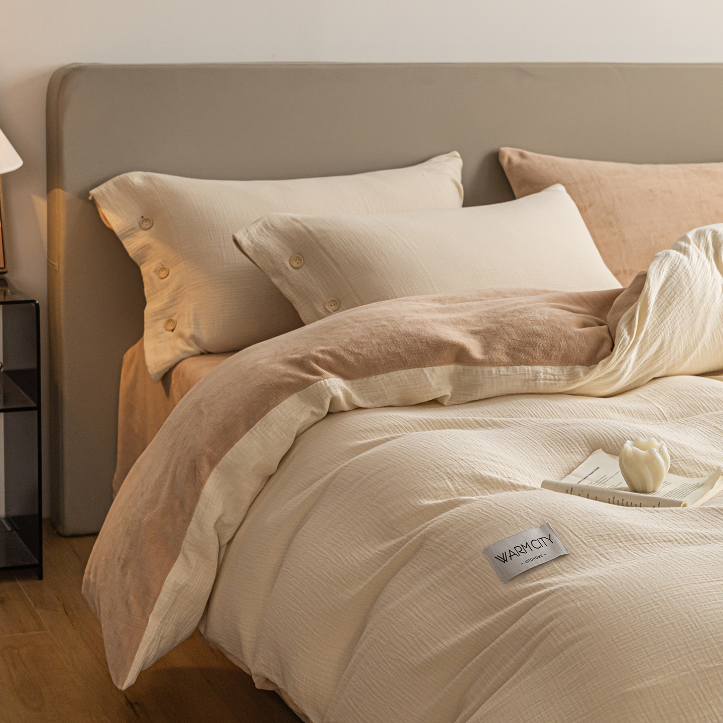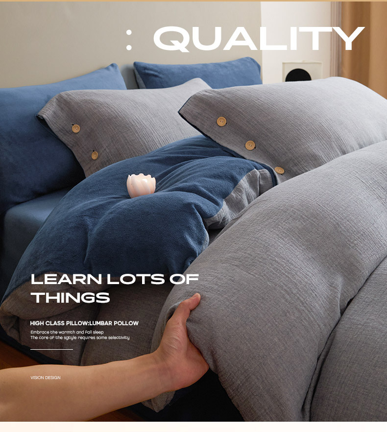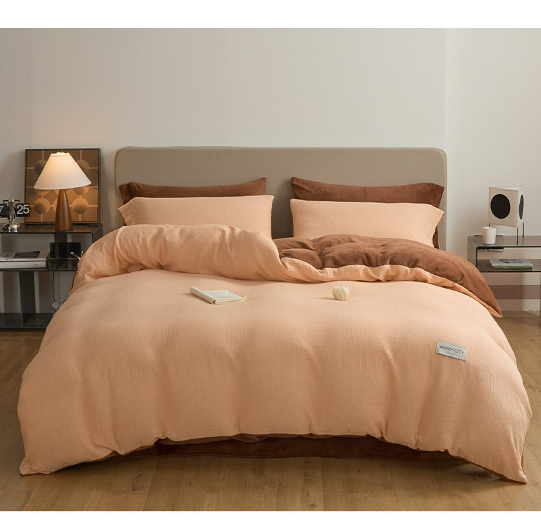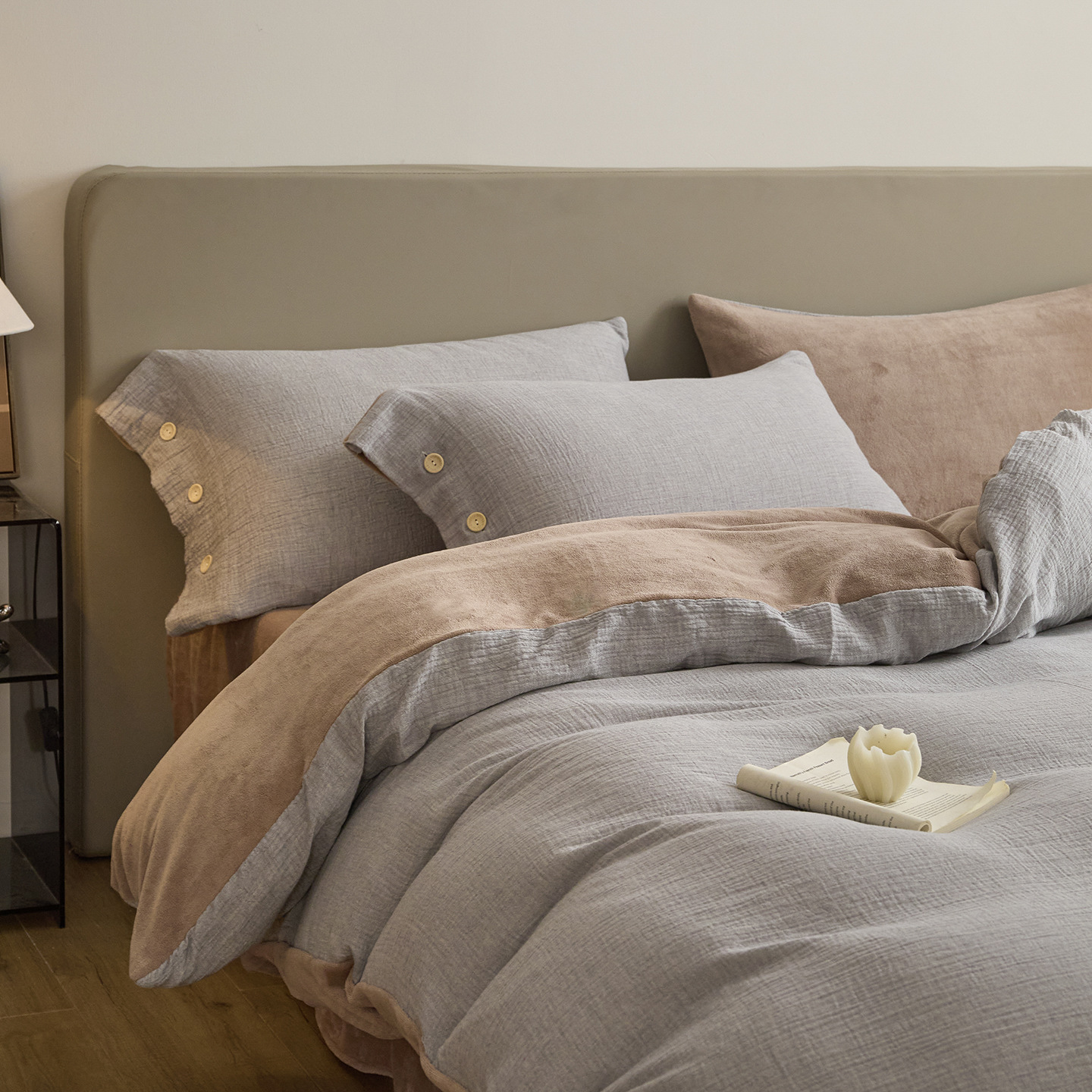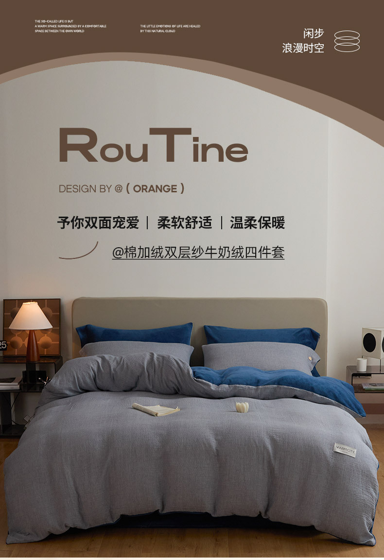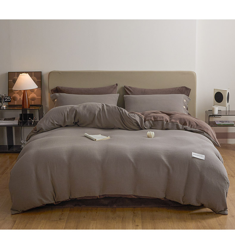 ab面四件套纯棉全棉加绒被套床单珊瑚绒冬季单面绒牛奶绒床上用品