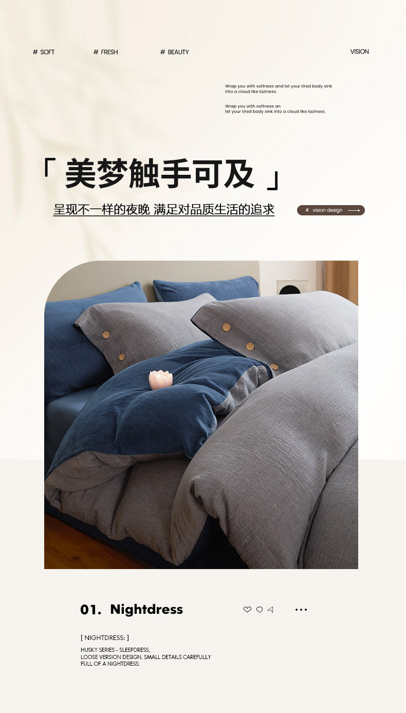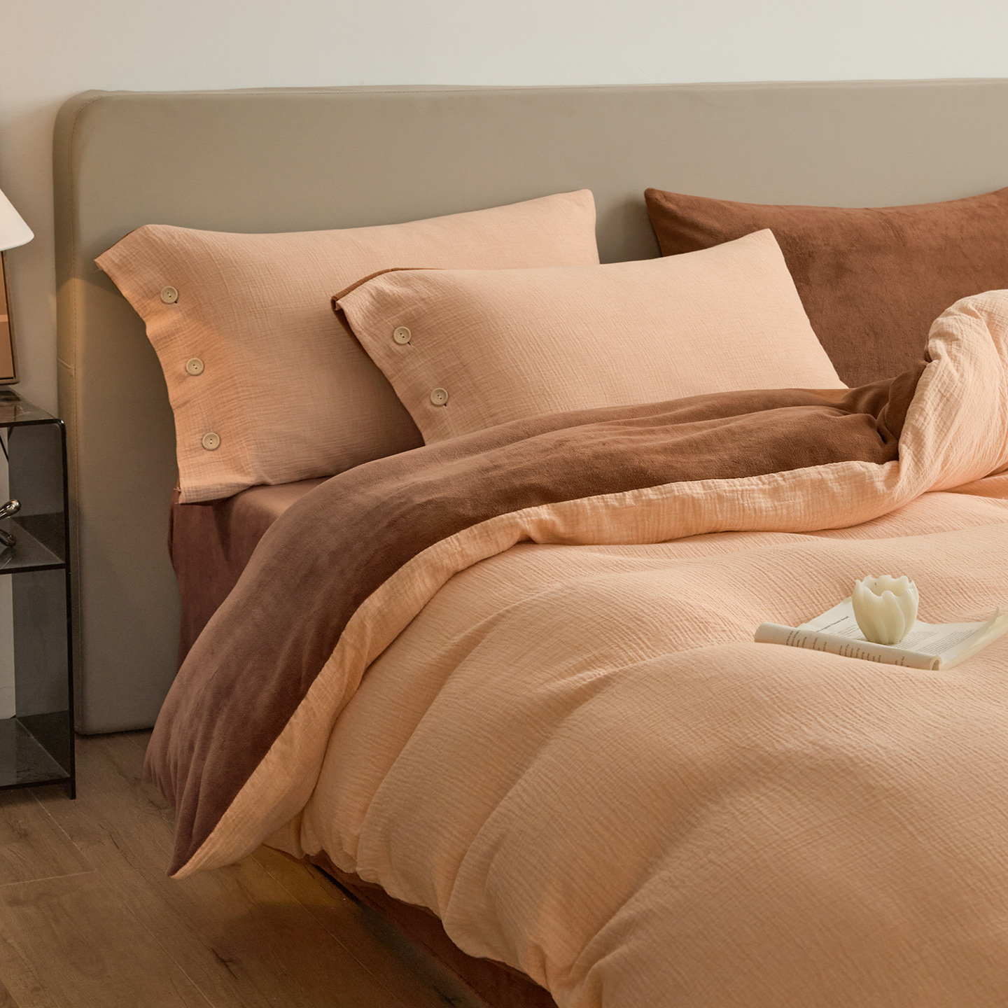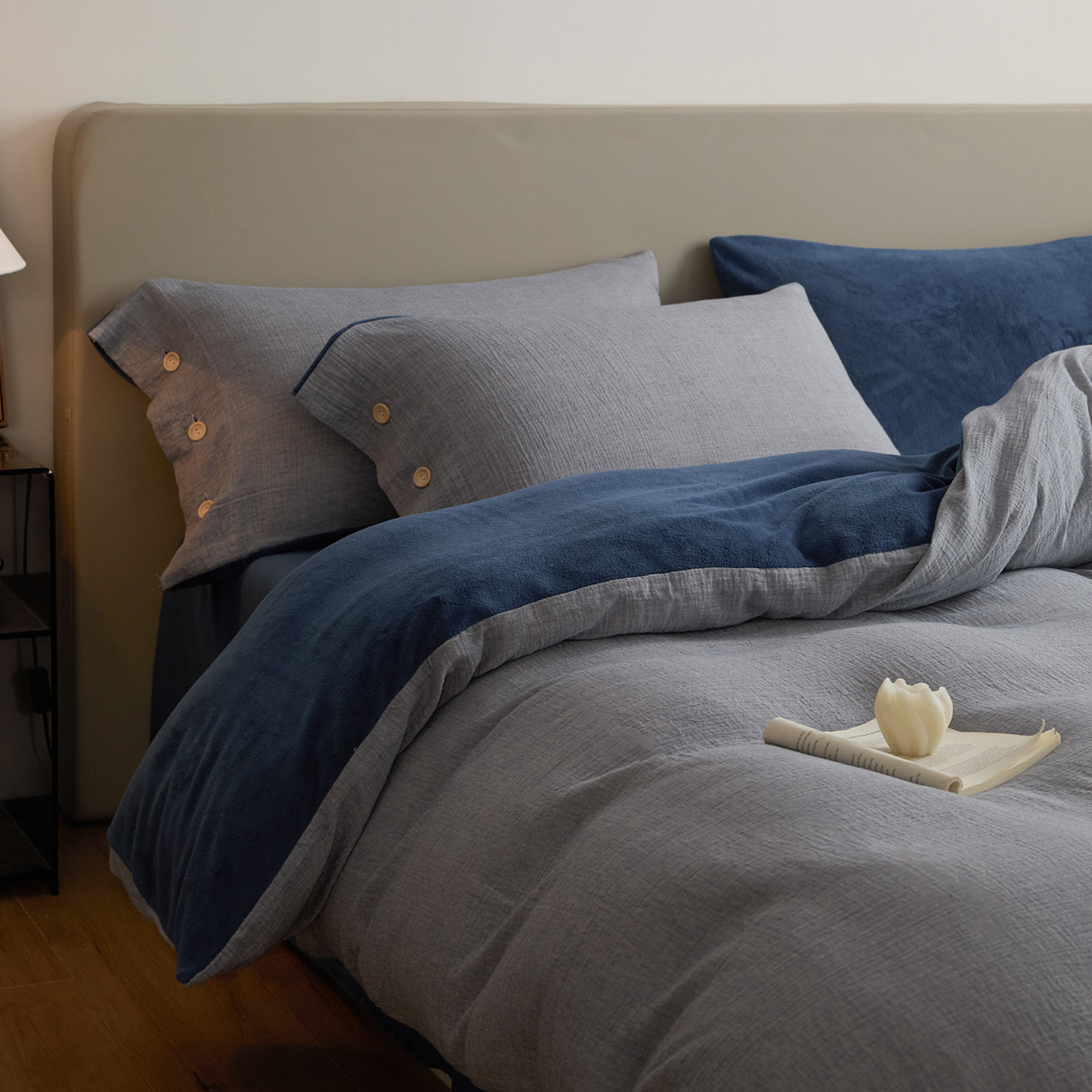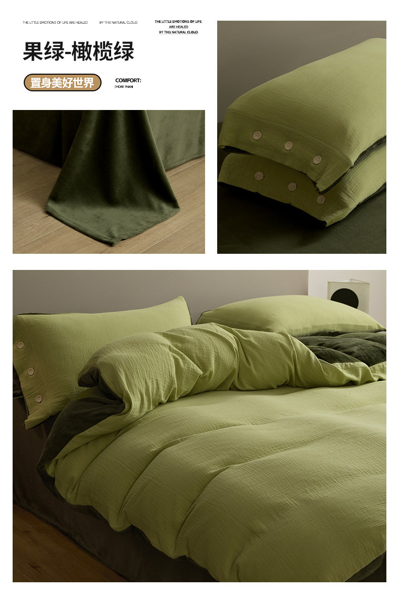 ab面四件套纯棉全棉加绒被套床单珊瑚绒冬季单面绒牛奶绒床上用品