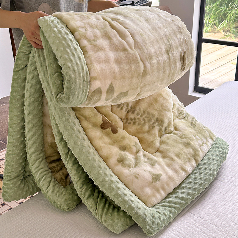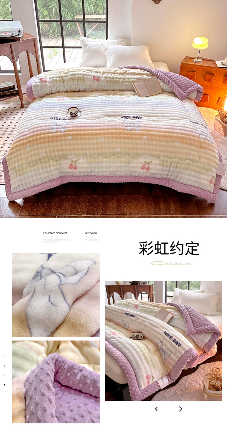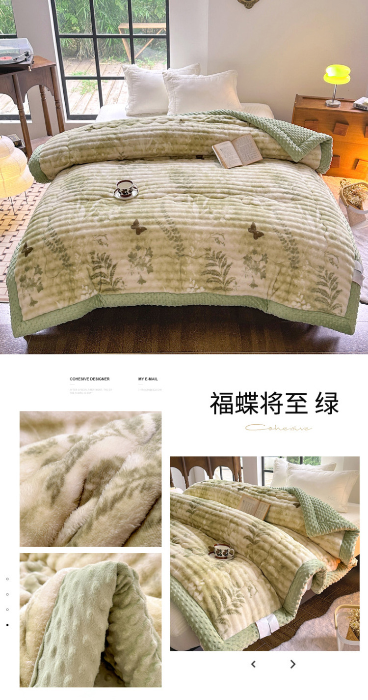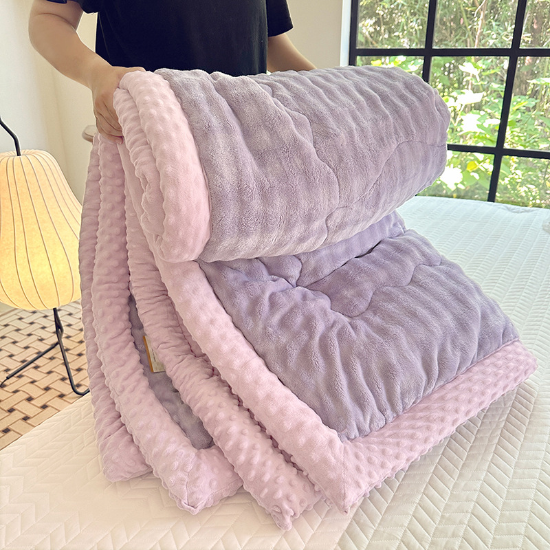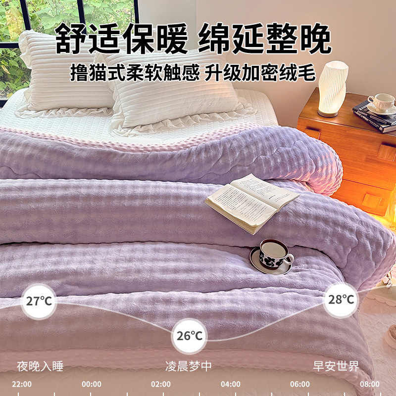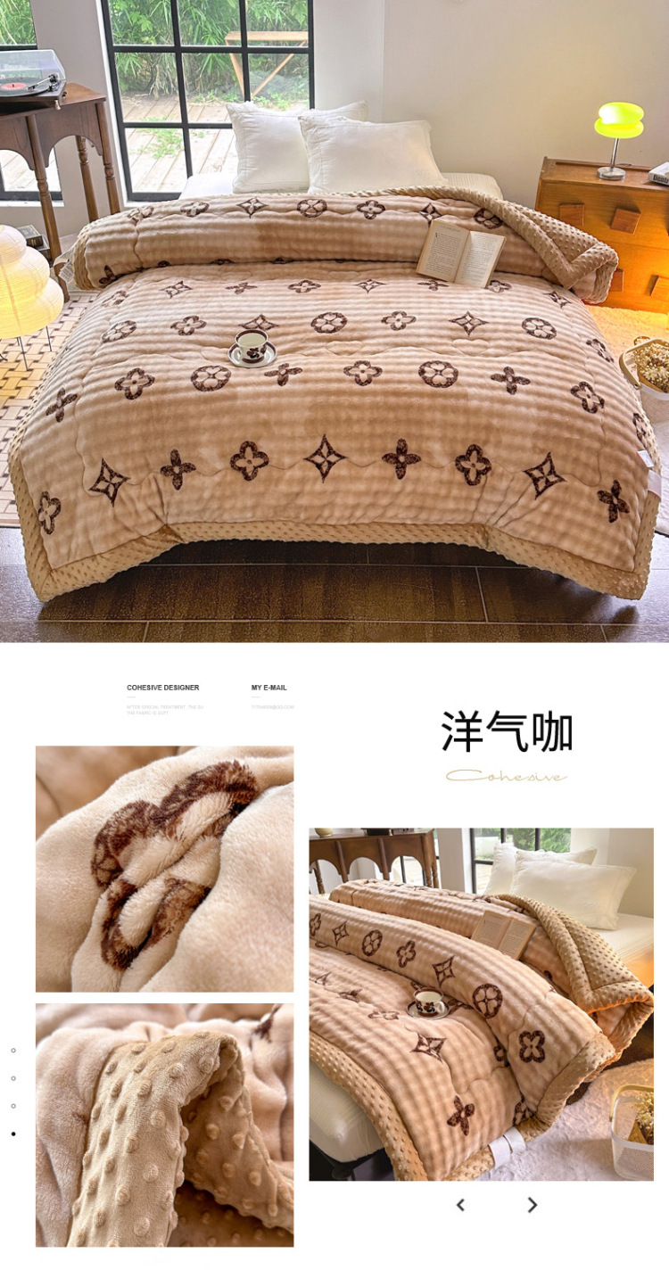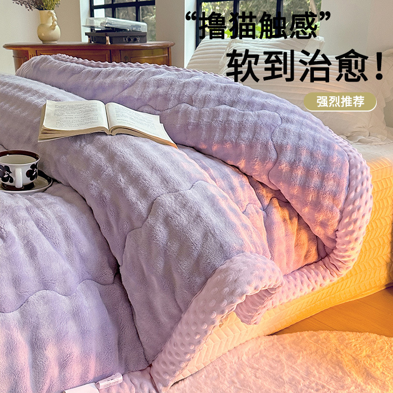 2025冬季新款仿兔绒高克重三层夹棉加厚毛毯毯子家用卧室毛毯被子