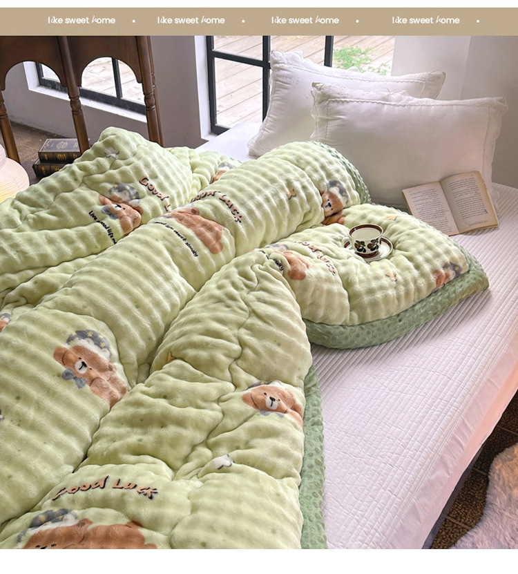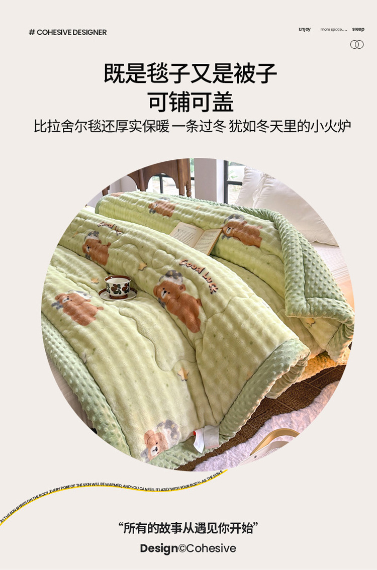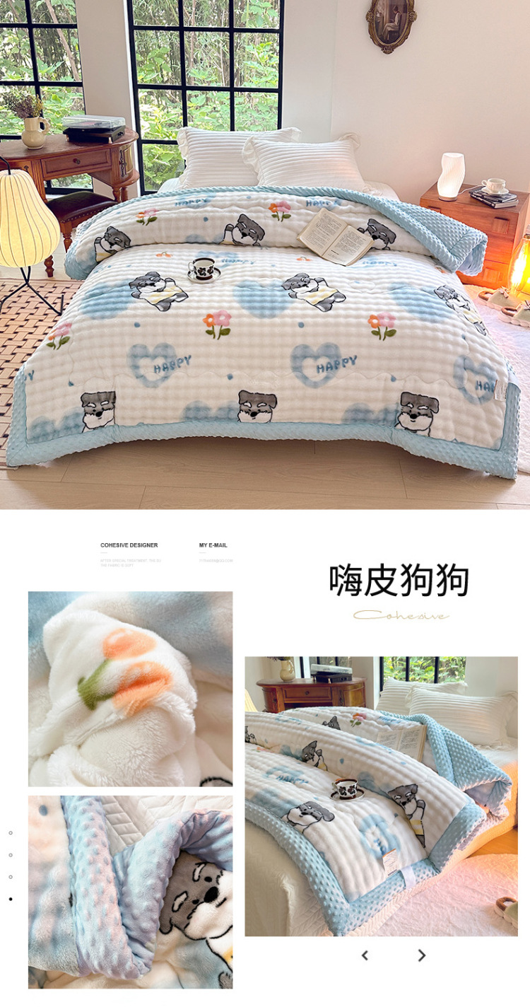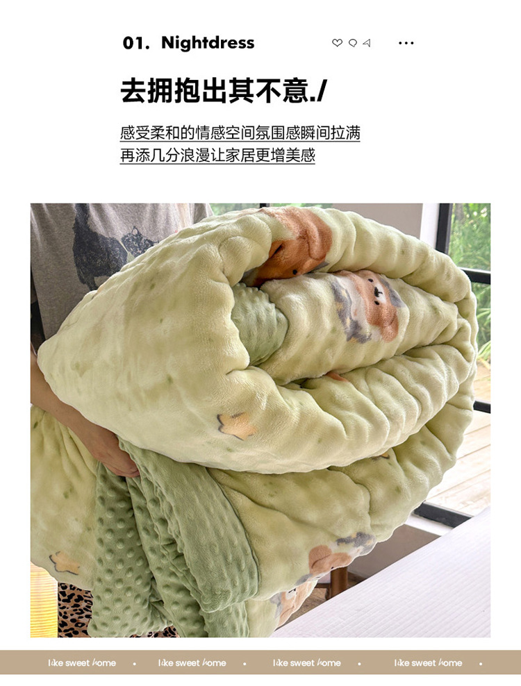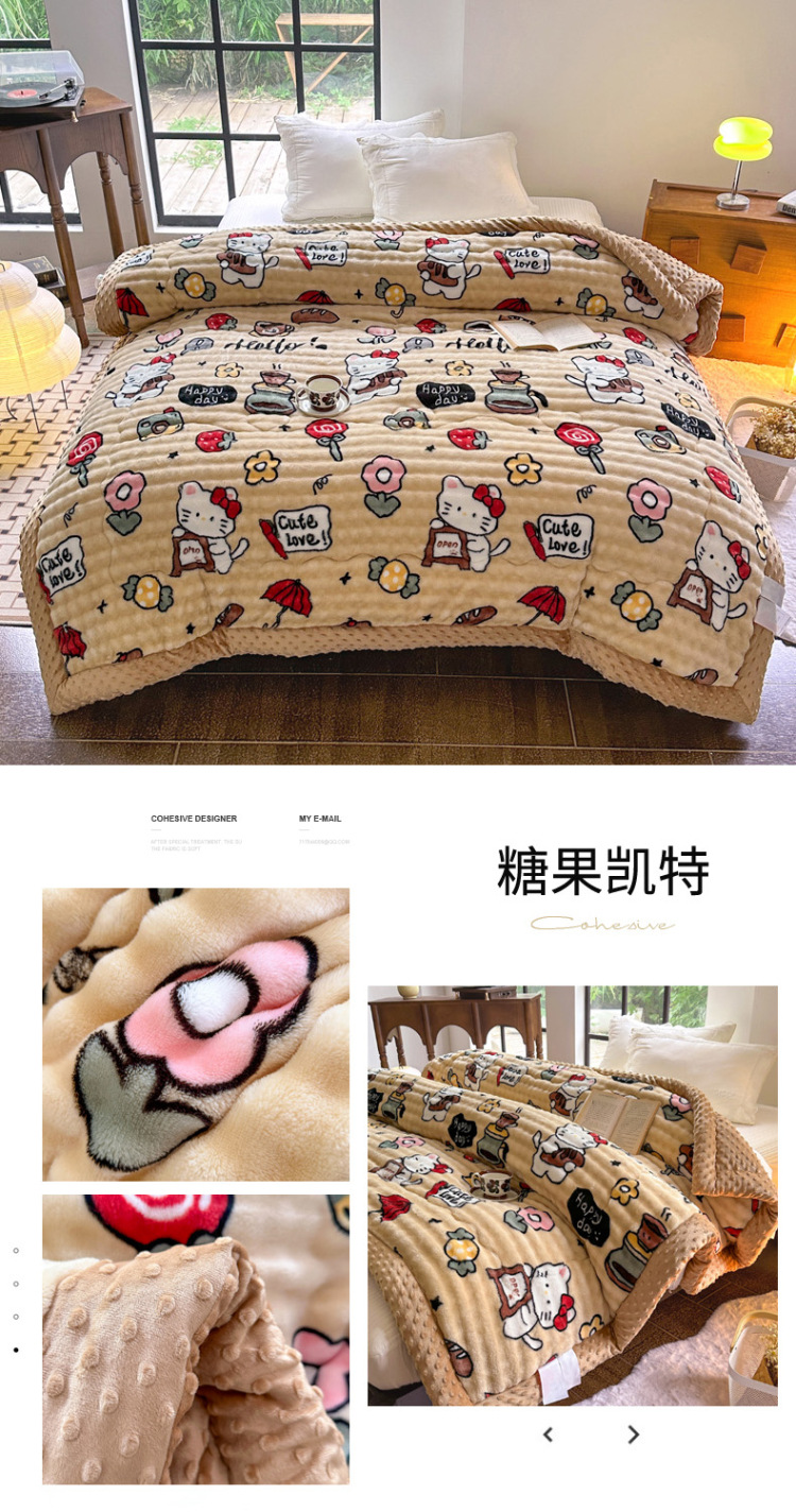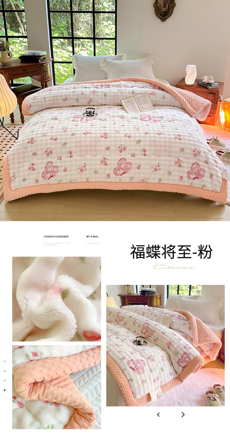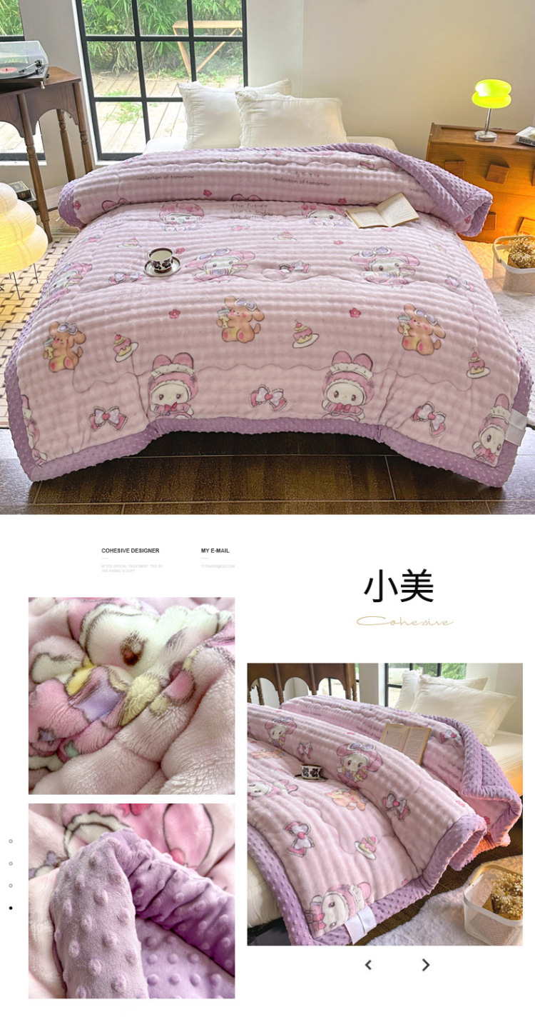 2025冬季新款仿兔绒高克重三层夹棉加厚毛毯毯子家用卧室毛毯被子