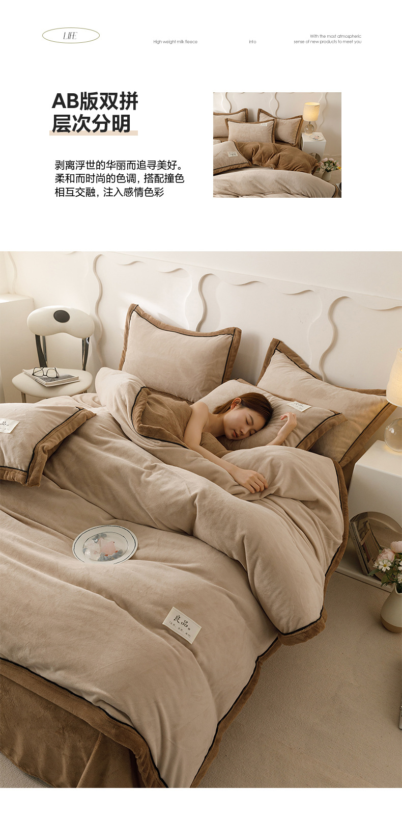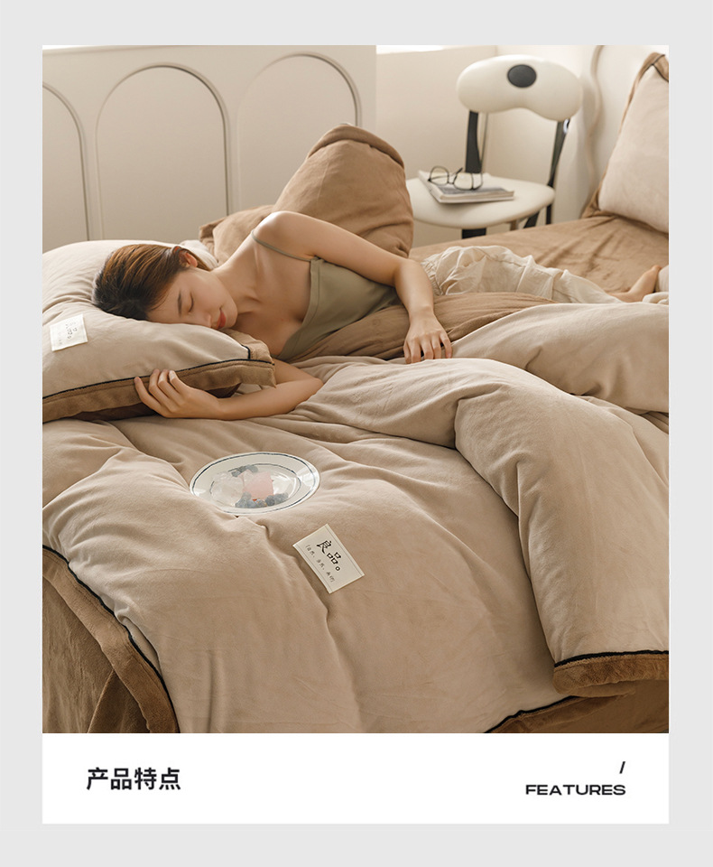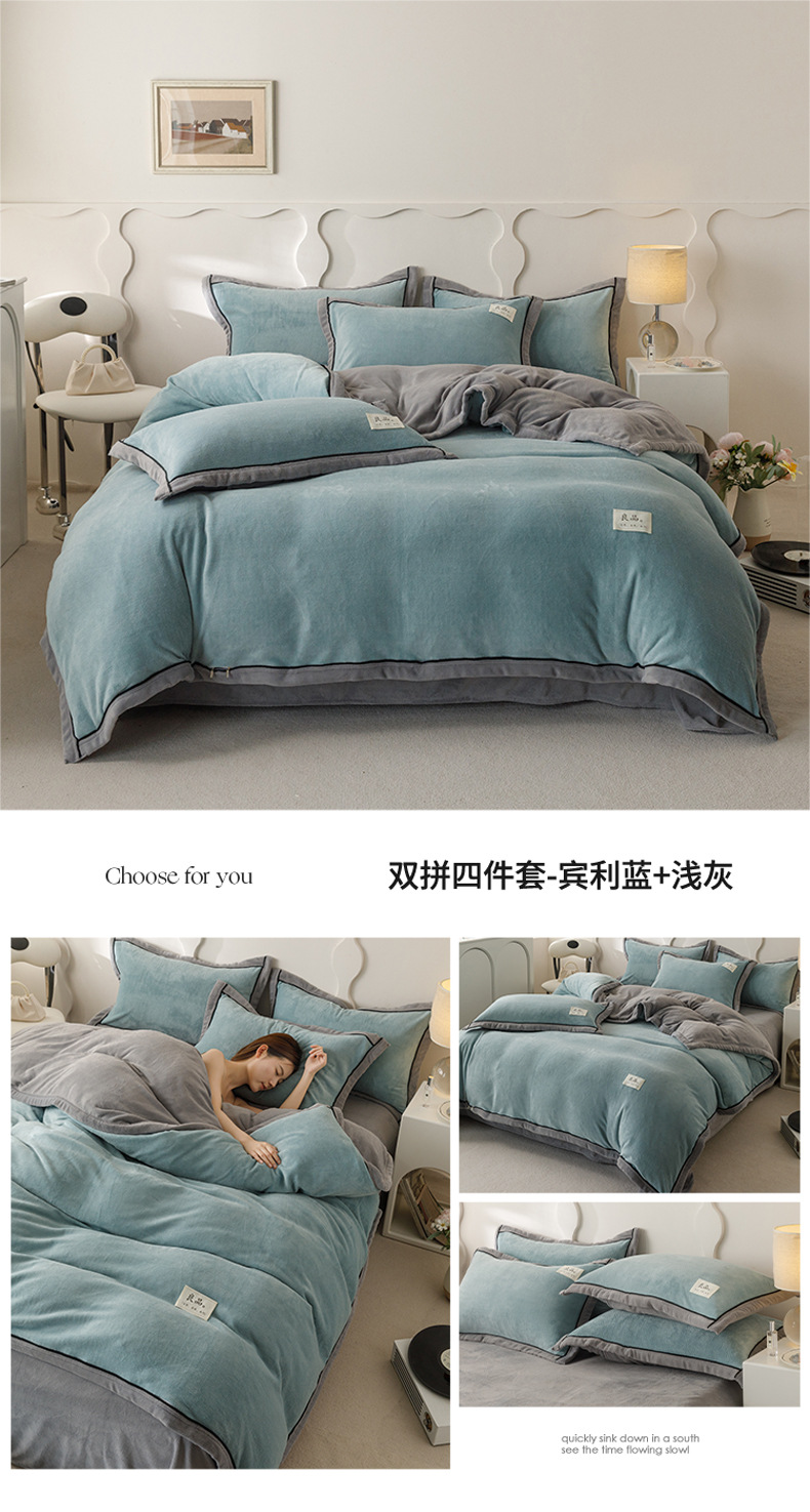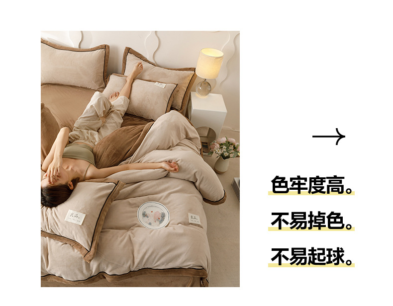 冬季加厚牛奶绒四件套珊瑚保暖双面加绒法兰绒床单被套宿舍三件套