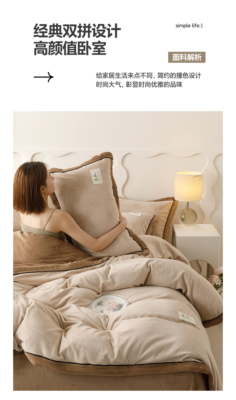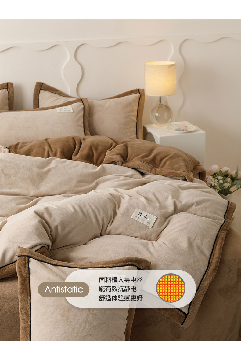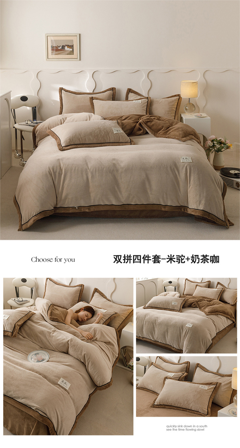 冬季加厚牛奶绒四件套珊瑚保暖双面加绒法兰绒床单被套宿舍三件套