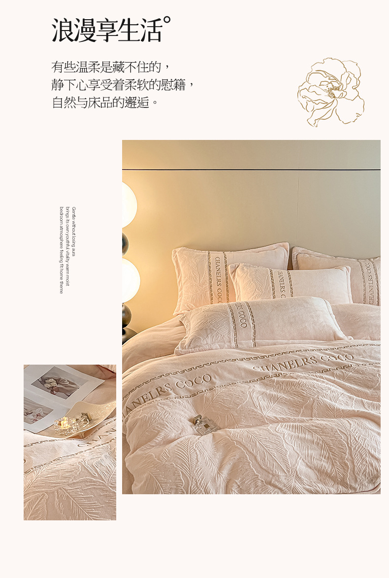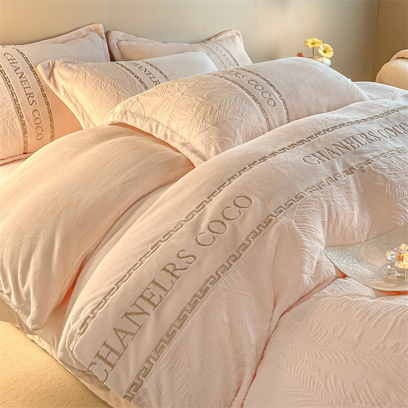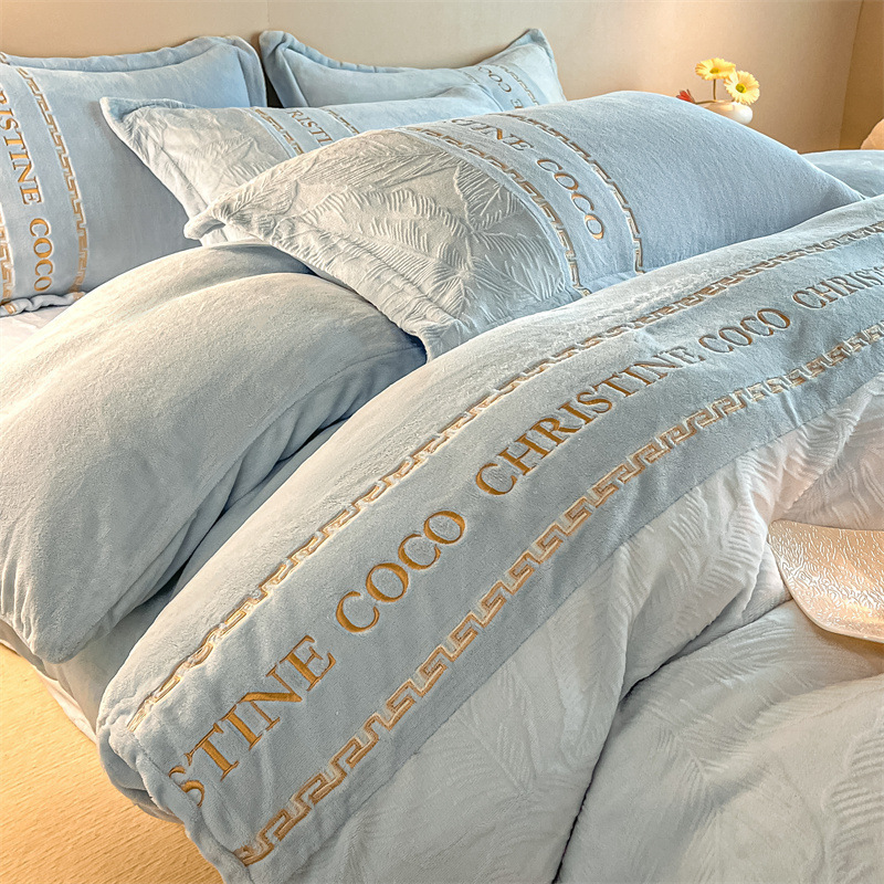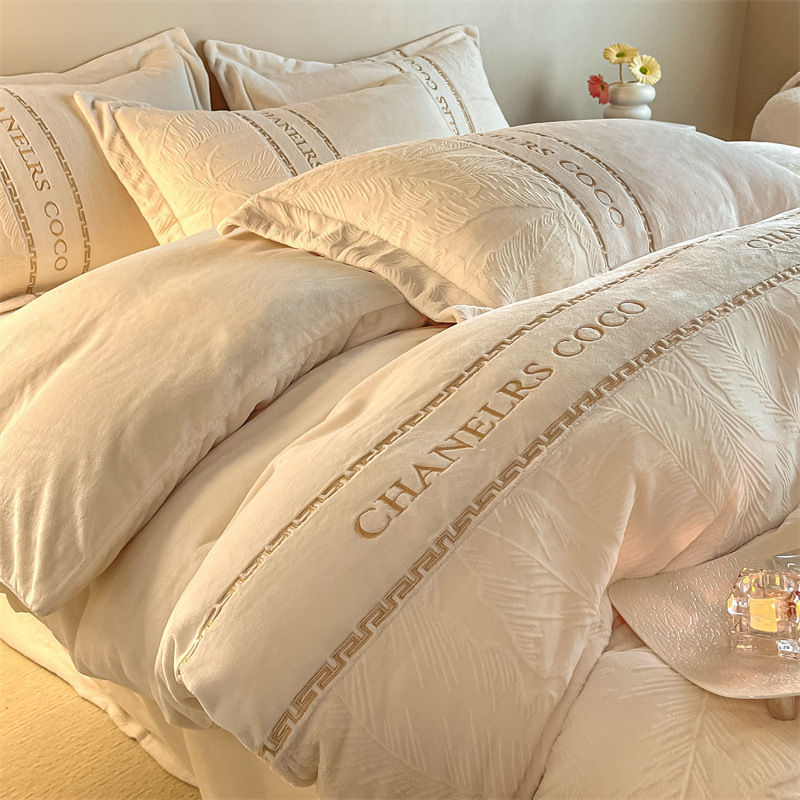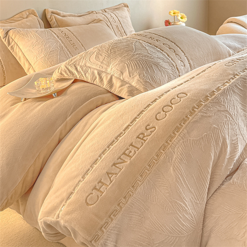 A类母婴级加厚雕花牛奶绒床上四件套秋冬季高级感保暖三4件套被套
