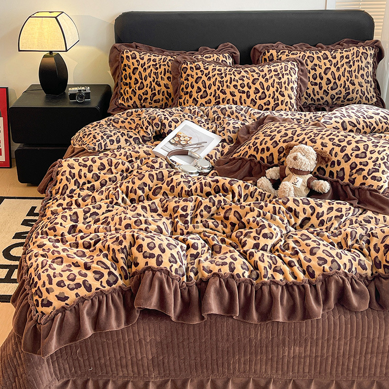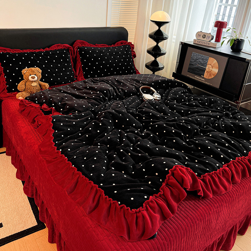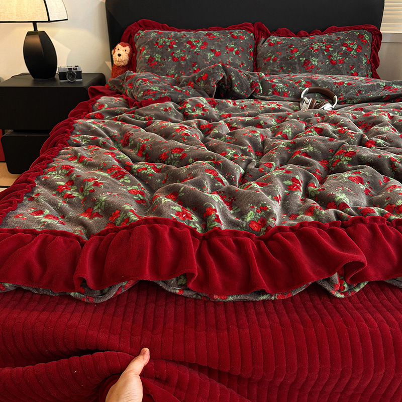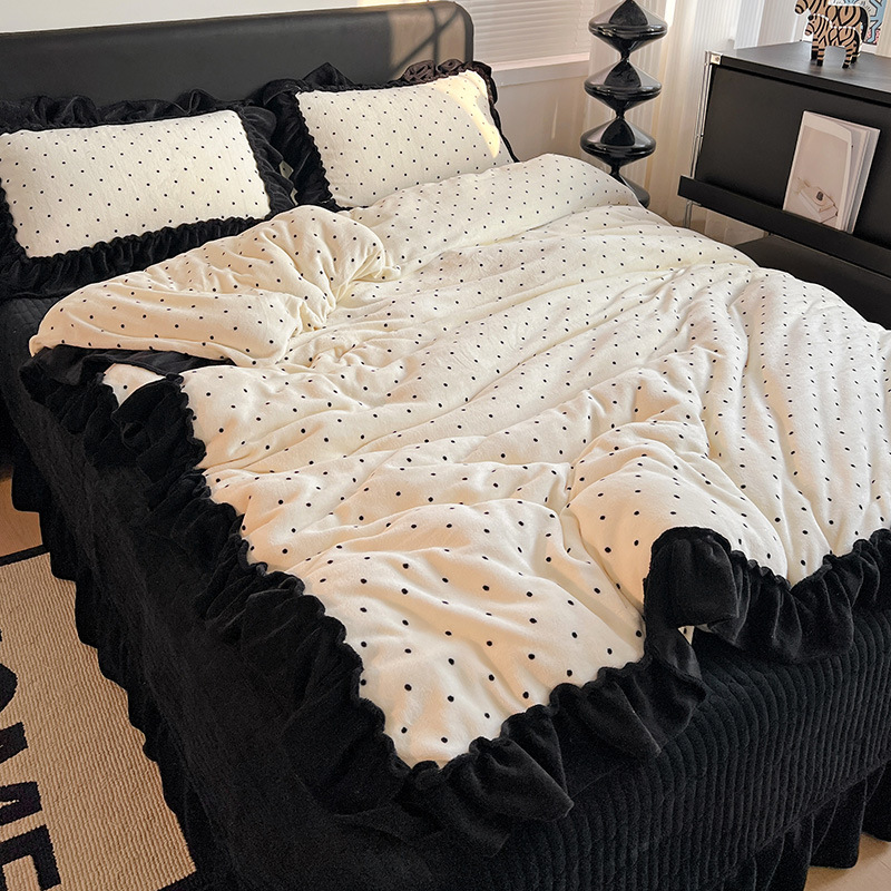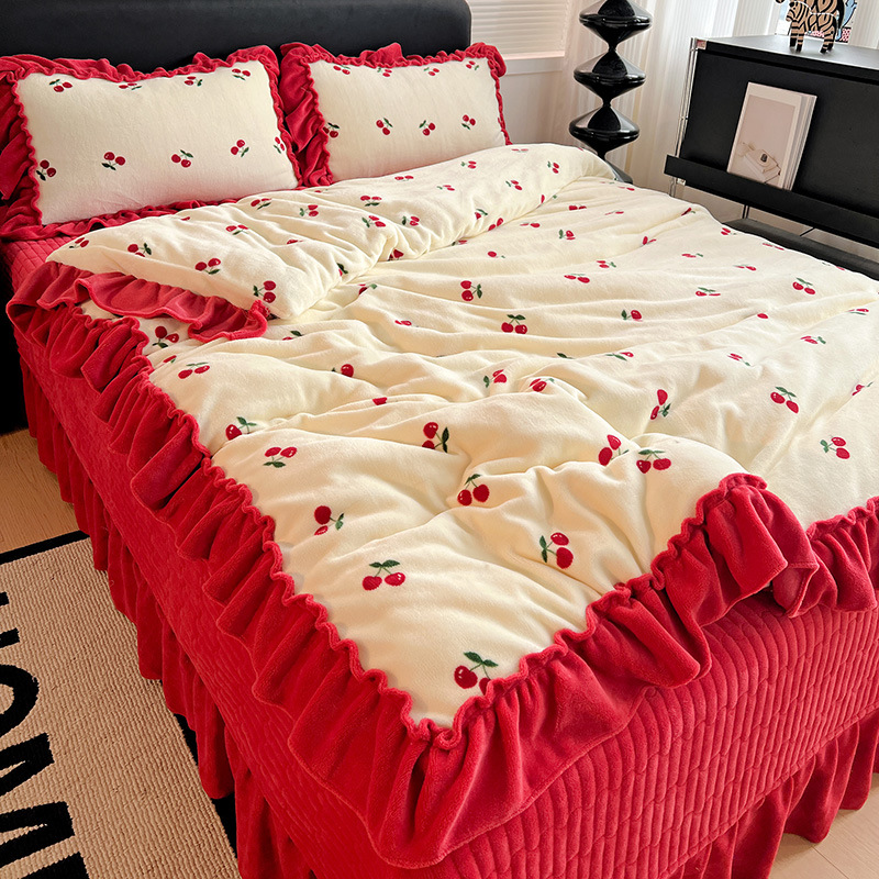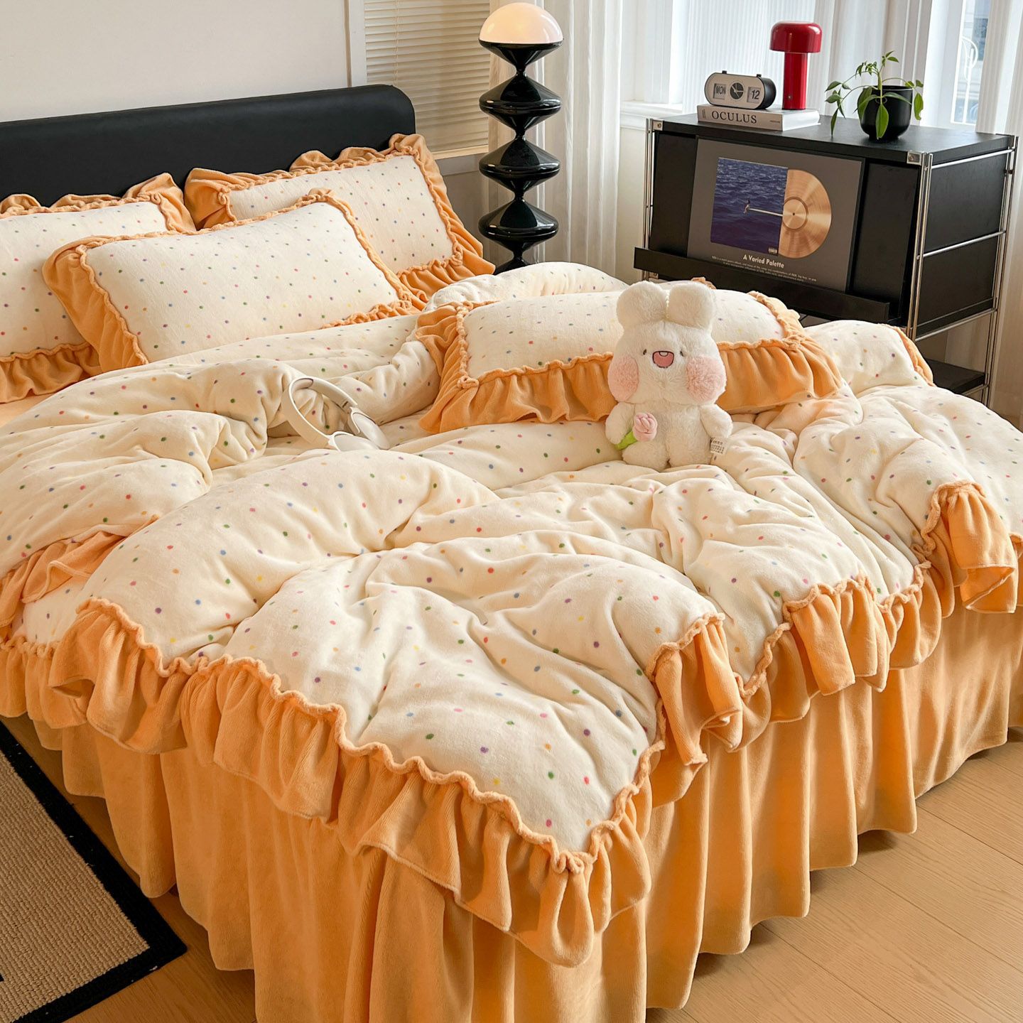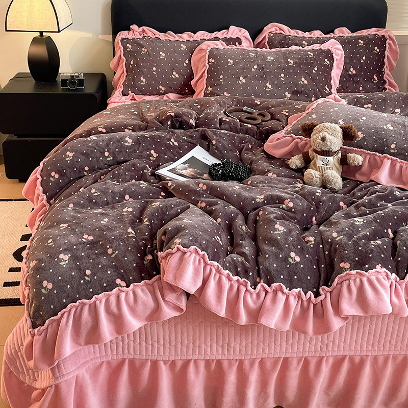 花边牛奶绒床盖床裙四件套冬季保暖双面绒床单床笠加厚绒套件批发