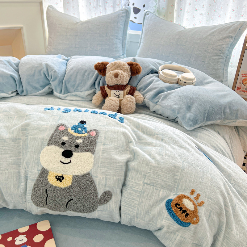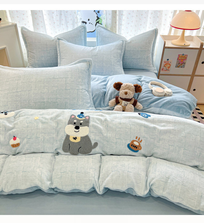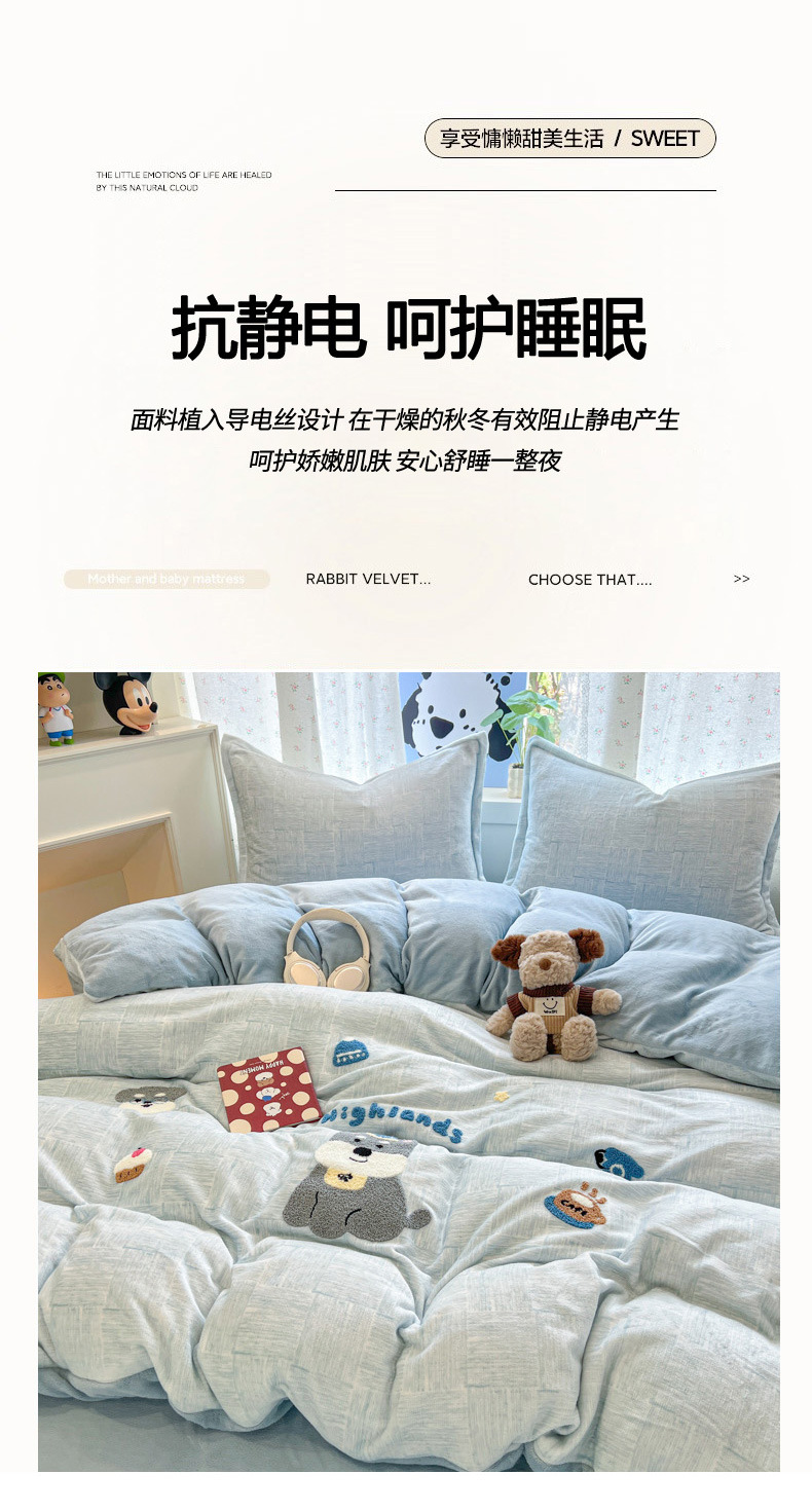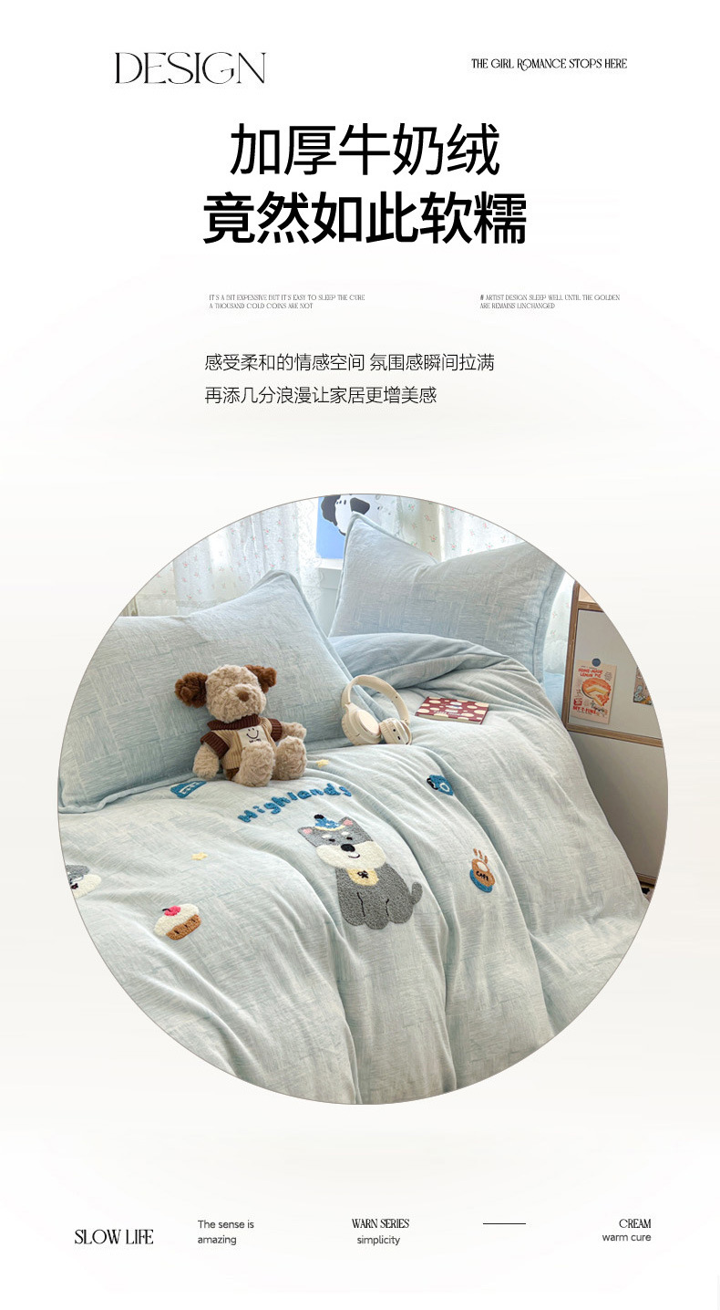 卡通牛奶绒床上四件套2025新款冬季加厚珊瑚绒床品床单被罩三件套