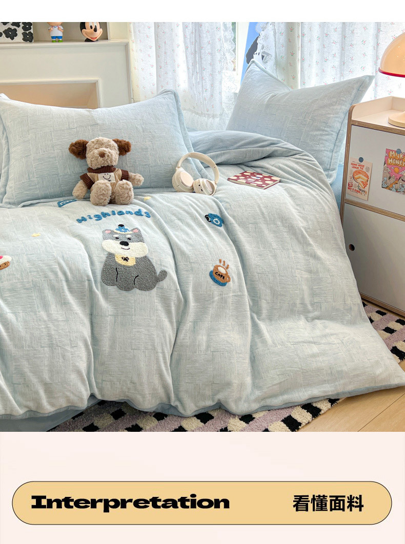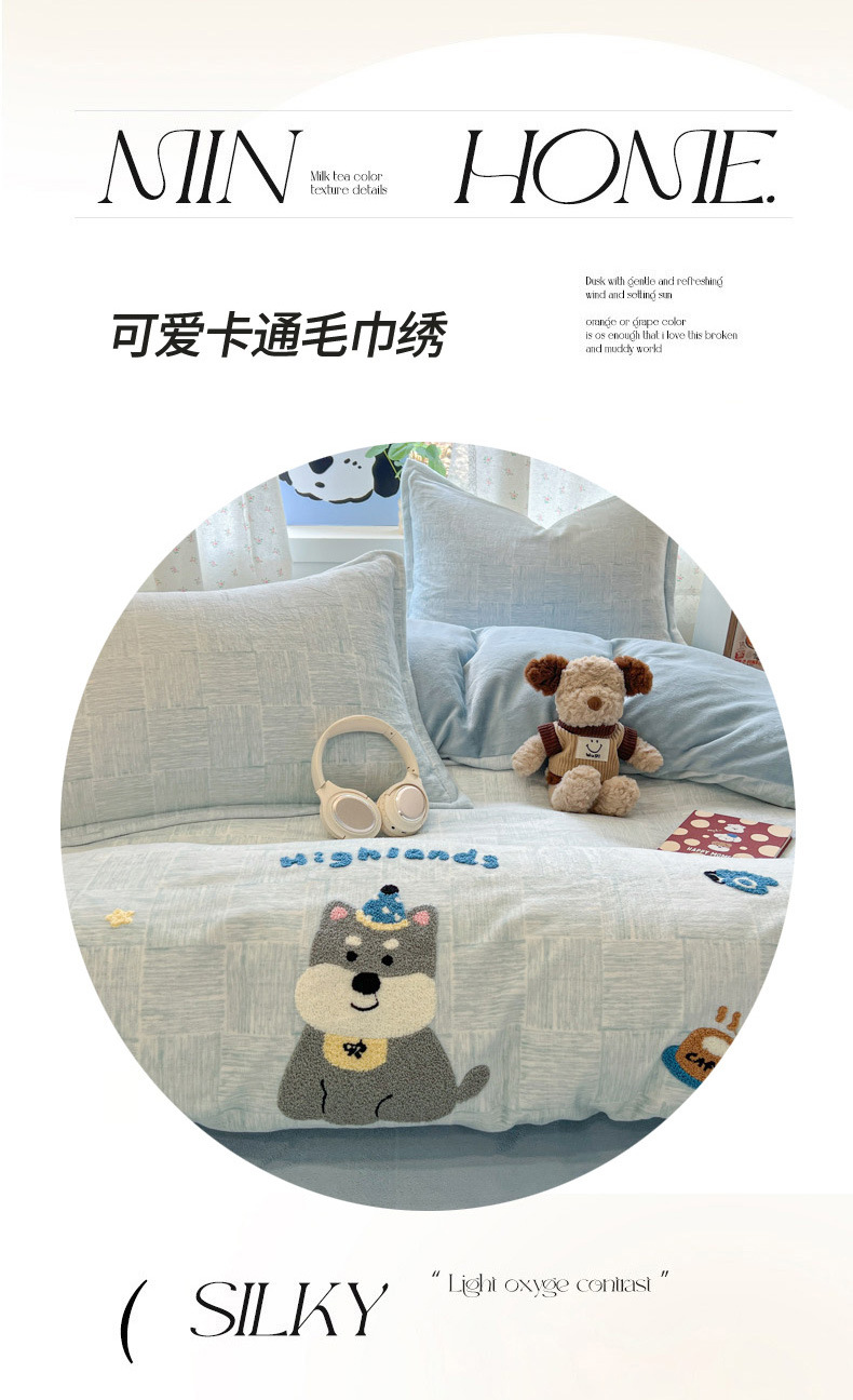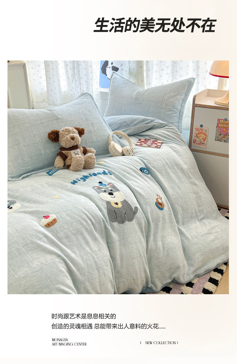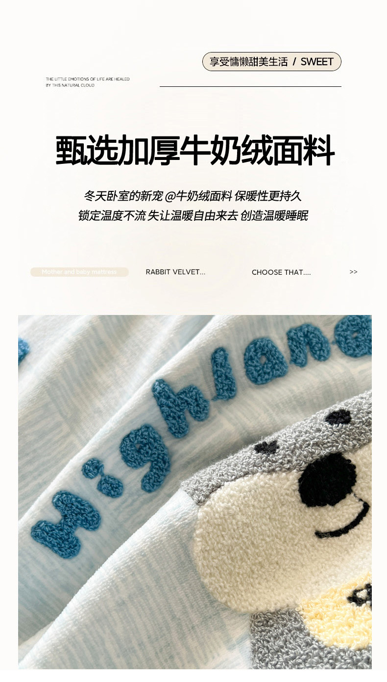 卡通牛奶绒床上四件套2025新款冬季加厚珊瑚绒床品床单被罩三件套