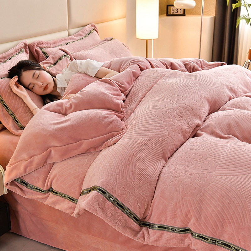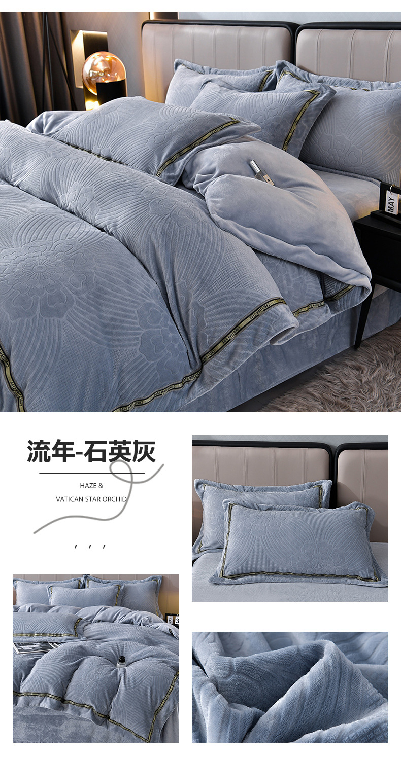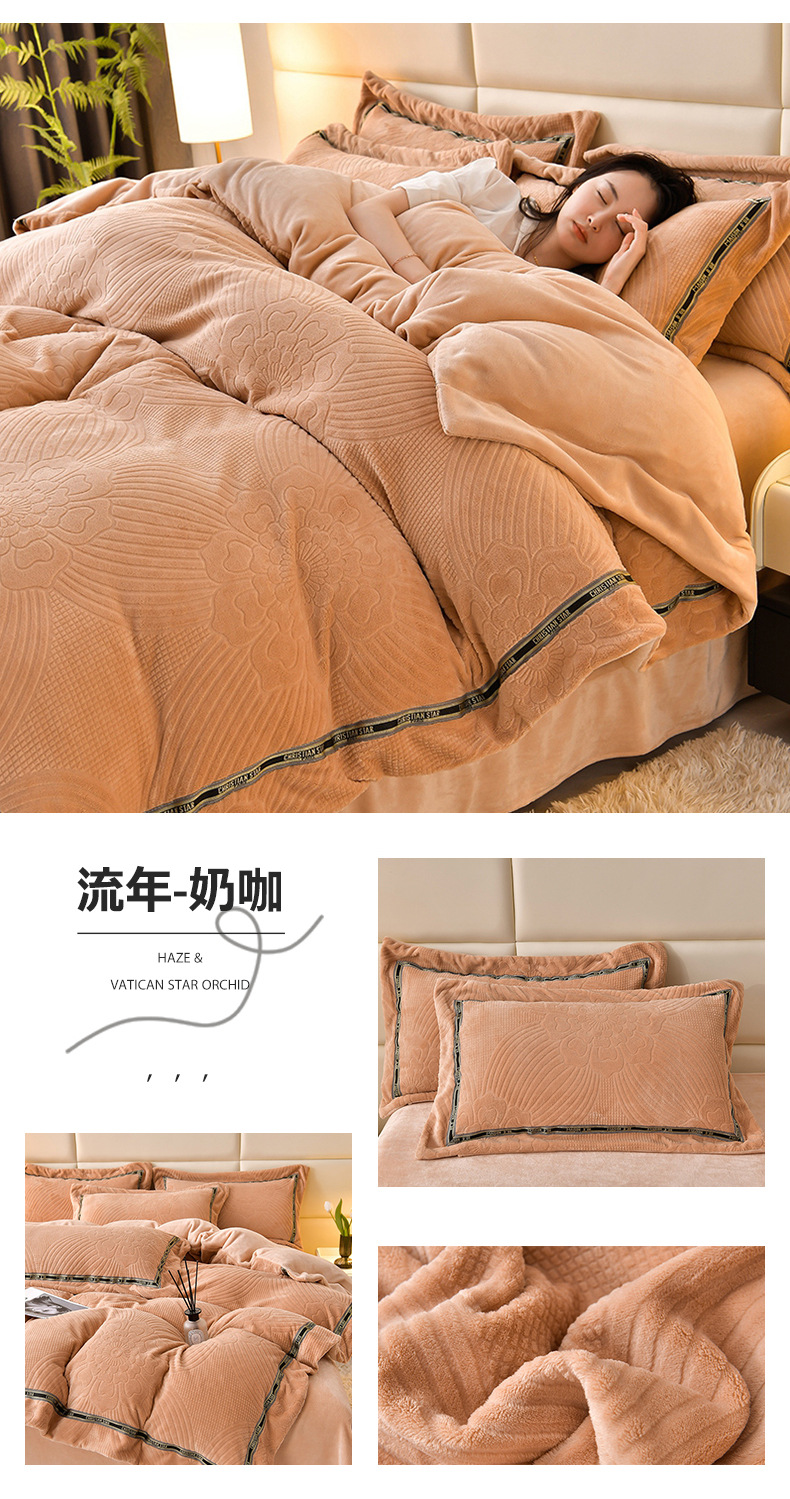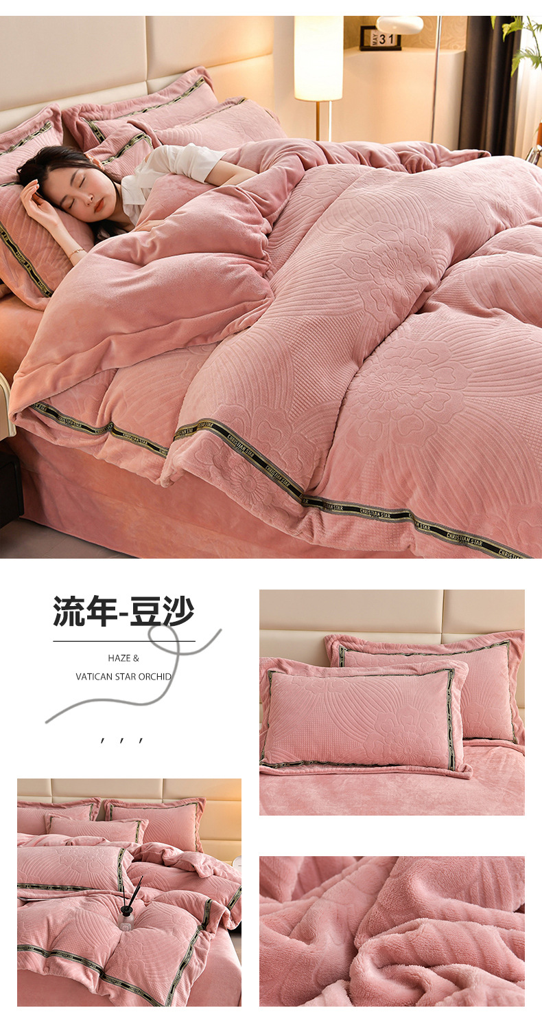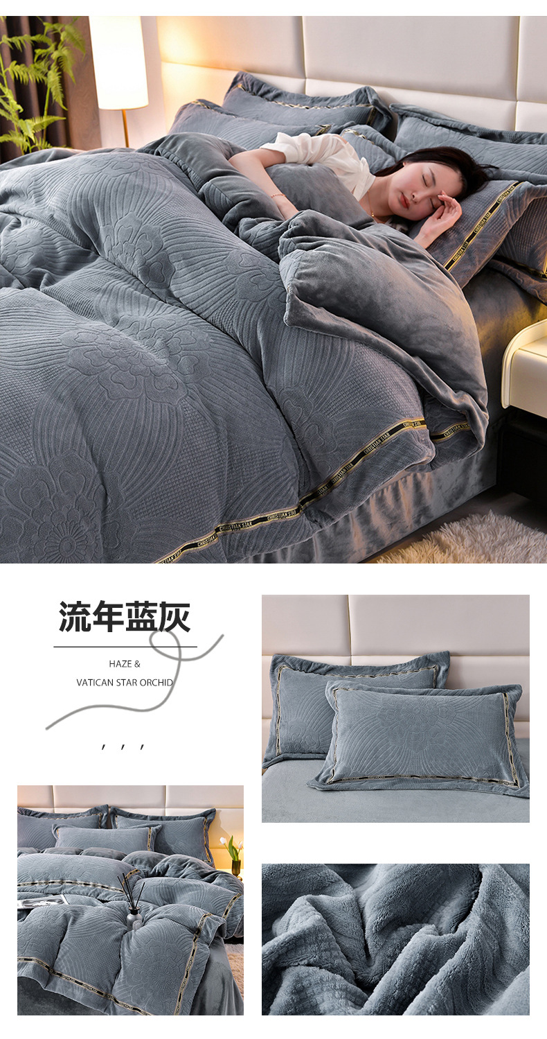 高克重牛奶绒四件套冬季加厚保暖雕花绒三件套宝宝绒床单被套批发