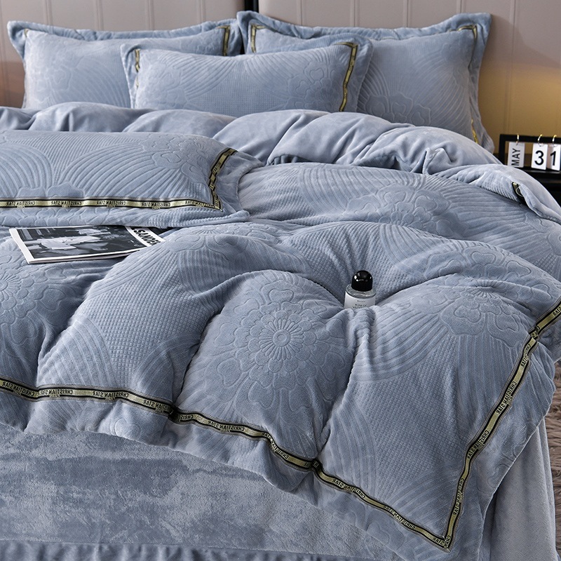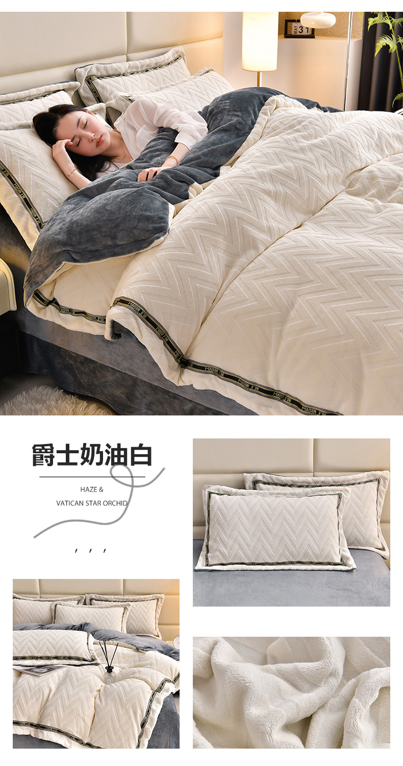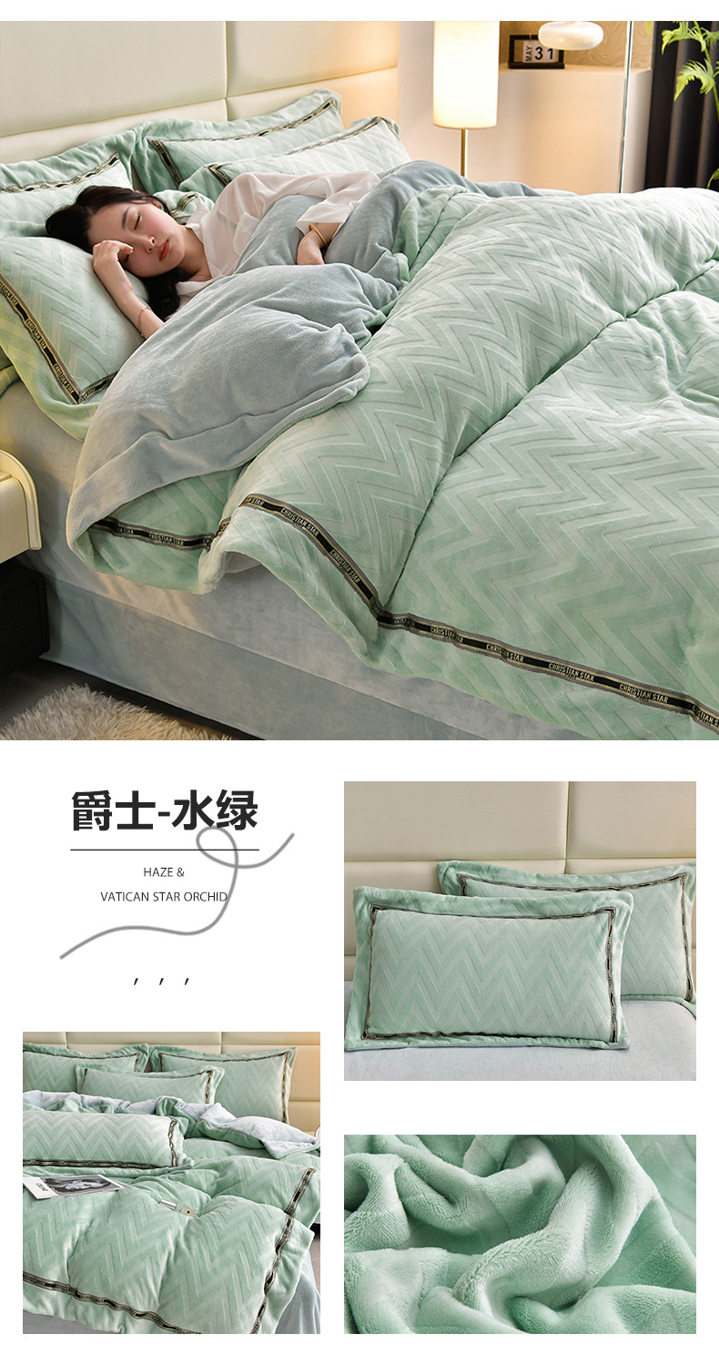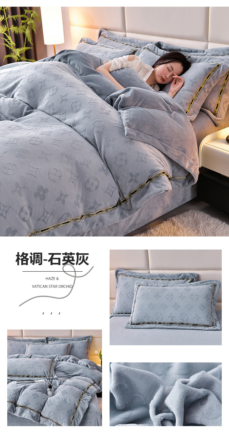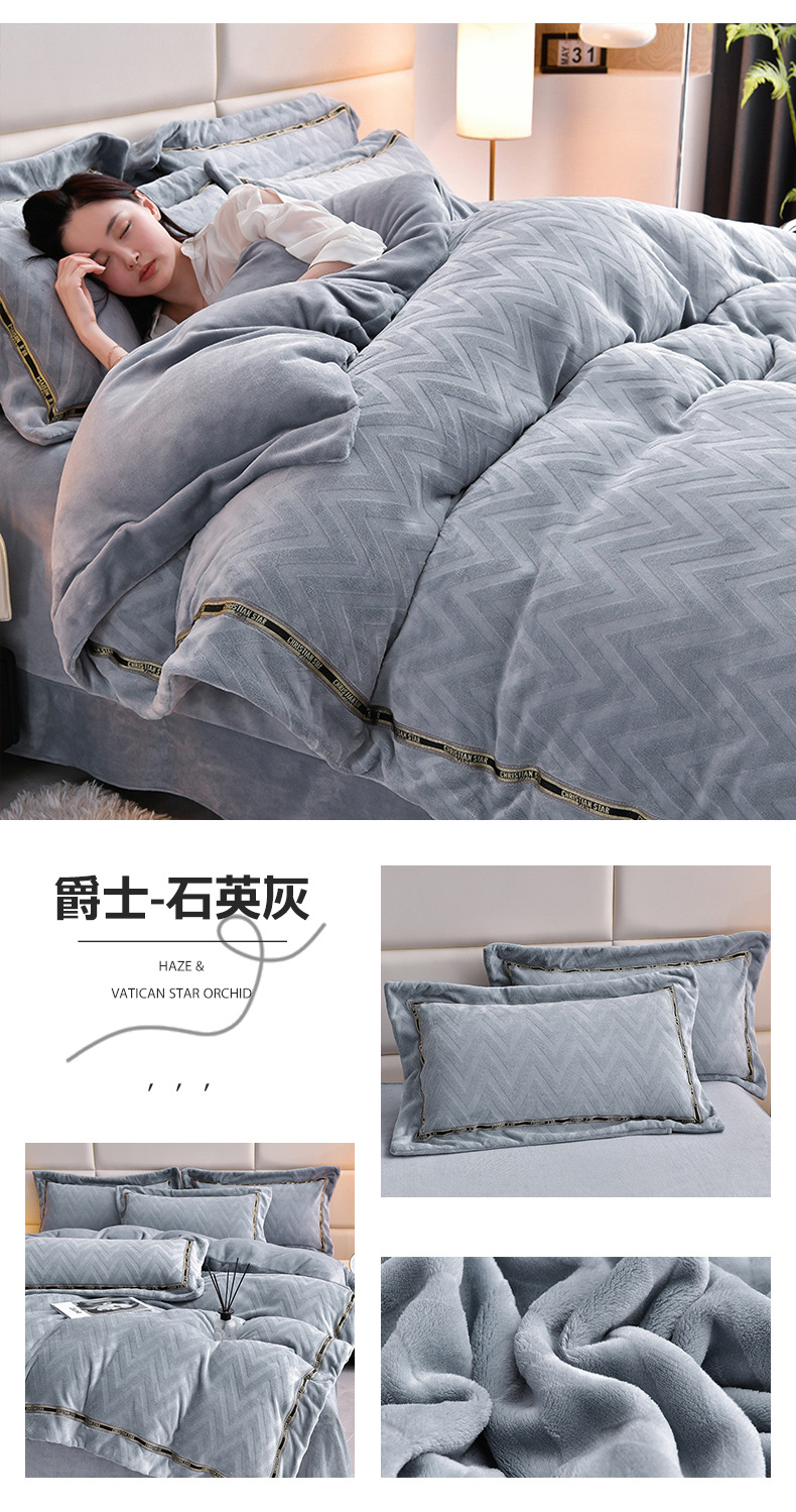 高克重牛奶绒四件套冬季加厚保暖雕花绒三件套宝宝绒床单被套批发