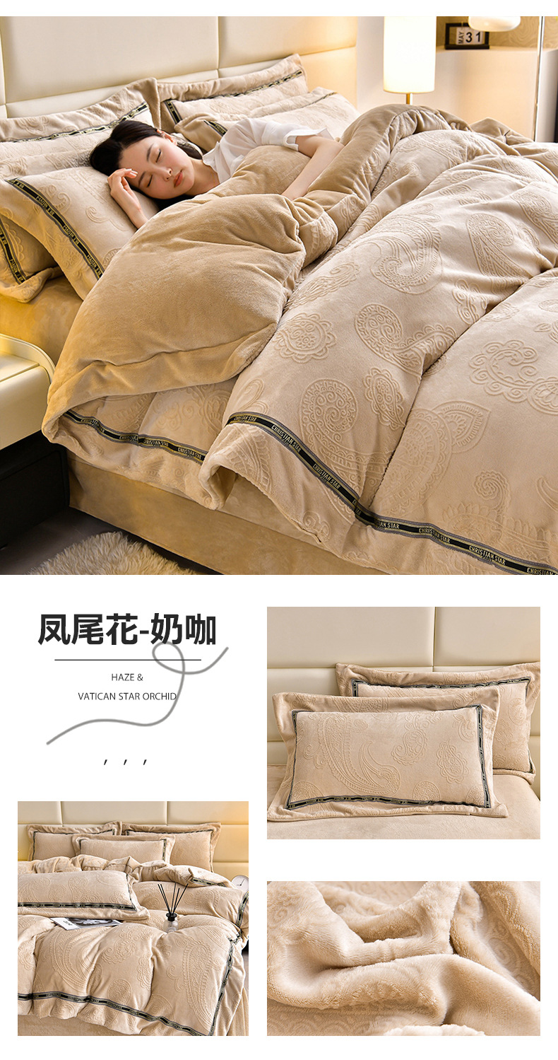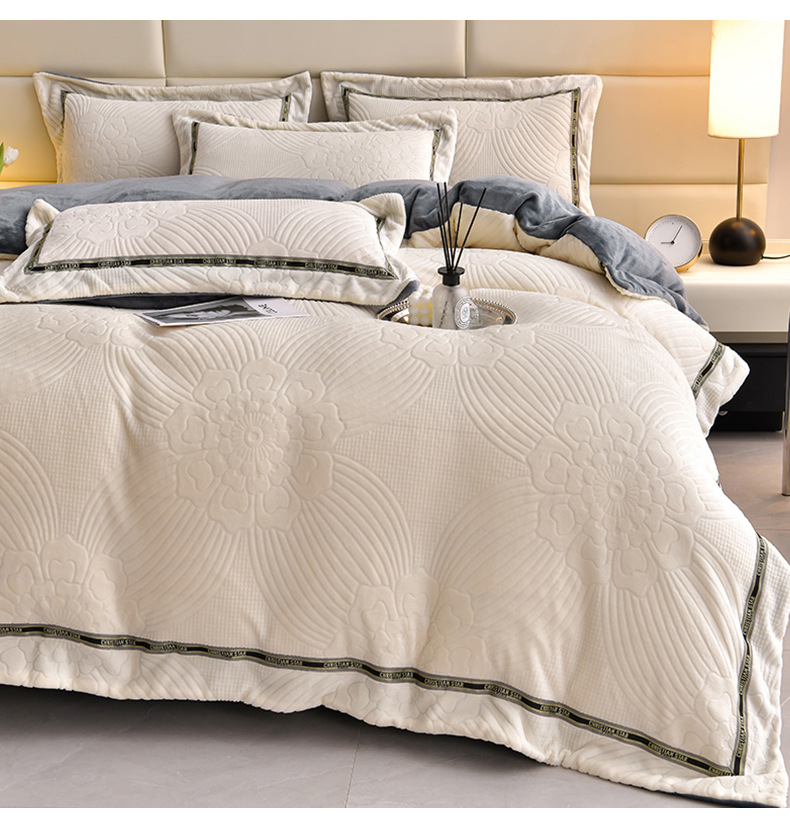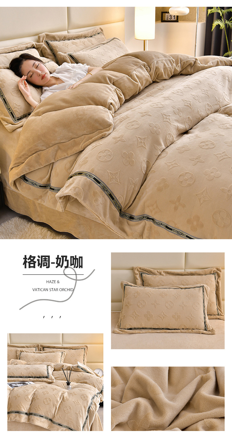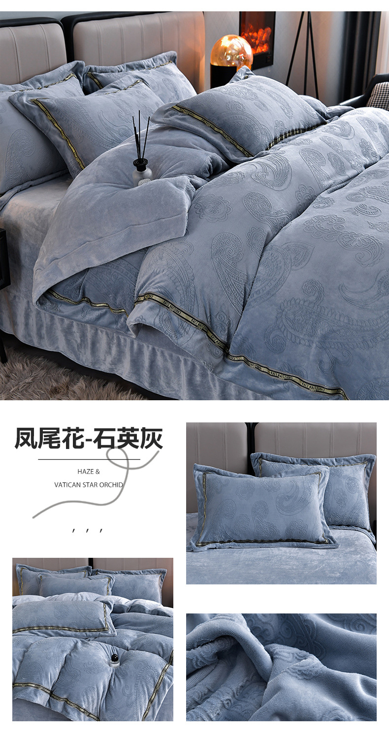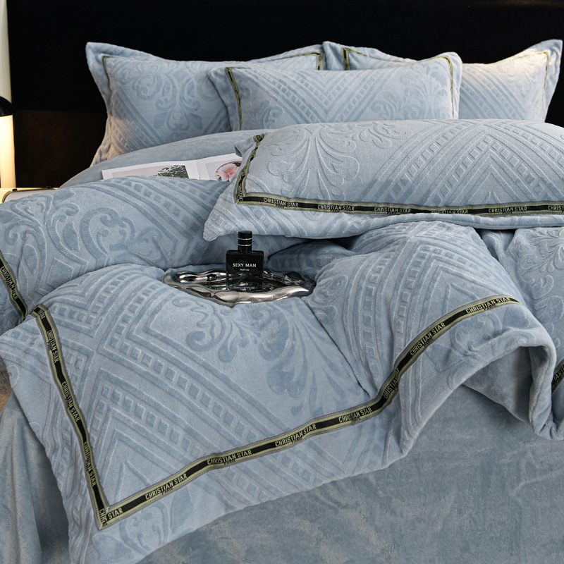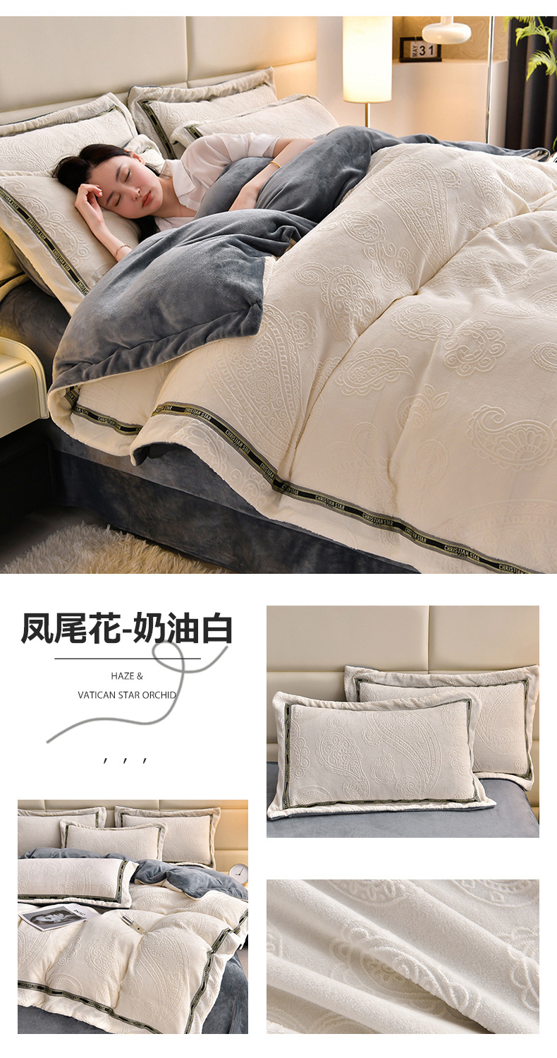 高克重牛奶绒四件套冬季加厚保暖雕花绒三件套宝宝绒床单被套批发