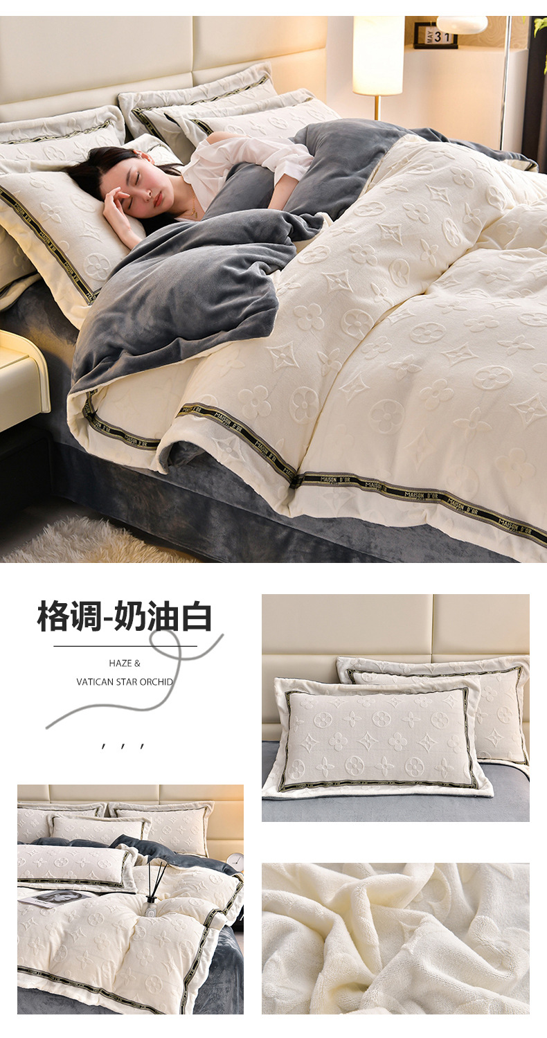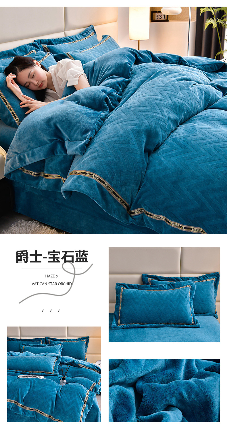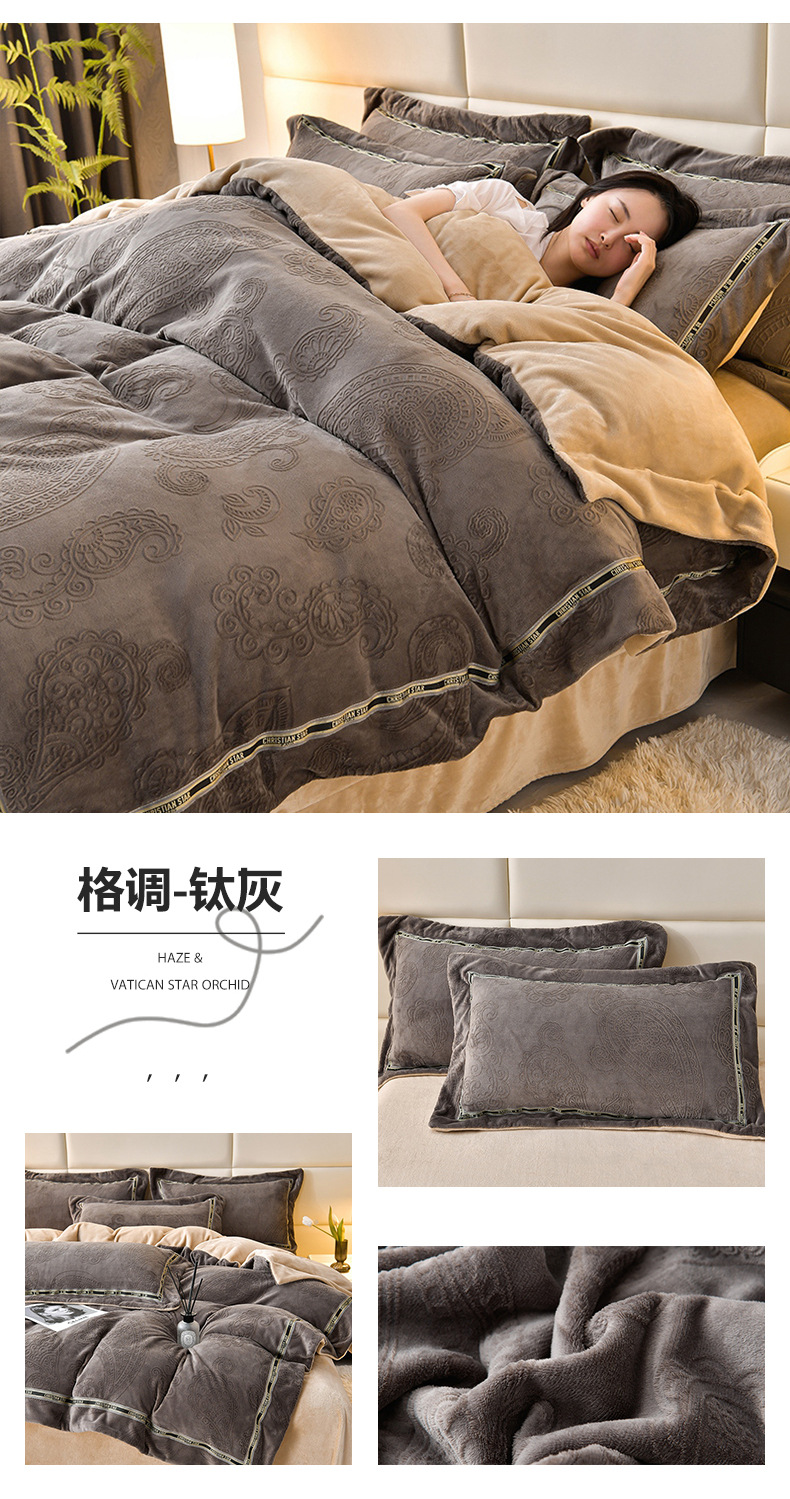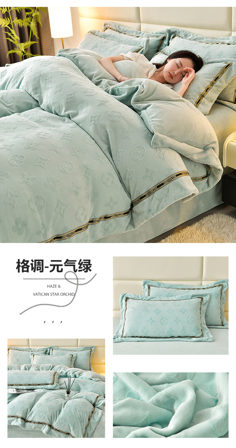 高克重牛奶绒四件套冬季加厚保暖雕花绒三件套宝宝绒床单被套批发