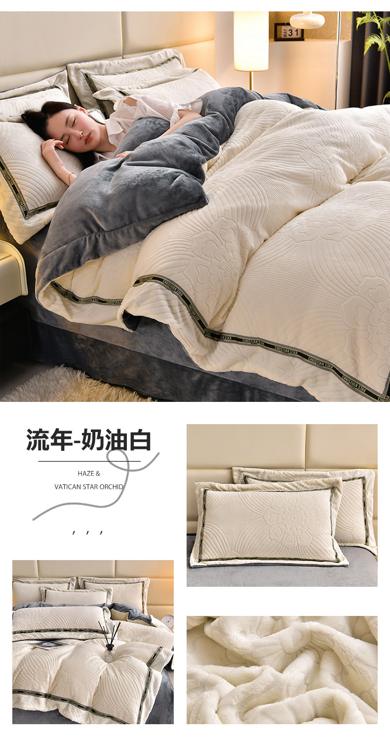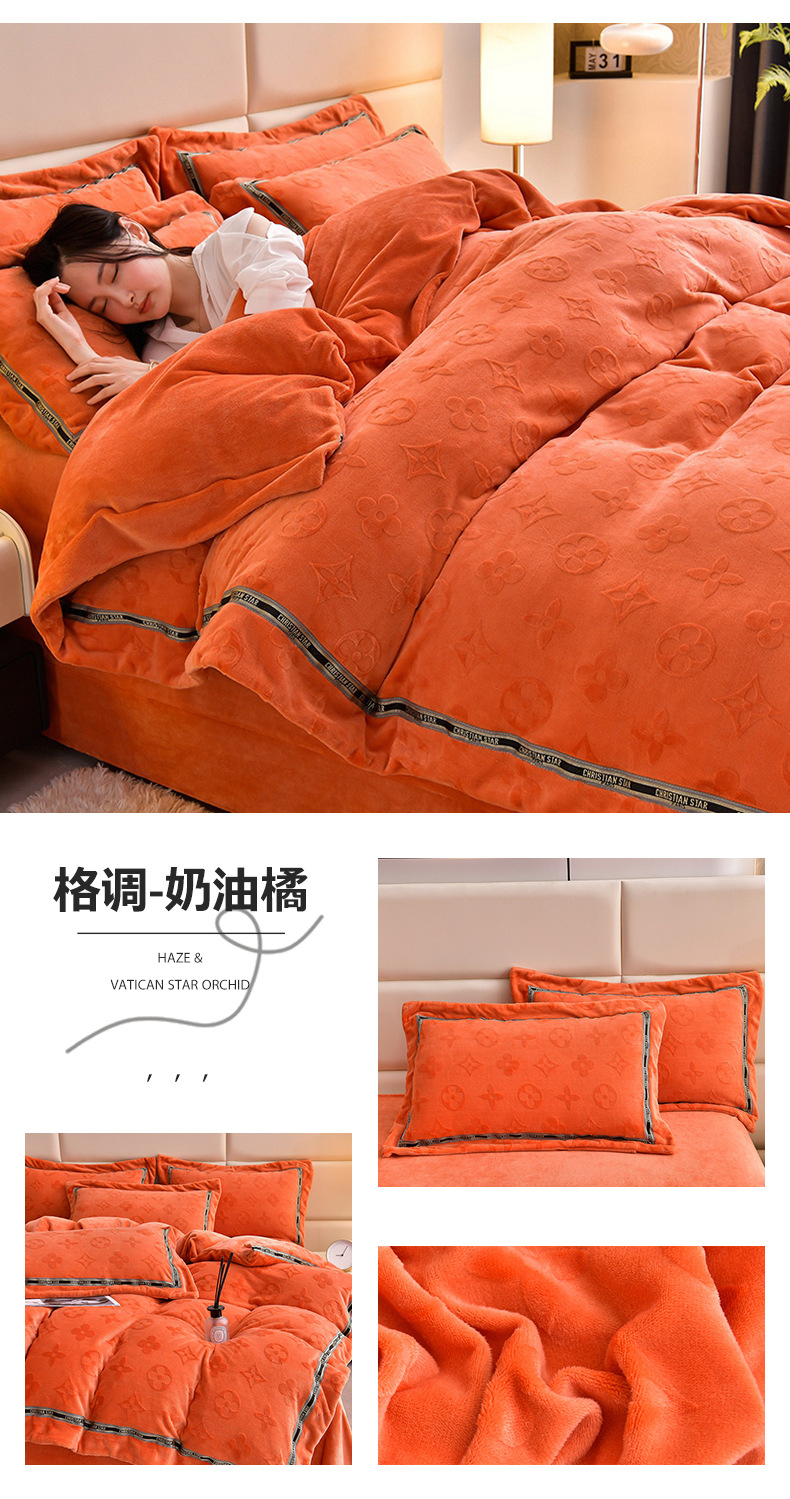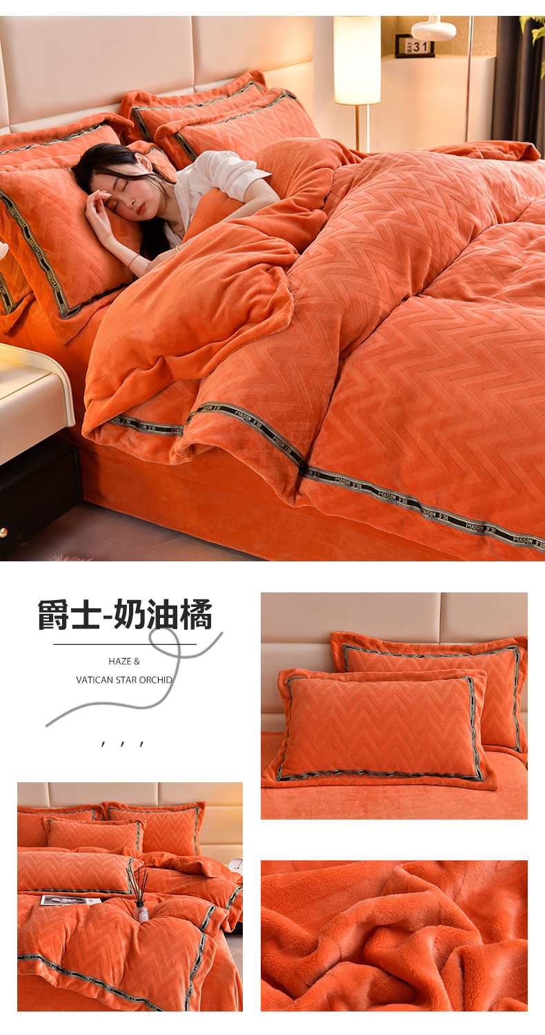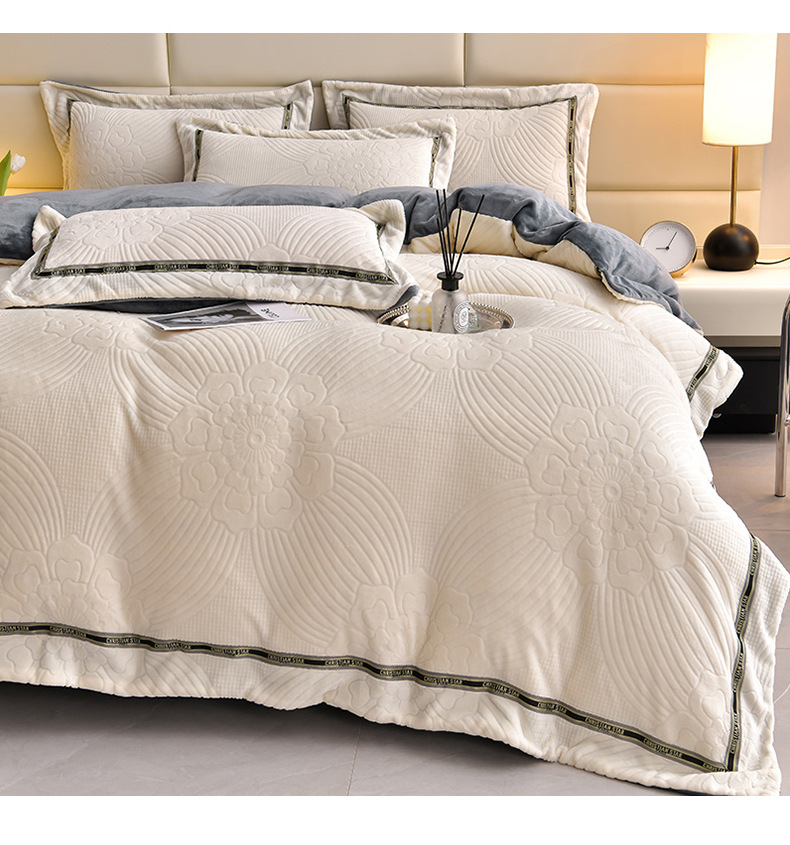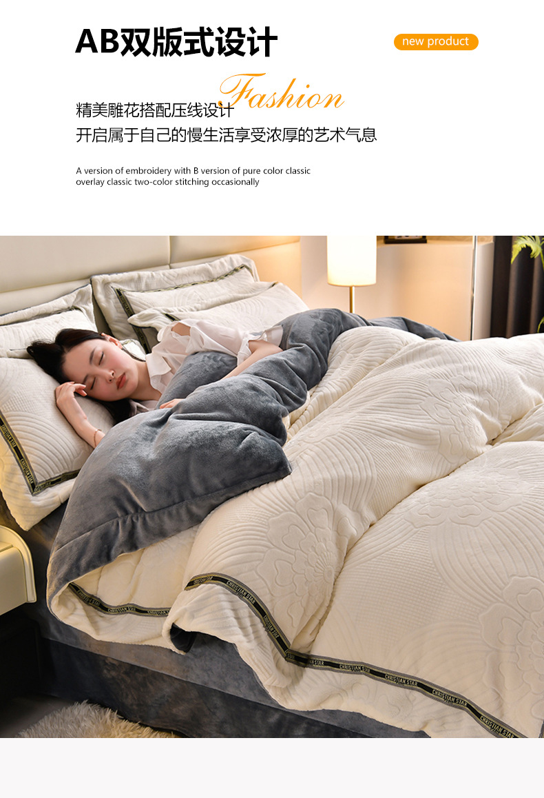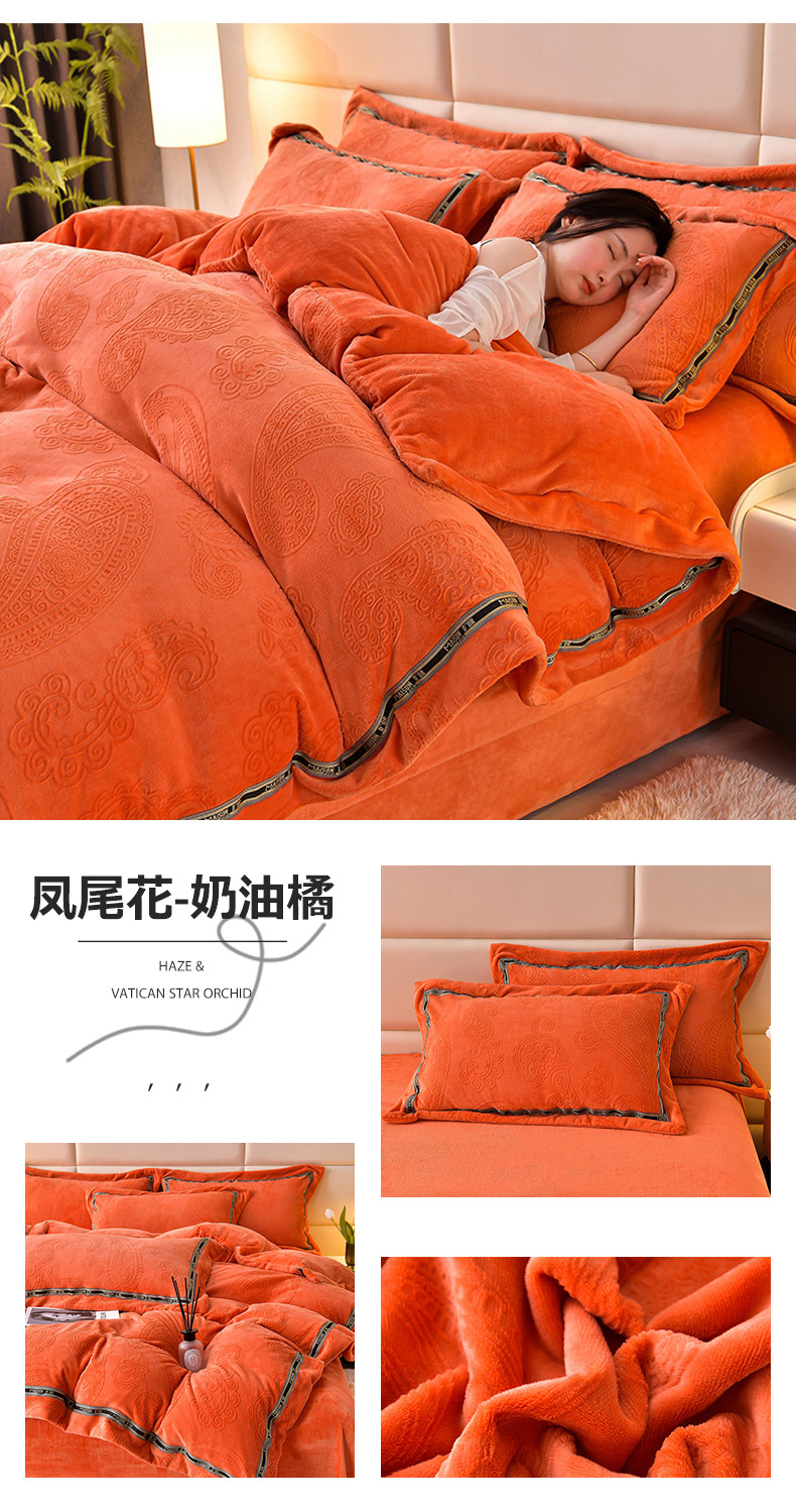 高克重牛奶绒四件套冬季加厚保暖雕花绒三件套宝宝绒床单被套批发