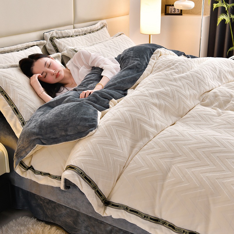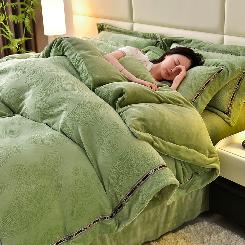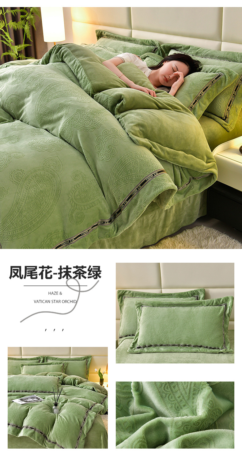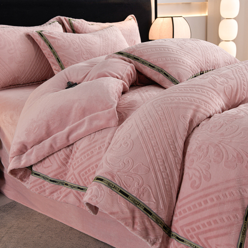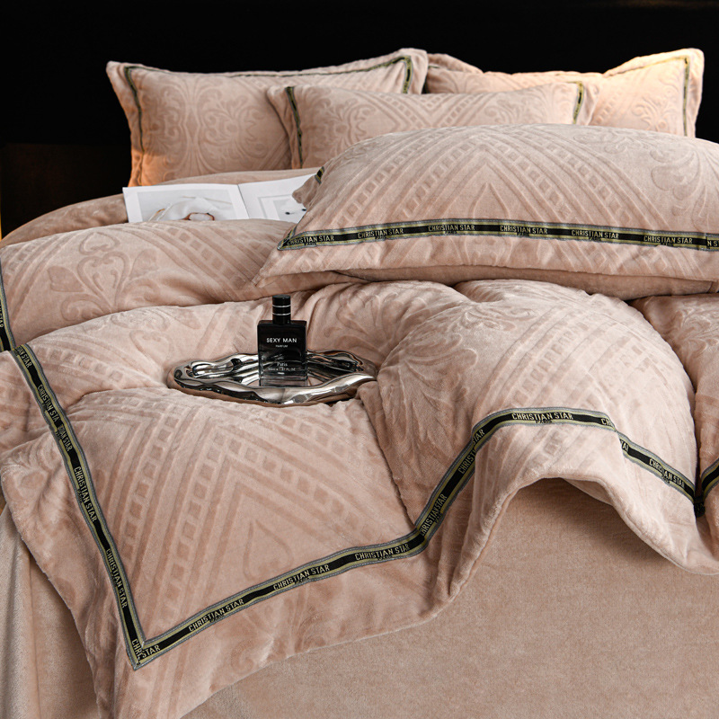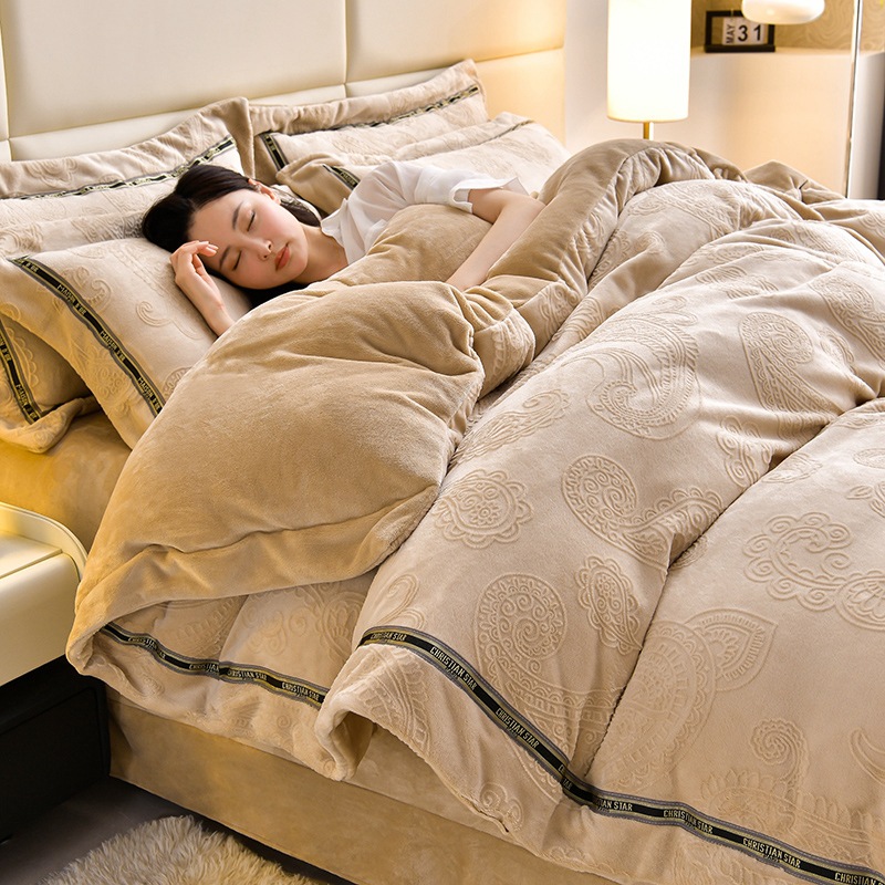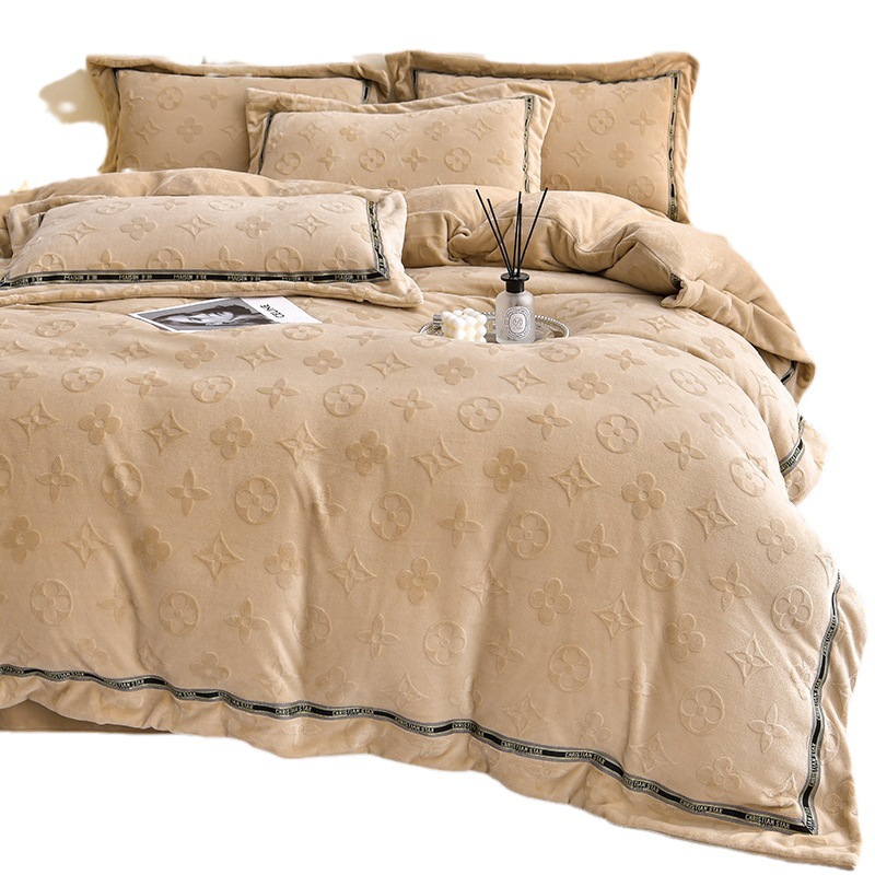 高克重牛奶绒四件套冬季加厚保暖雕花绒三件套宝宝绒床单被套批发