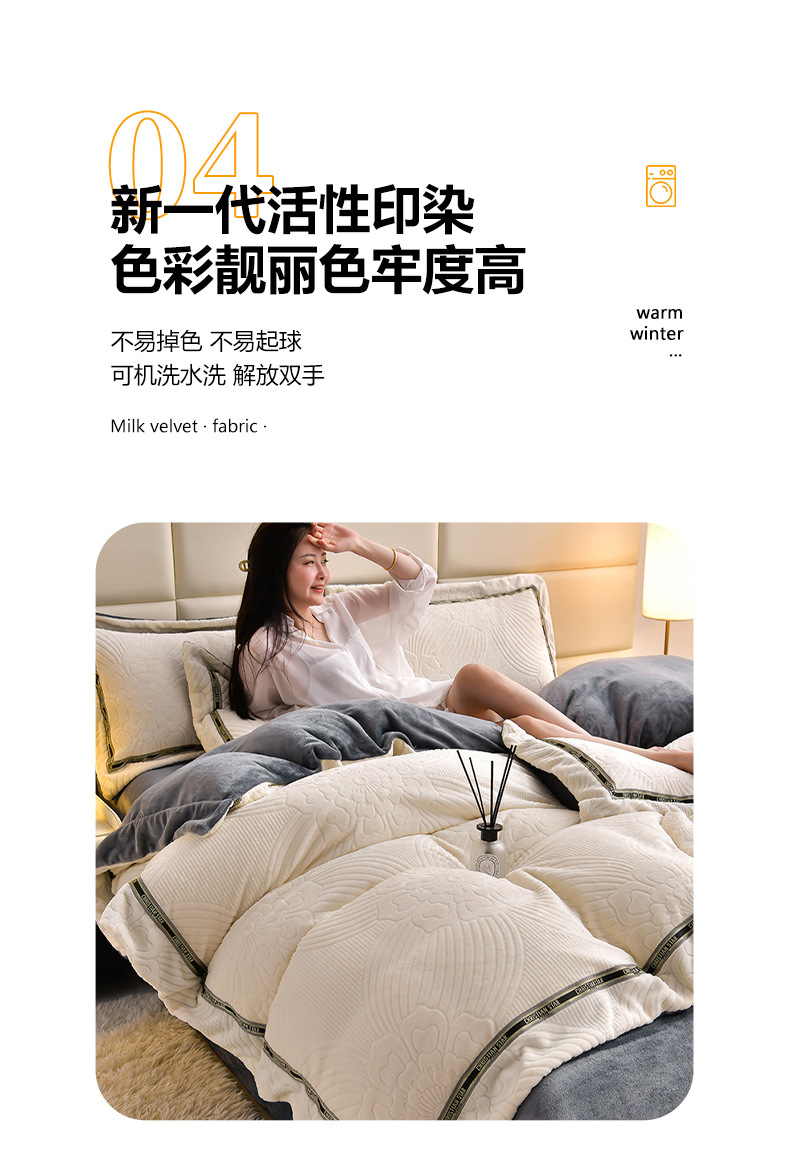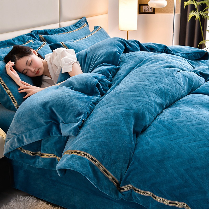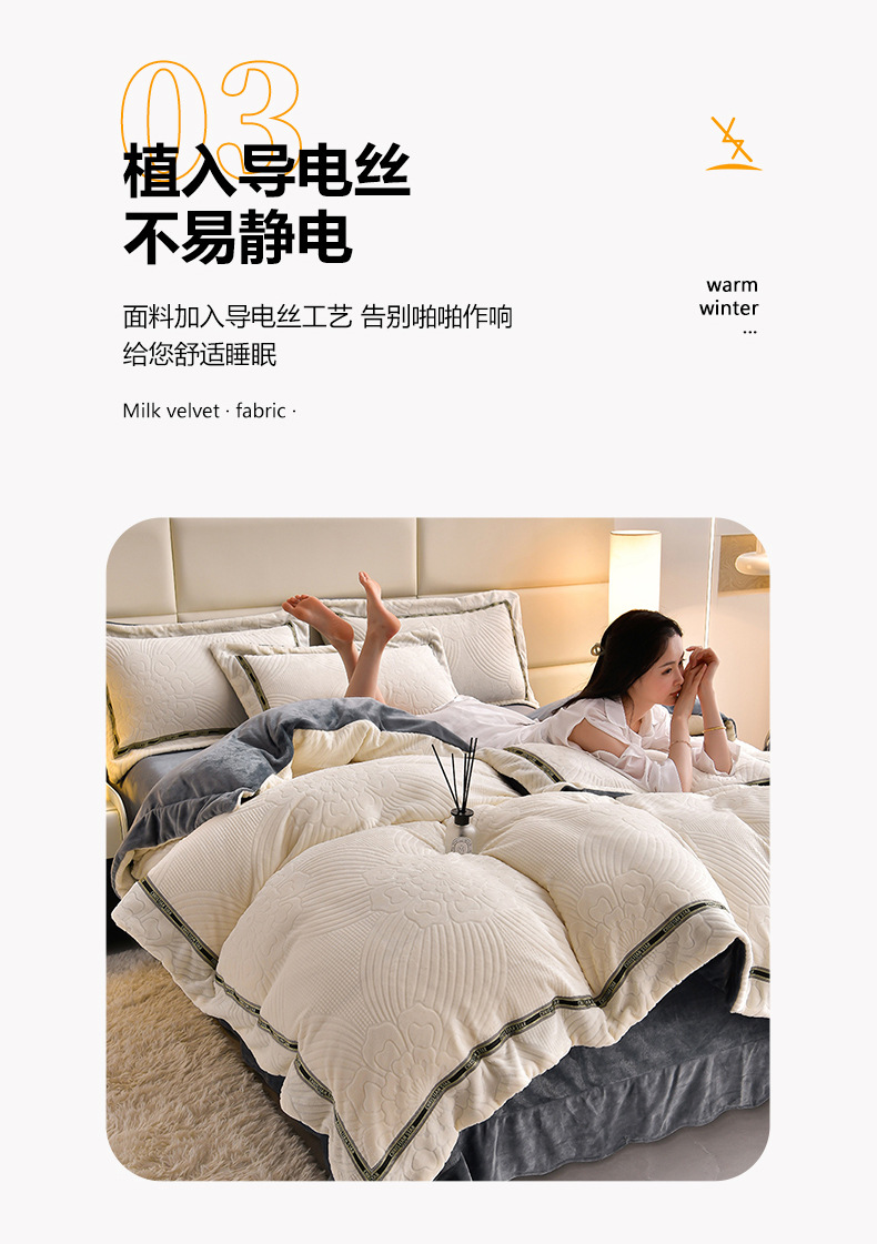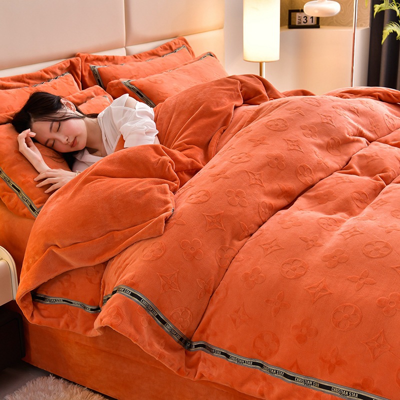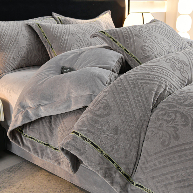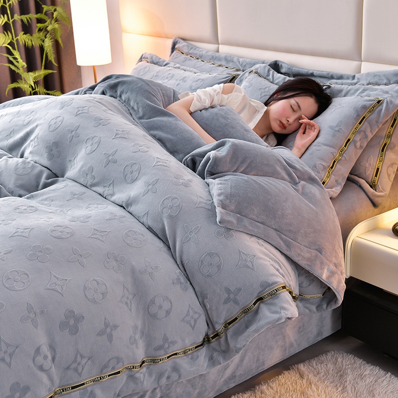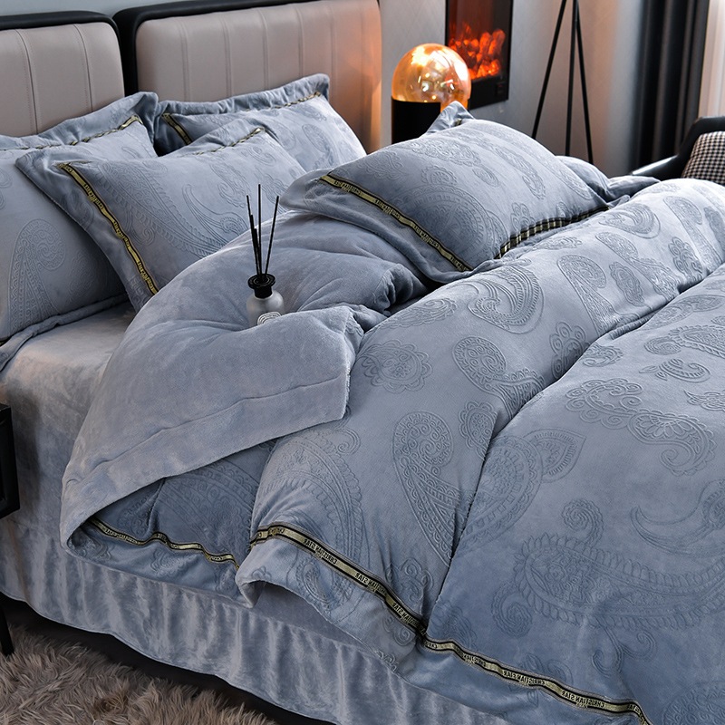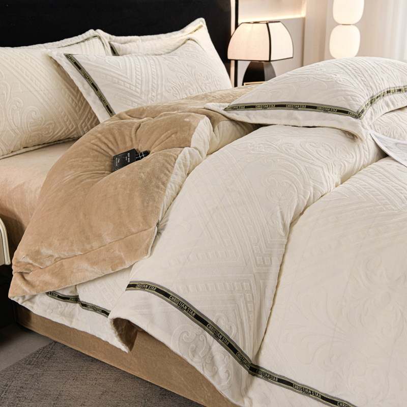 高克重牛奶绒四件套冬季加厚保暖雕花绒三件套宝宝绒床单被套批发