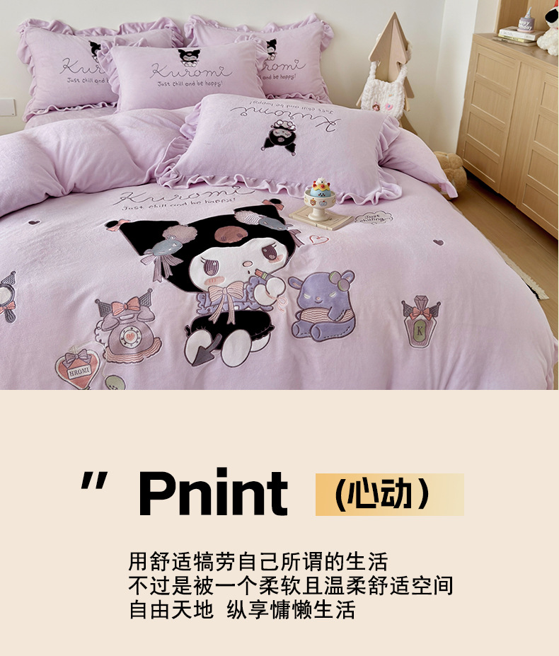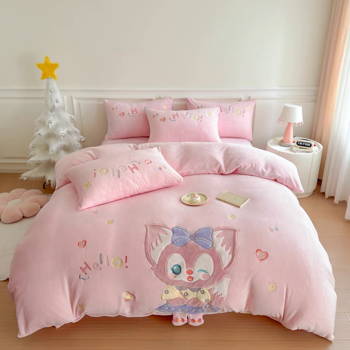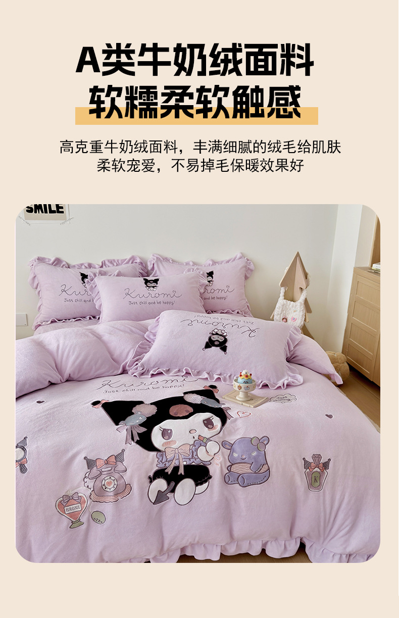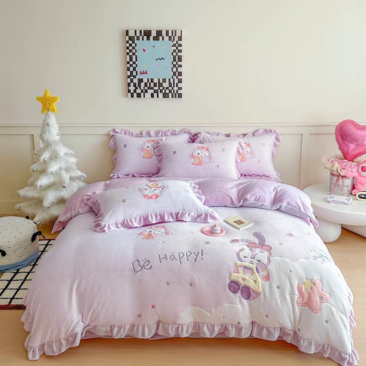 2025新款贝儿牛奶绒四件套公主风女孩子儿童加厚秋冬款床笠三件套