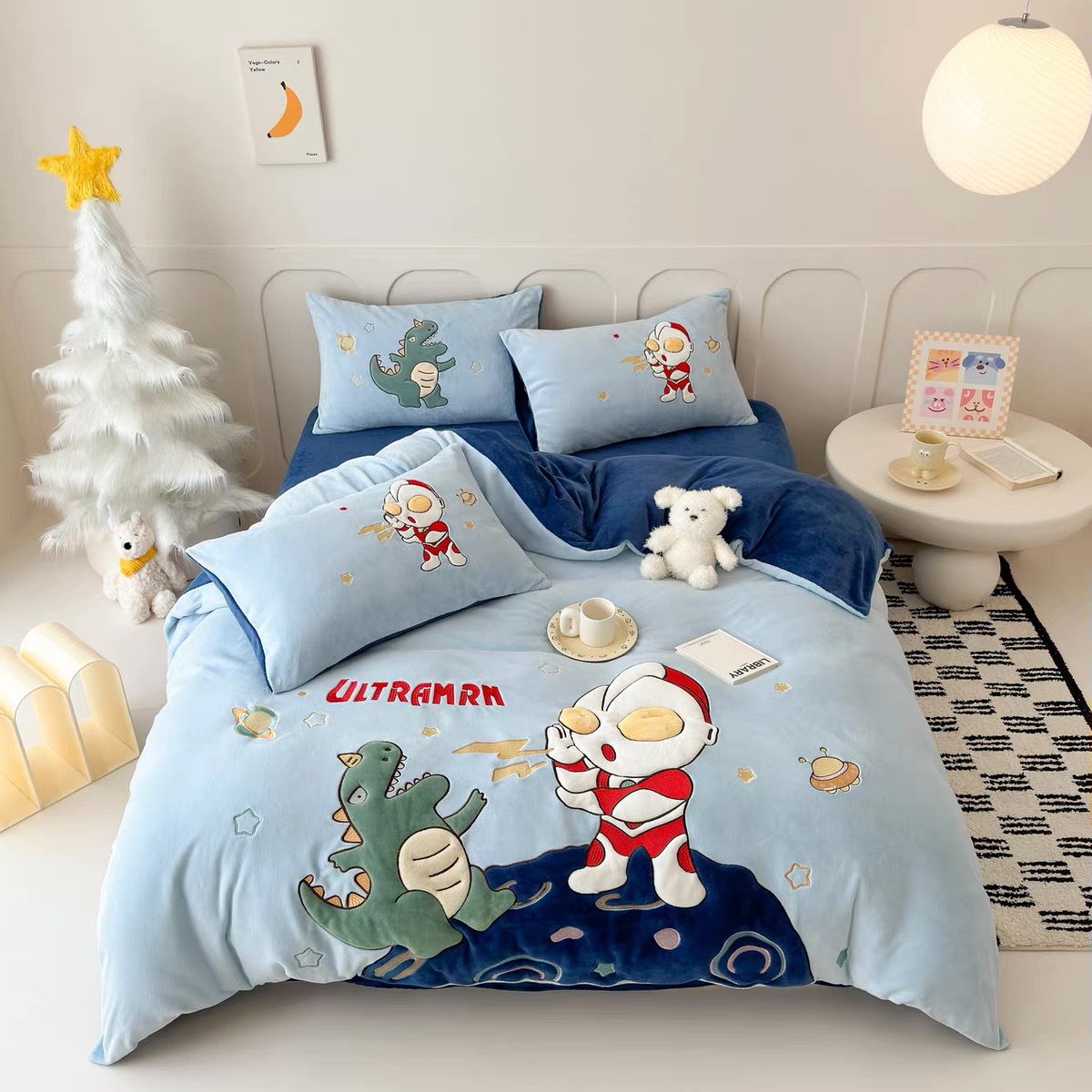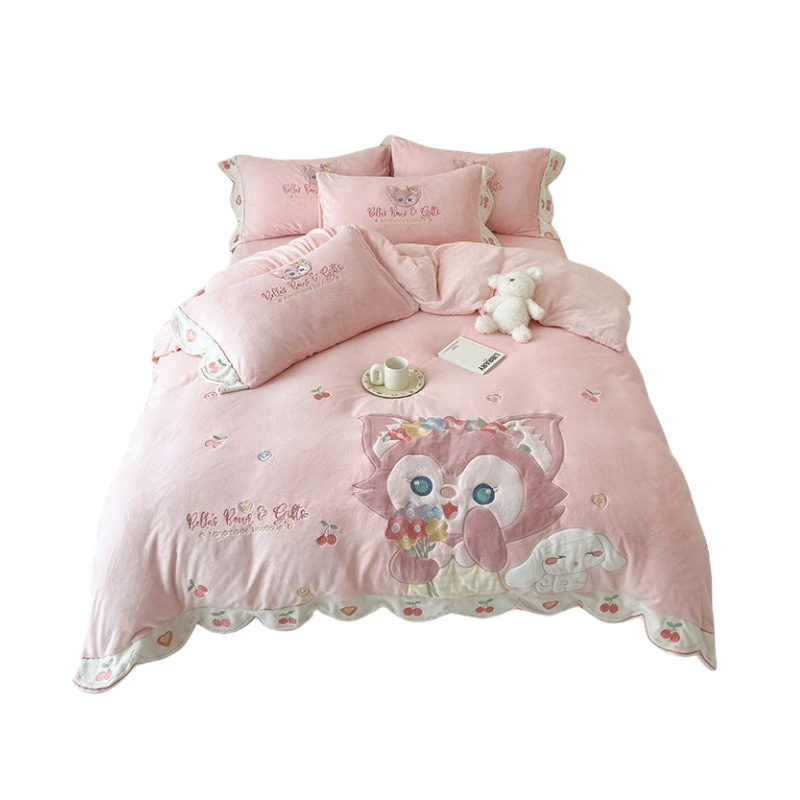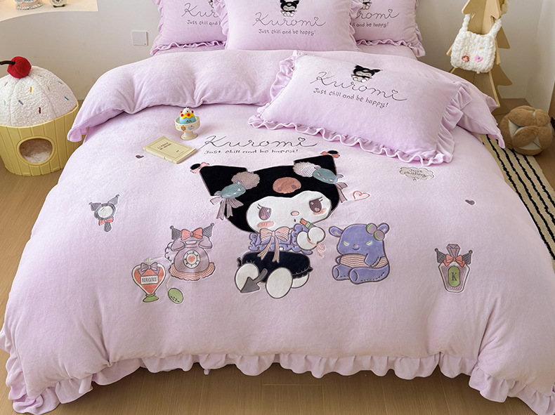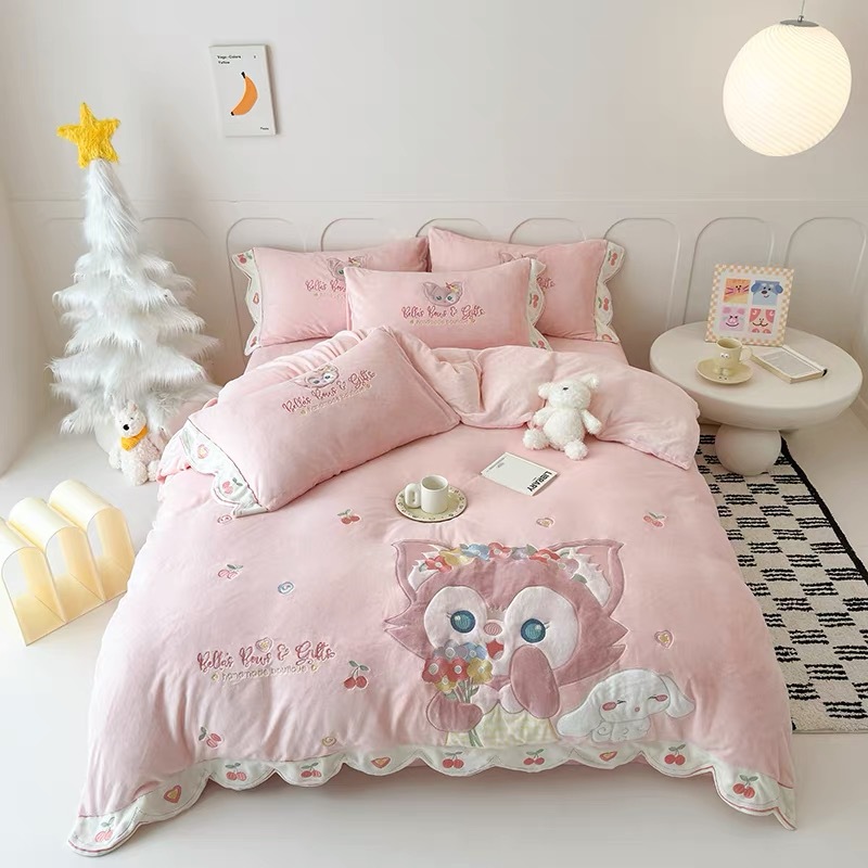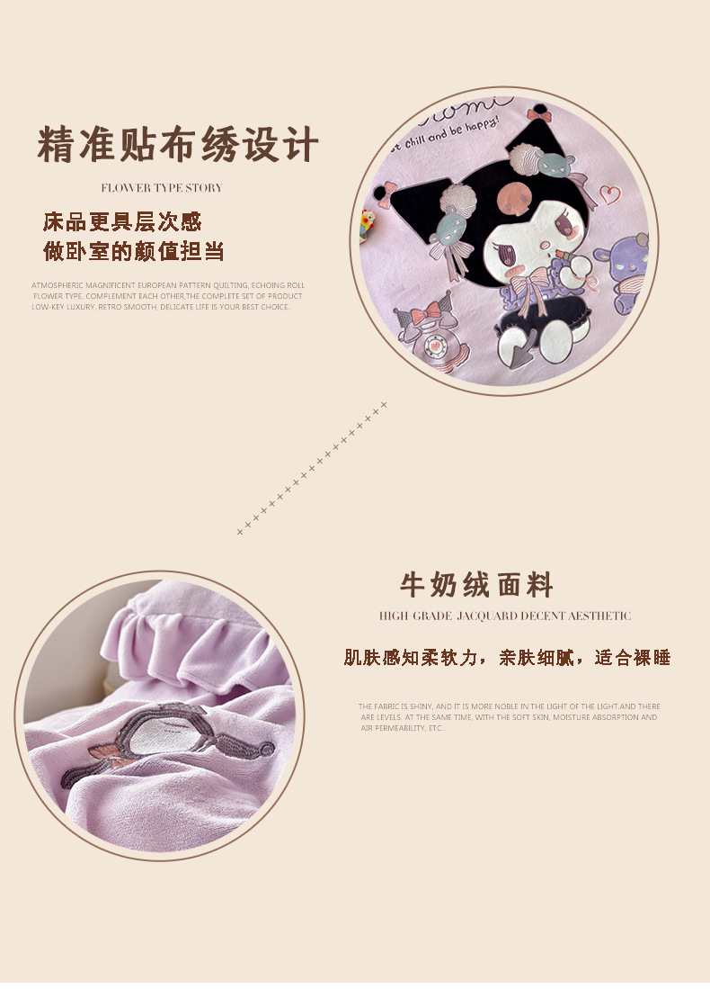 2025新款贝儿牛奶绒四件套公主风女孩子儿童加厚秋冬款床笠三件套