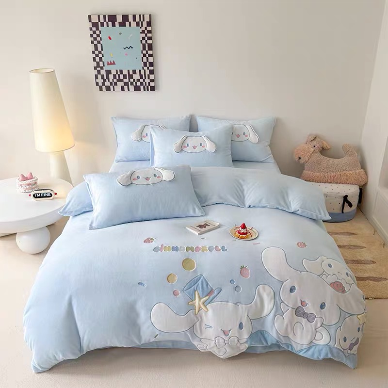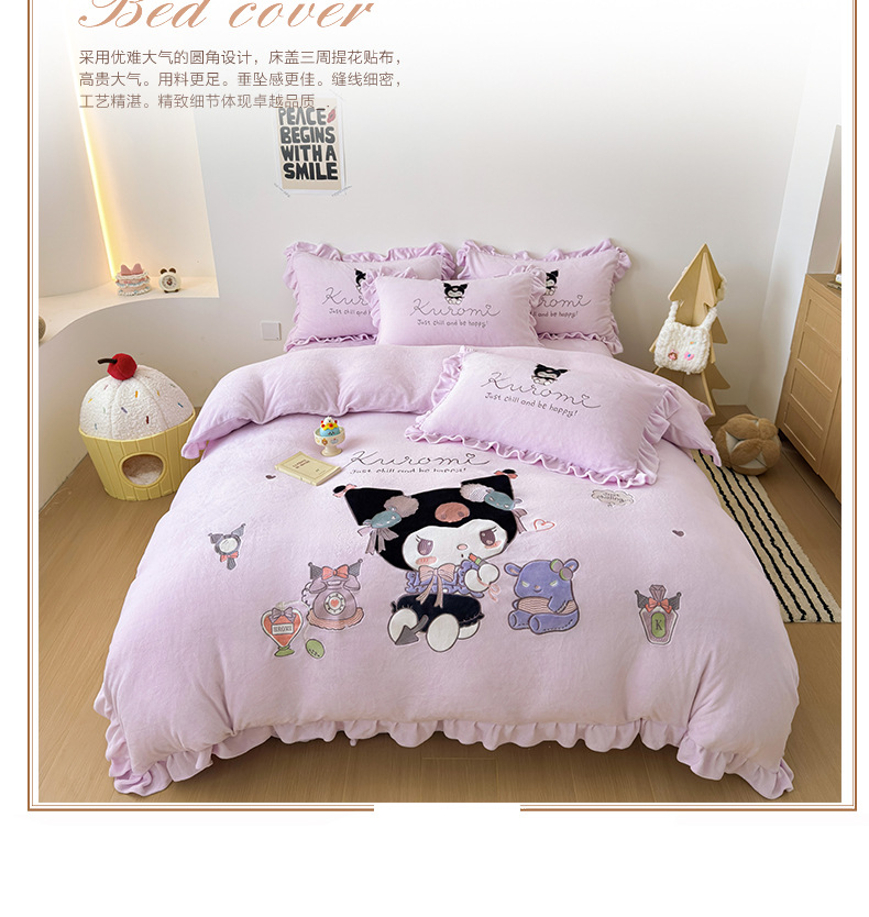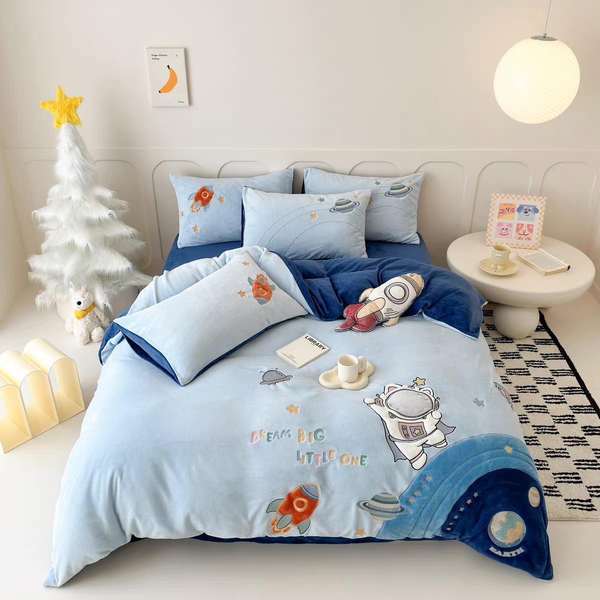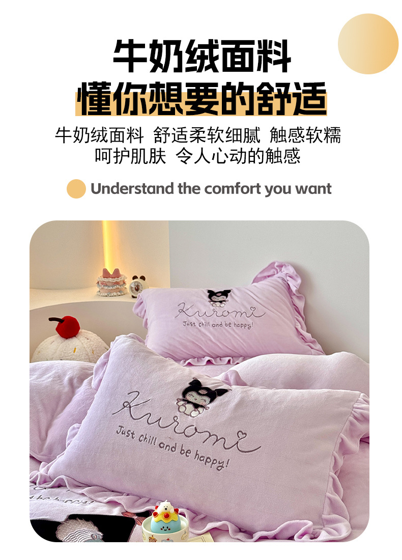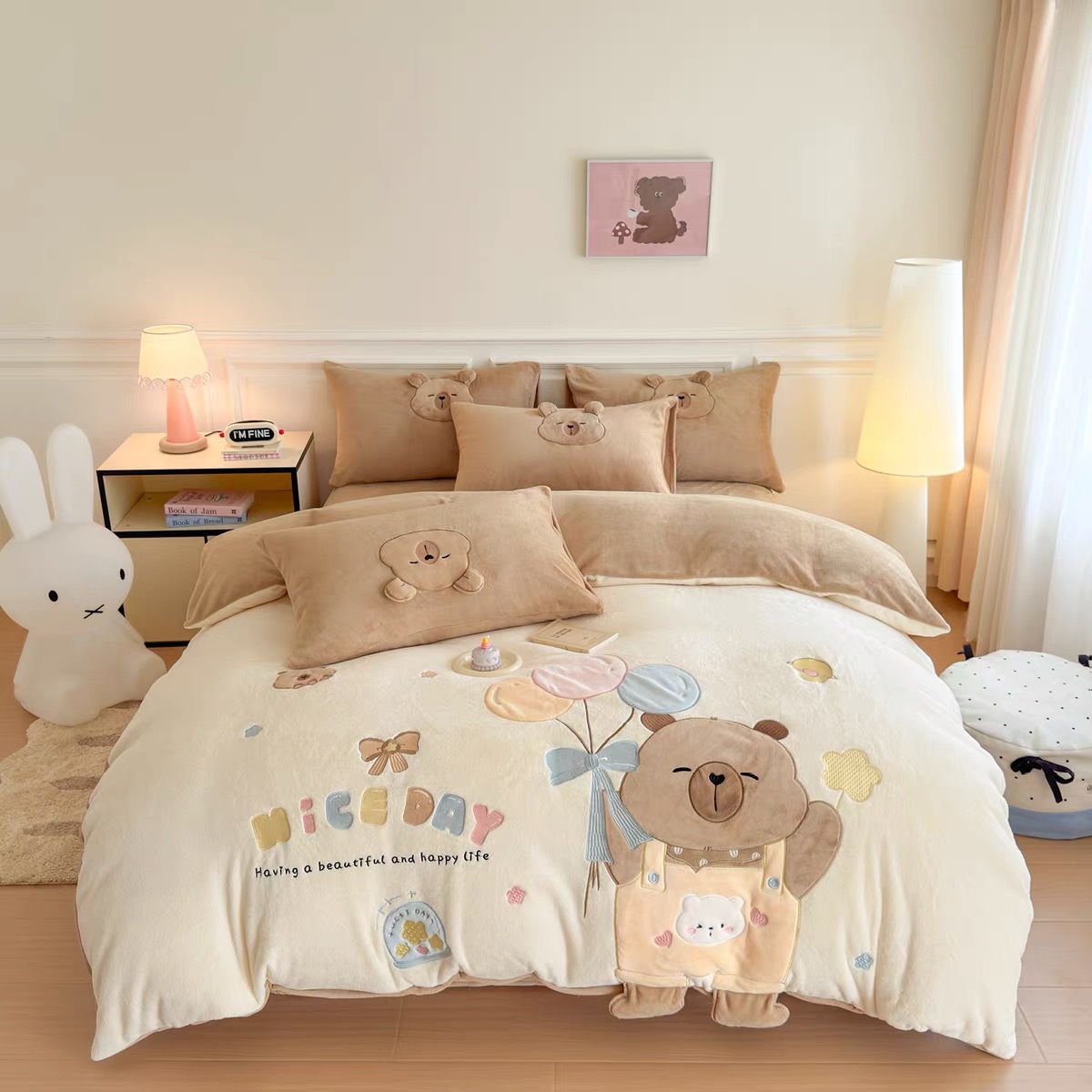 2025新款贝儿牛奶绒四件套公主风女孩子儿童加厚秋冬款床笠三件套