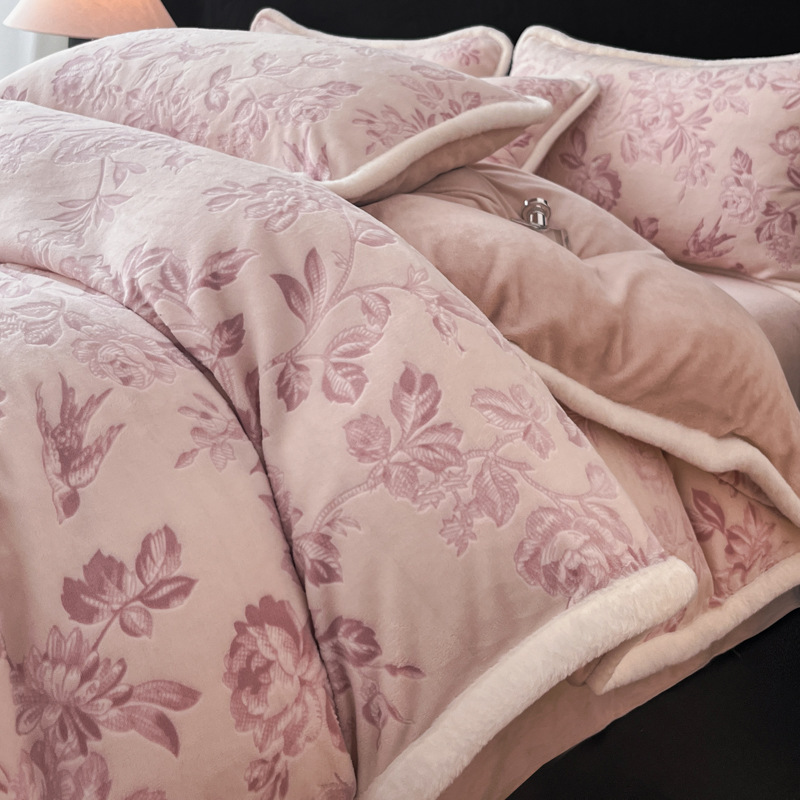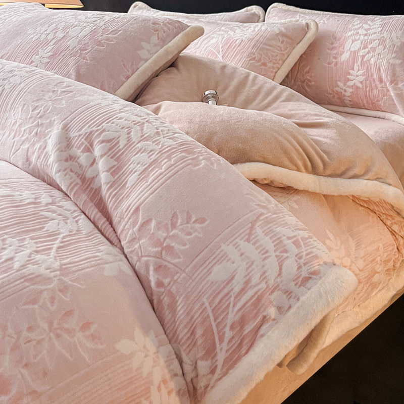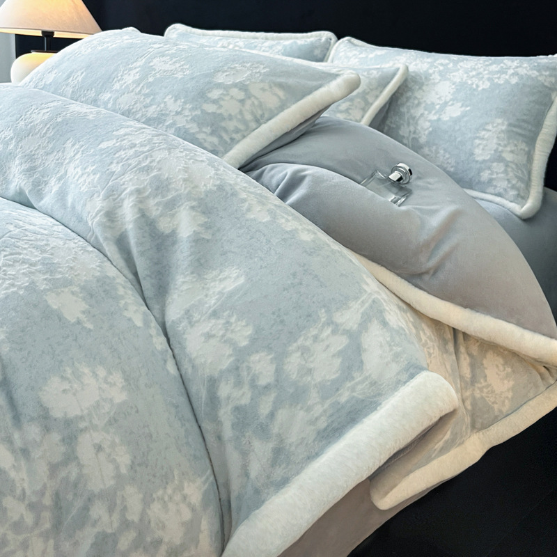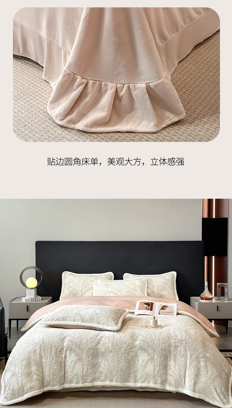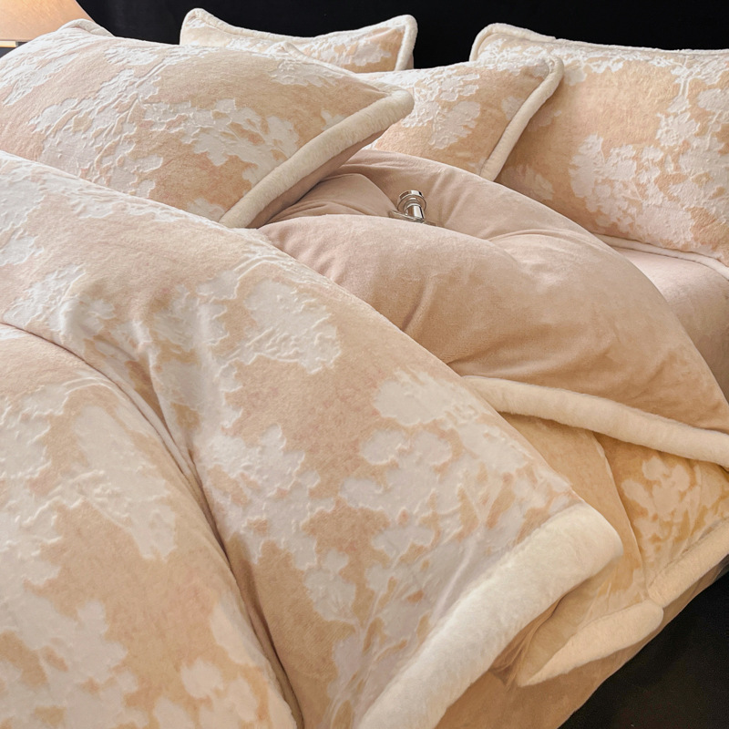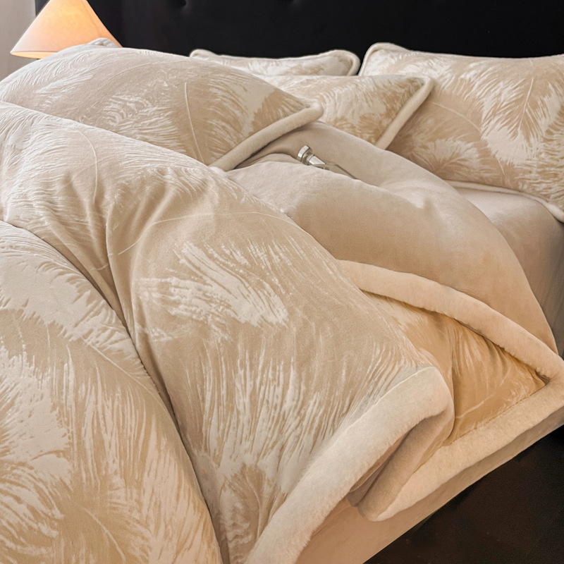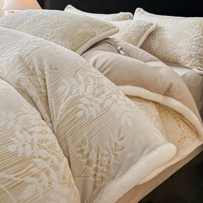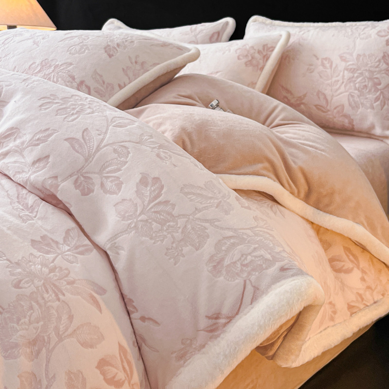 three-dimensional carved milk fiber four-piece set winter thick coral fleece bed sheet quilt cover nantong fleece-lined bedding 4