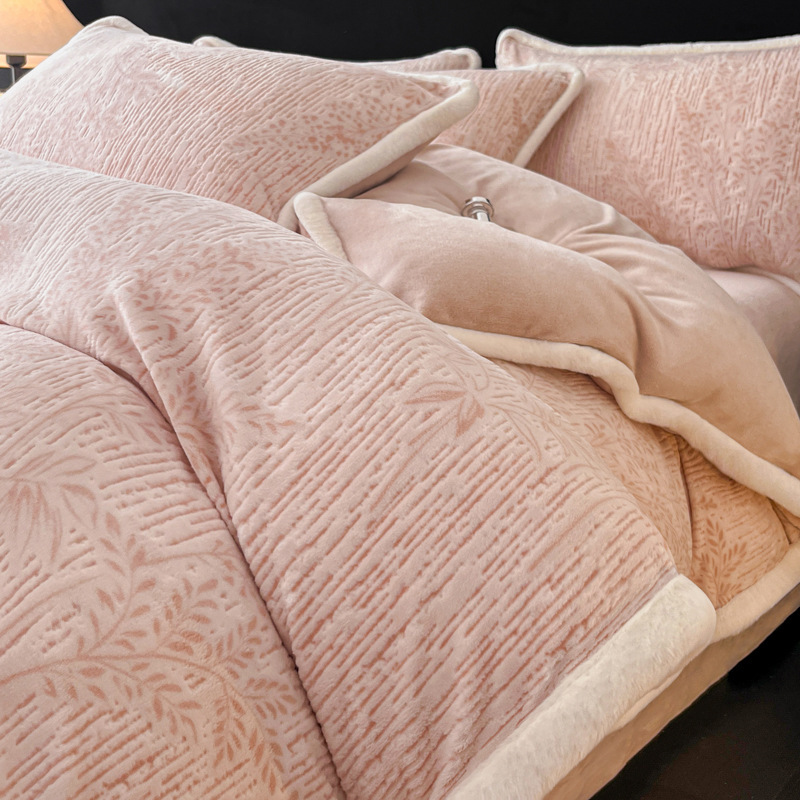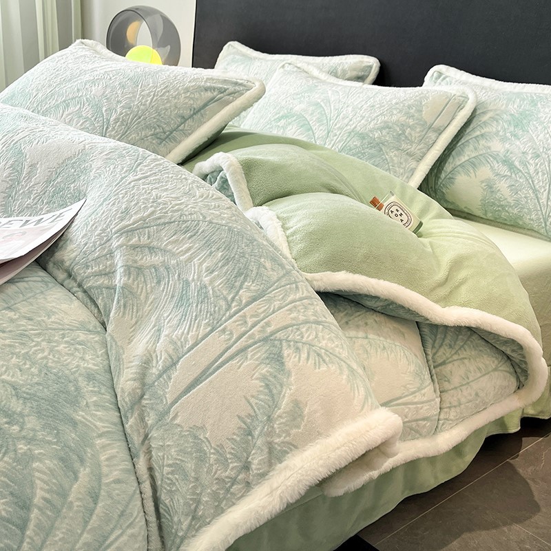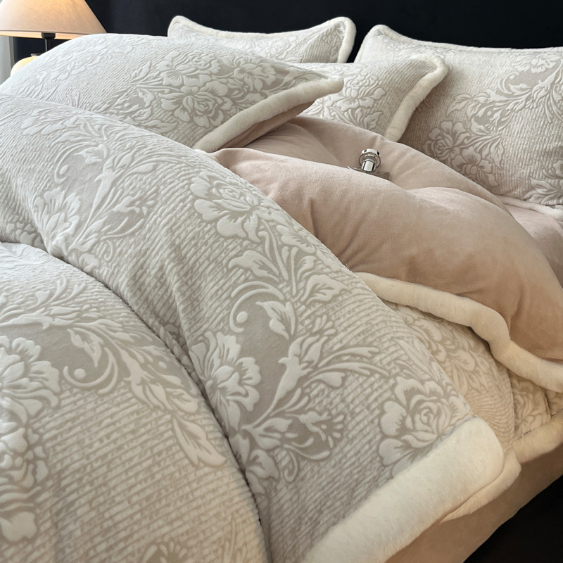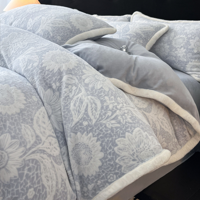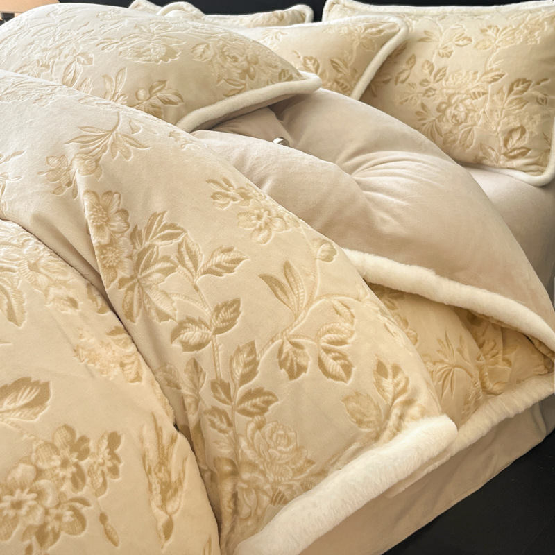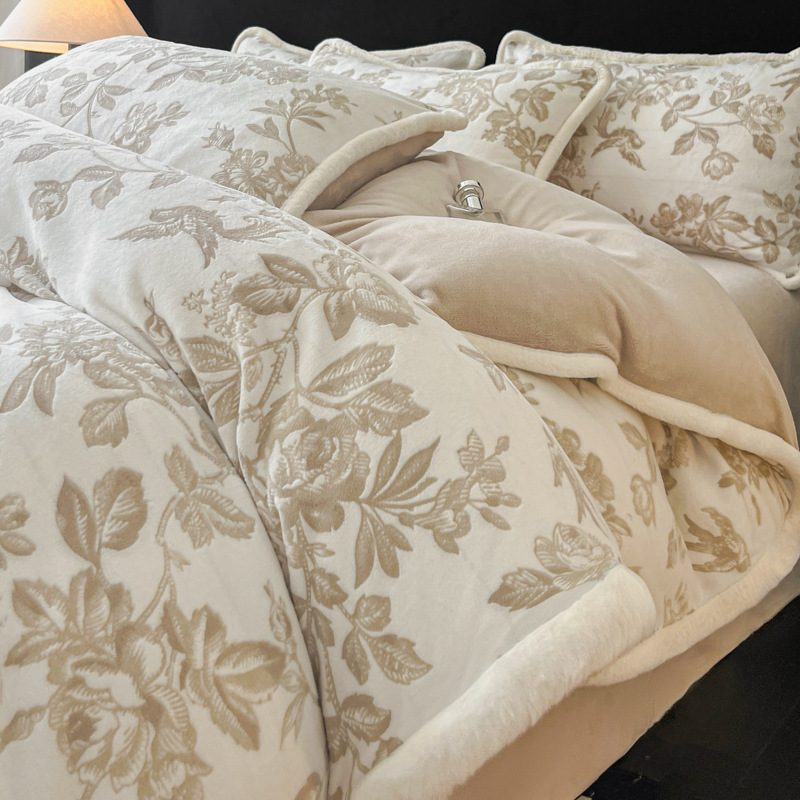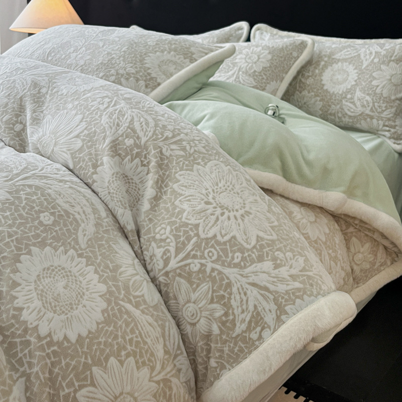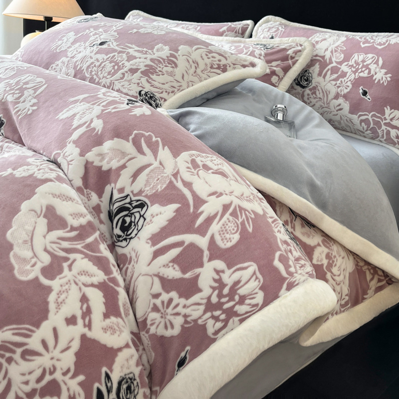 three-dimensional carved milk fiber four-piece set winter thick coral fleece bed sheet quilt cover nantong fleece-lined bedding 4