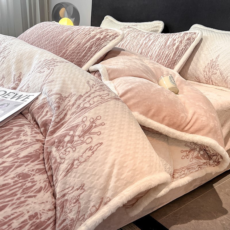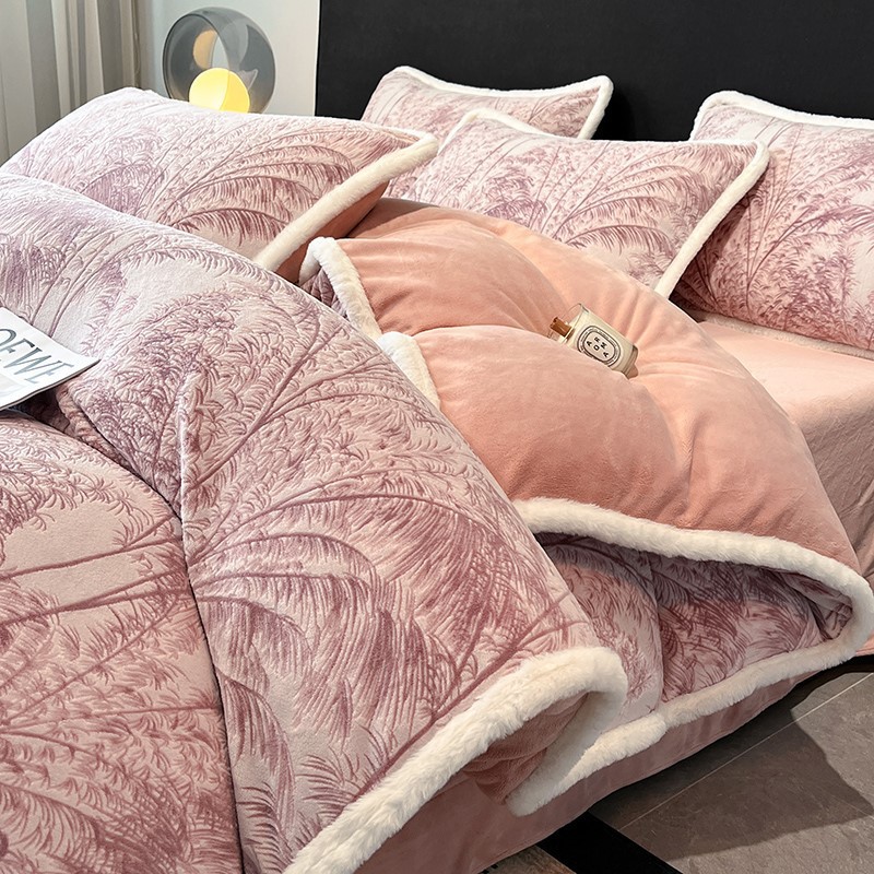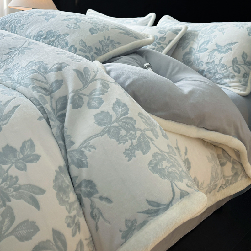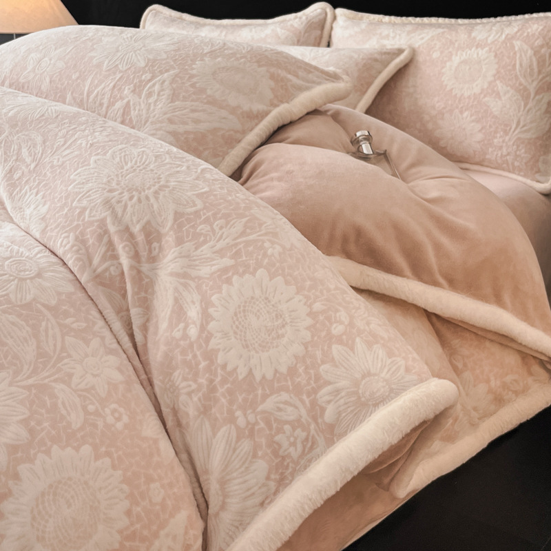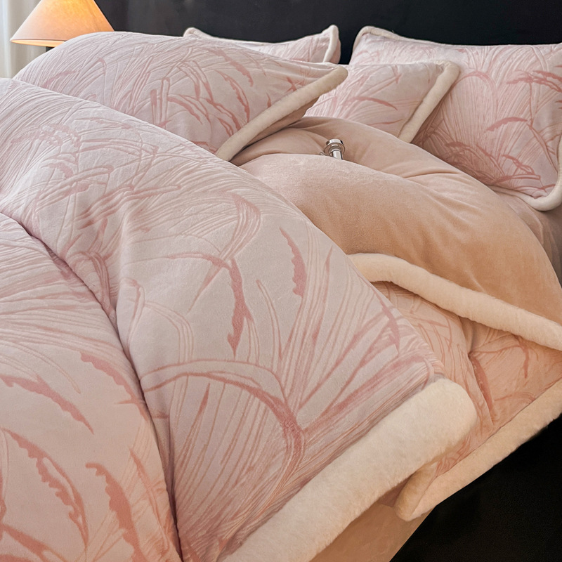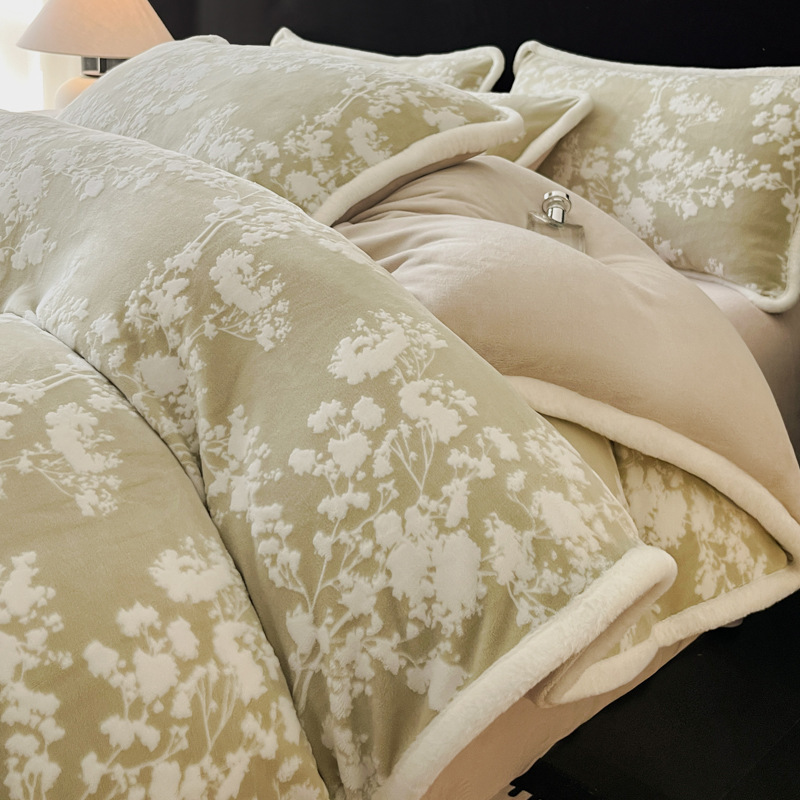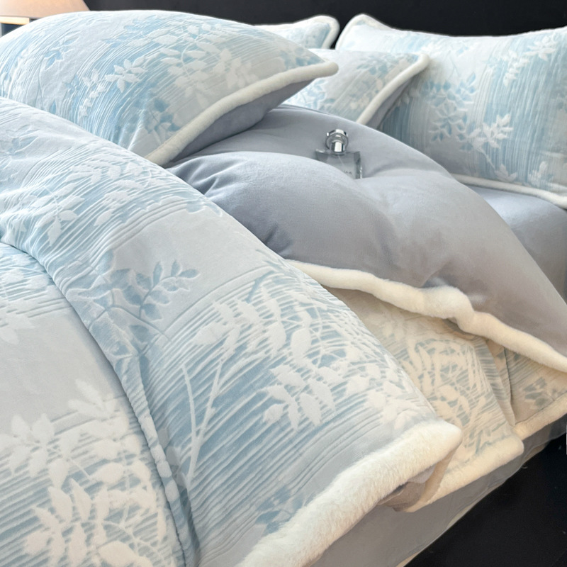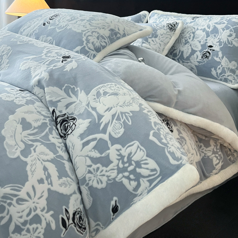 three-dimensional carved milk fiber four-piece set winter thick coral fleece bed sheet quilt cover nantong fleece-lined bedding 4