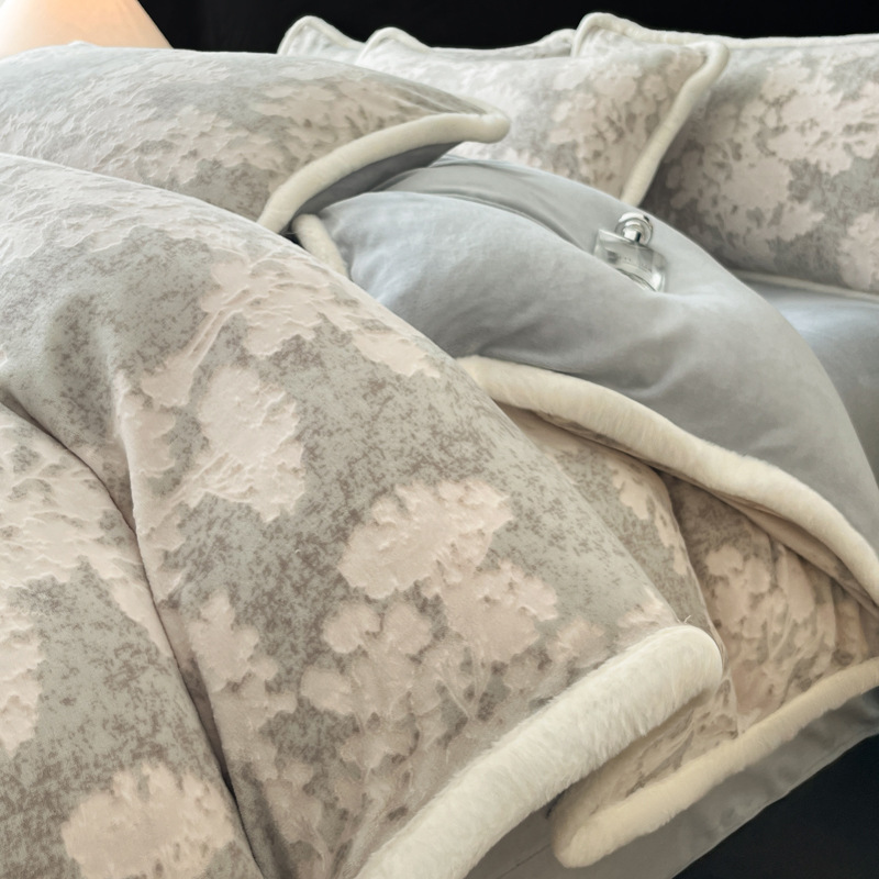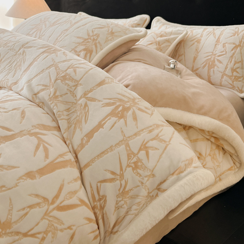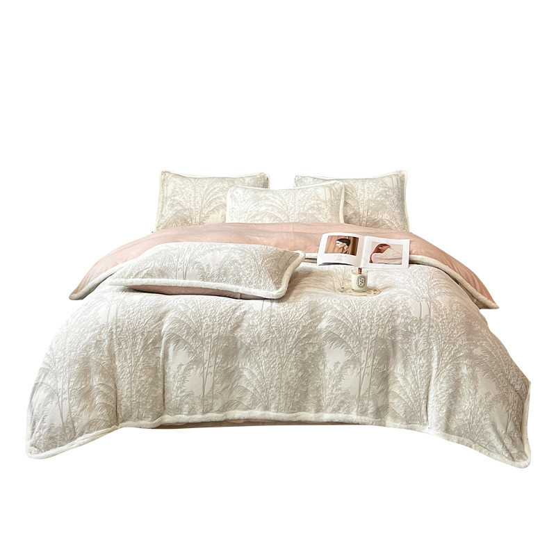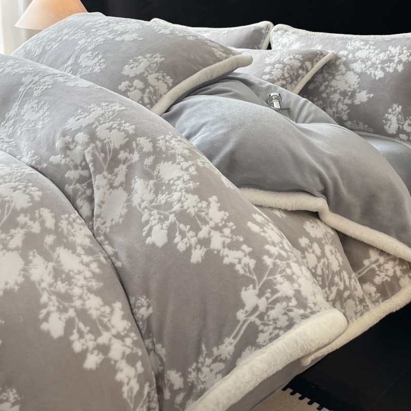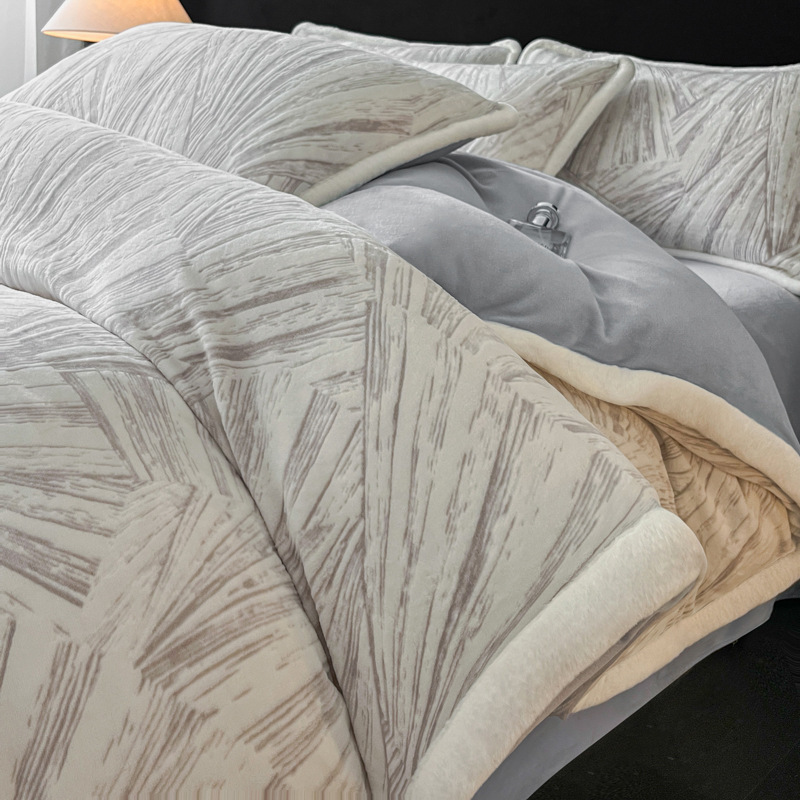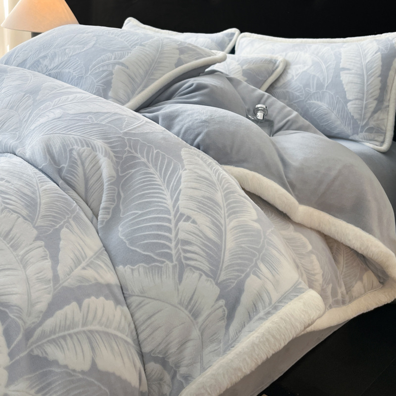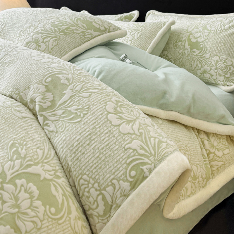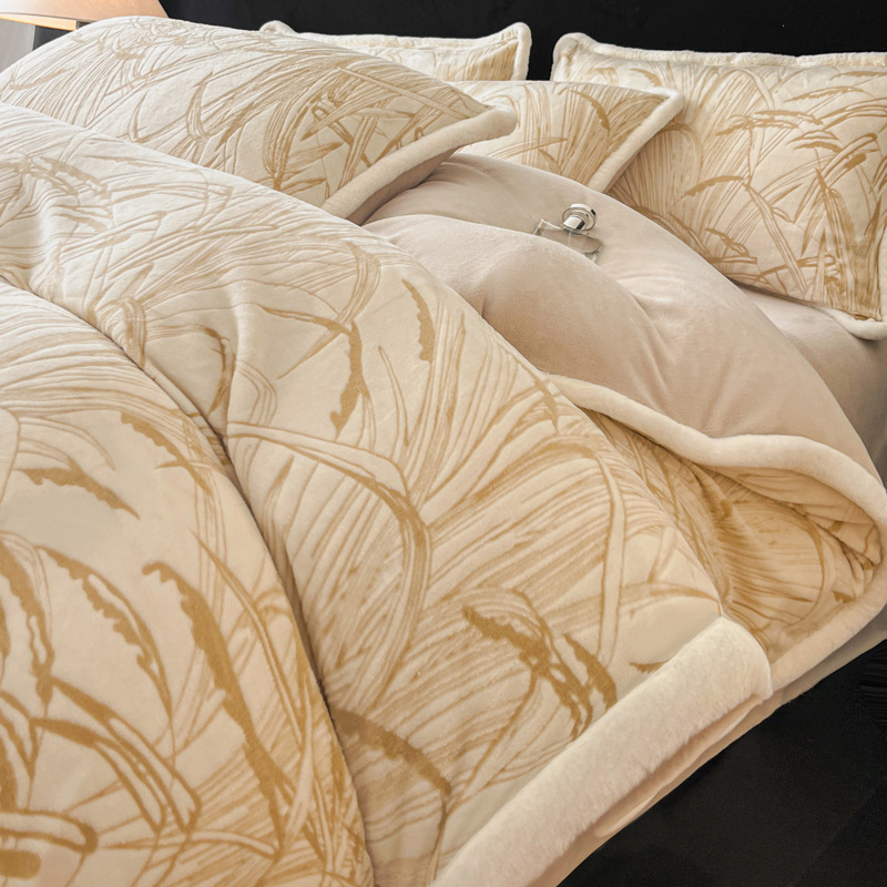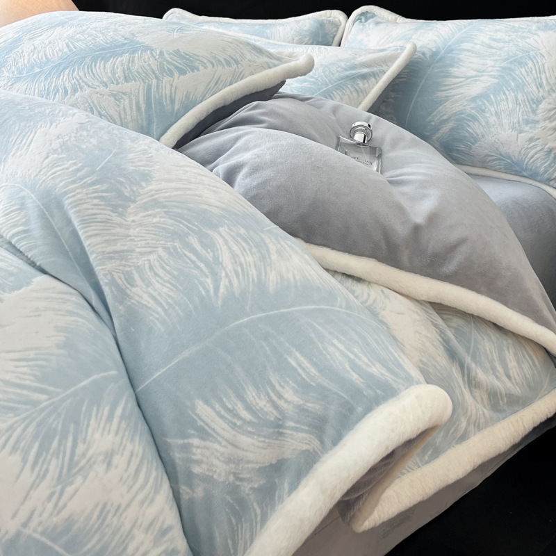 three-dimensional carved milk fiber four-piece set winter thick coral fleece bed sheet quilt cover nantong fleece-lined bedding 4