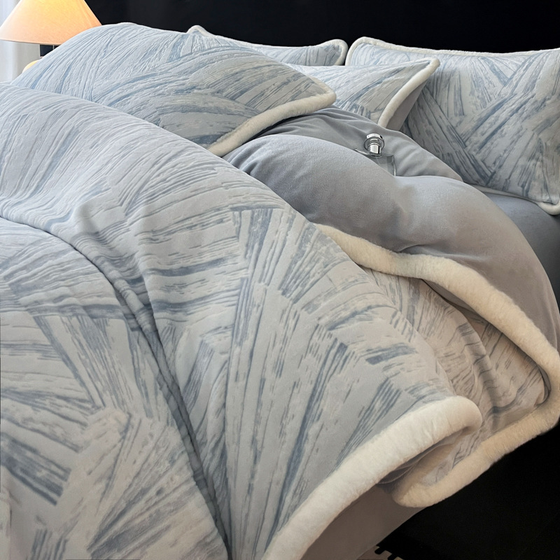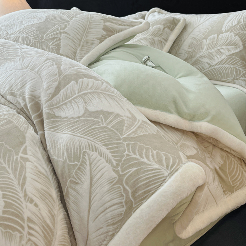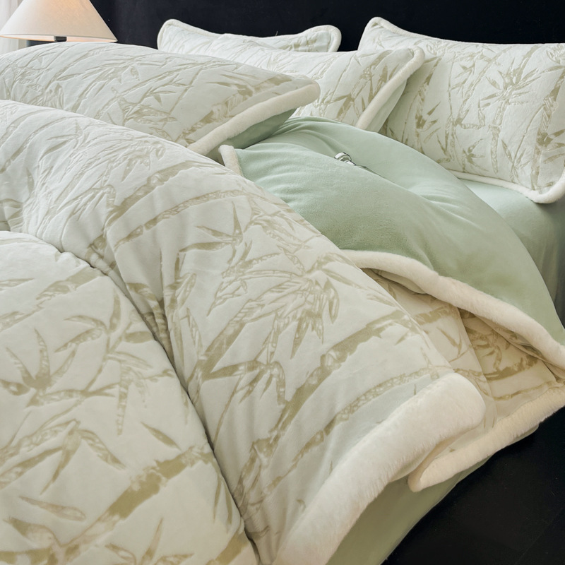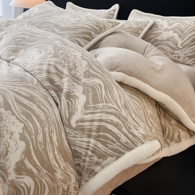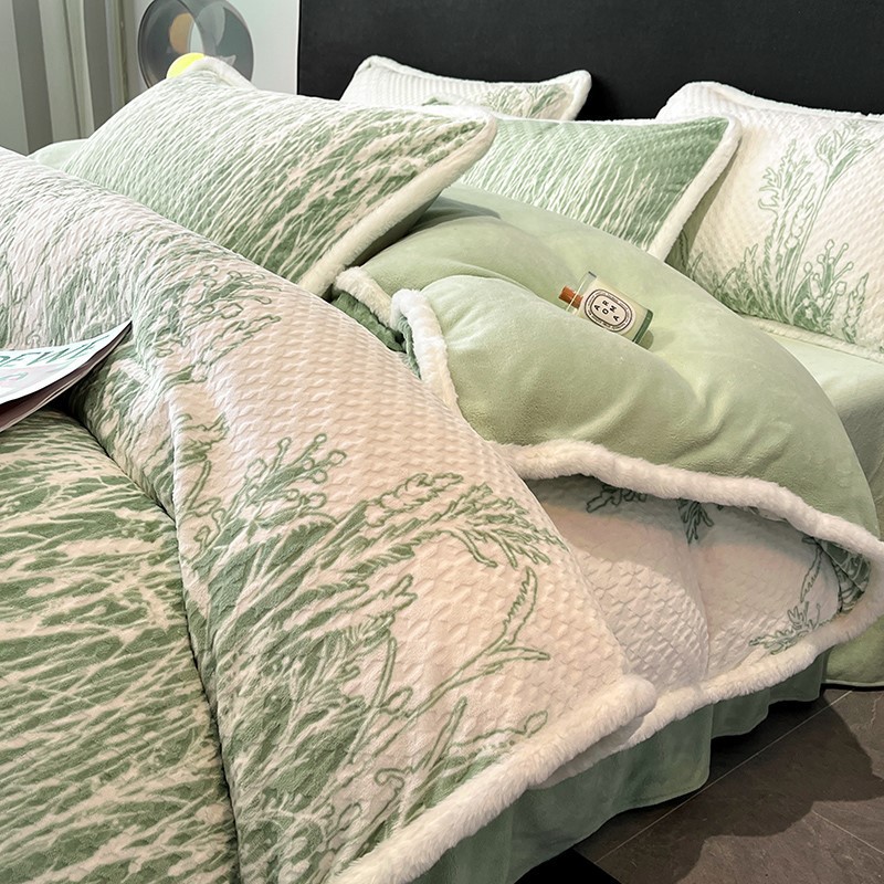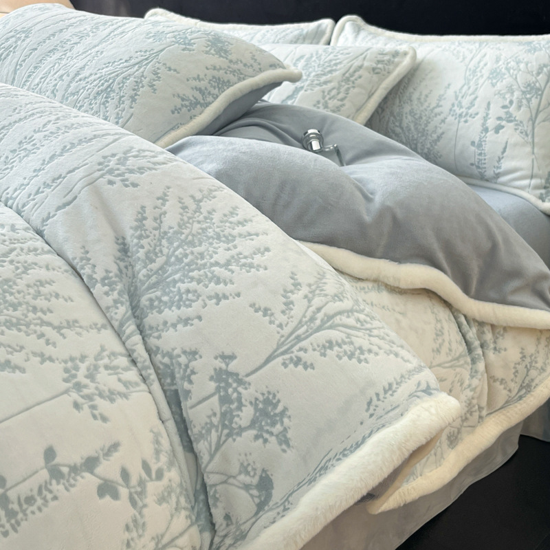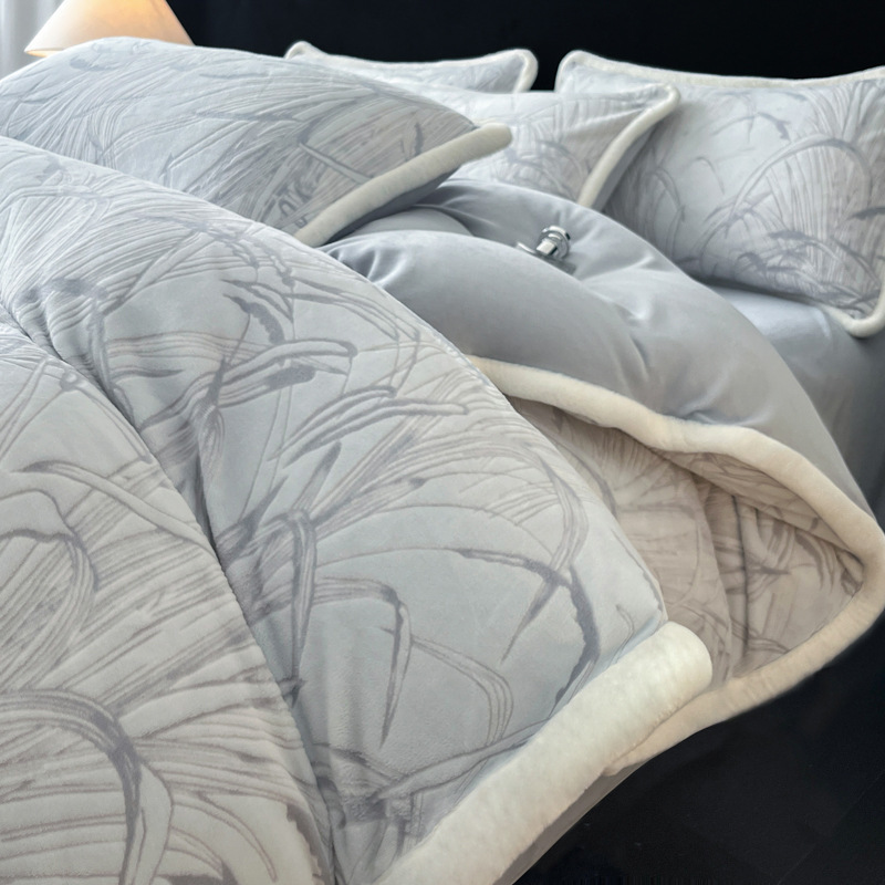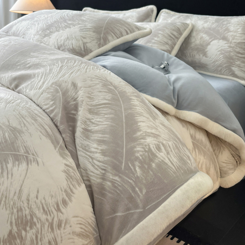 three-dimensional carved milk fiber four-piece set winter thick coral fleece bed sheet quilt cover nantong fleece-lined bedding 4