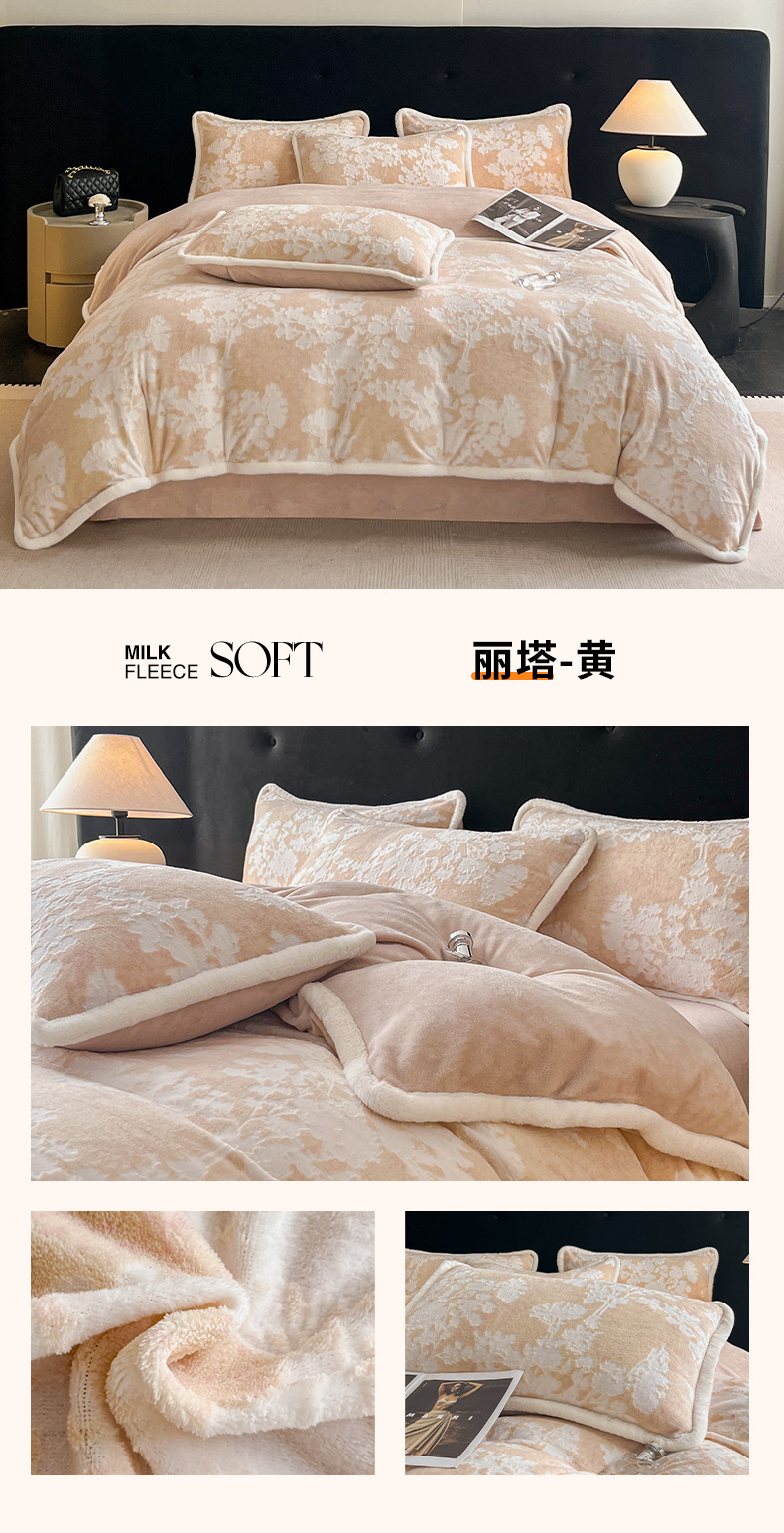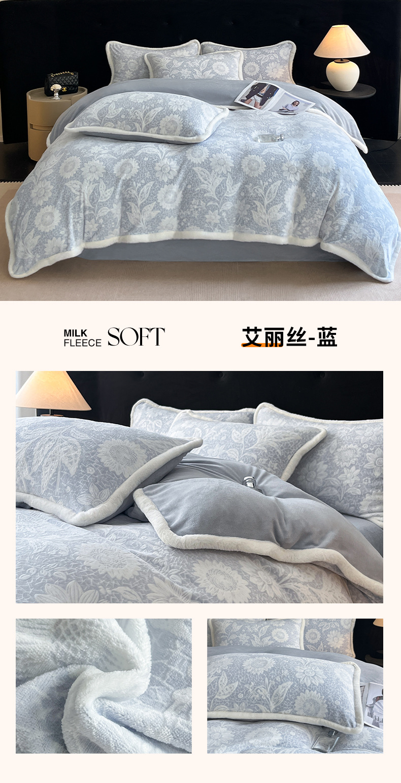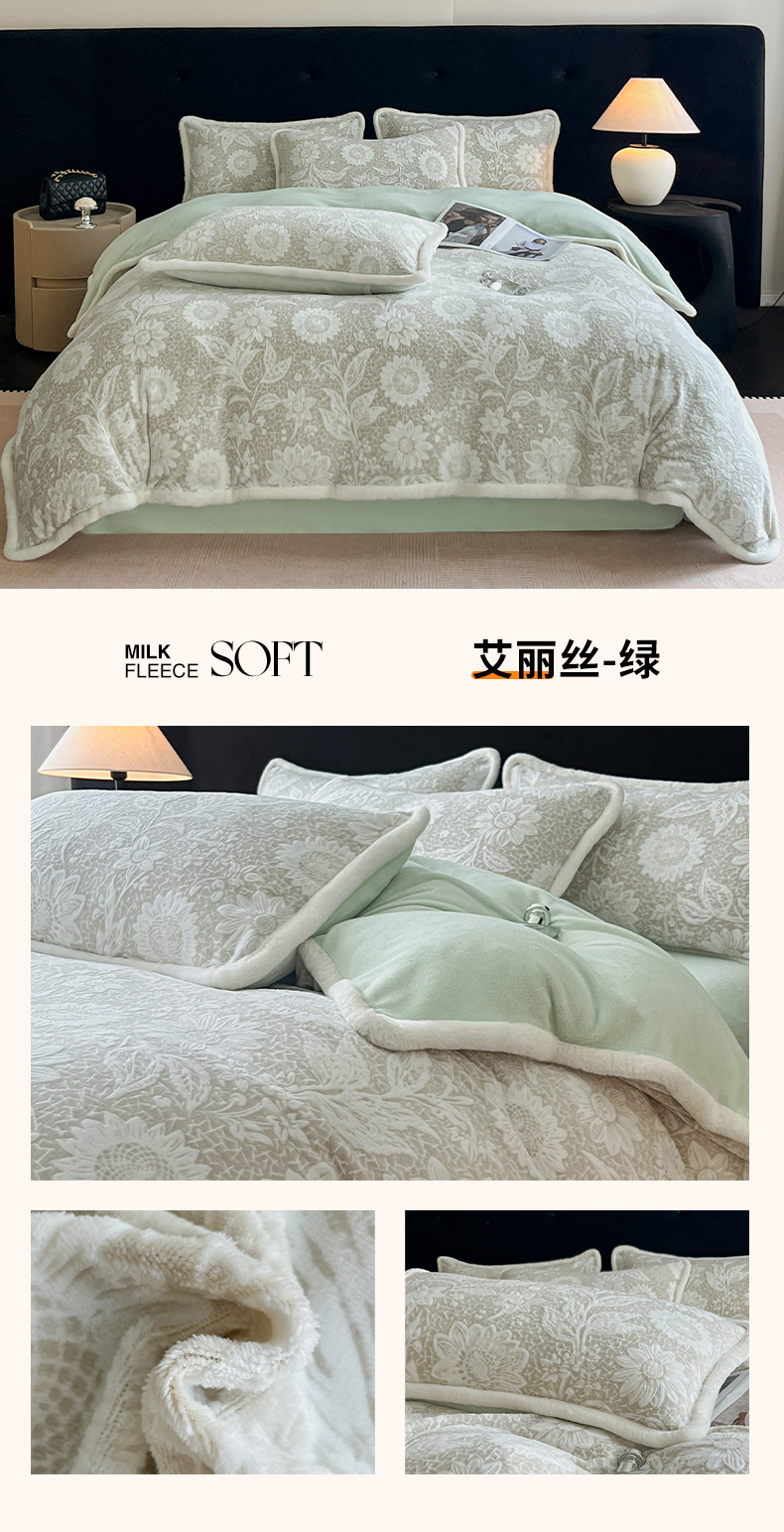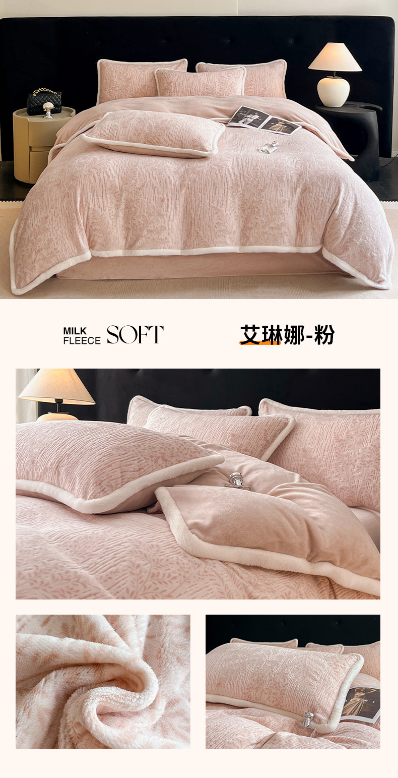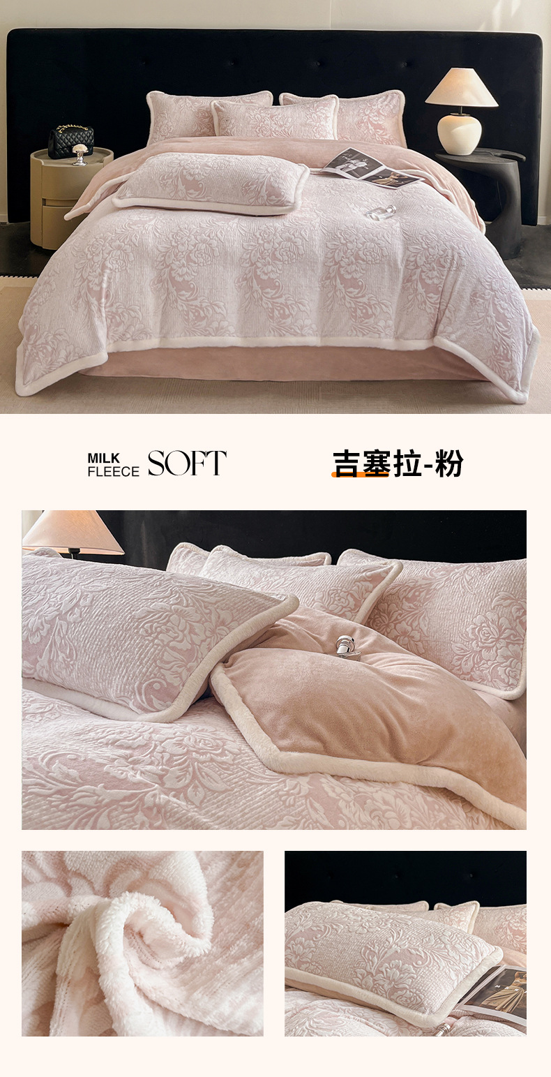 立体雕花牛奶绒四件套冬季加厚珊瑚绒床单被套南通加绒床上用品4