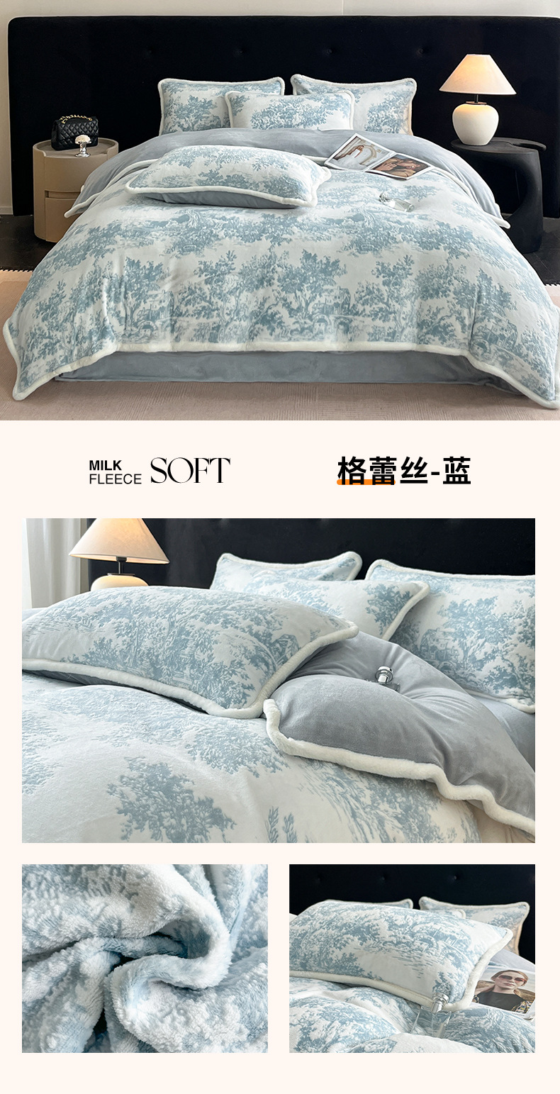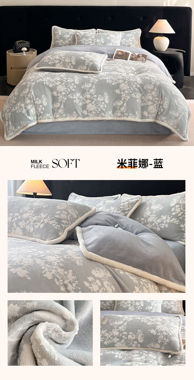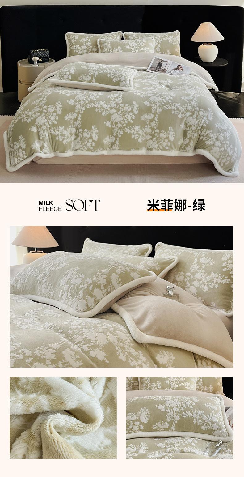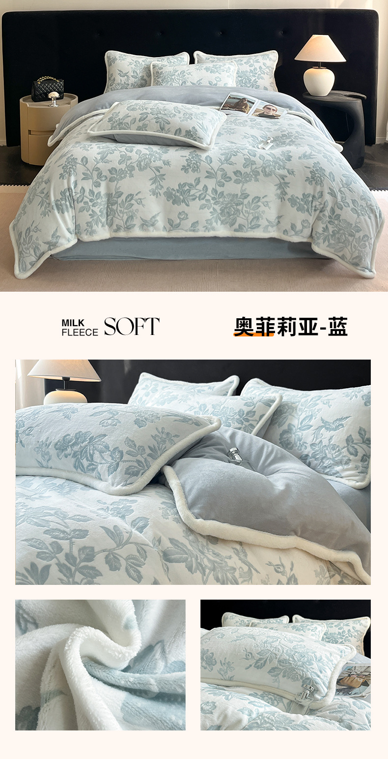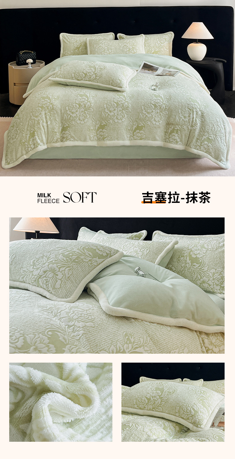 立体雕花牛奶绒四件套冬季加厚珊瑚绒床单被套南通加绒床上用品4
