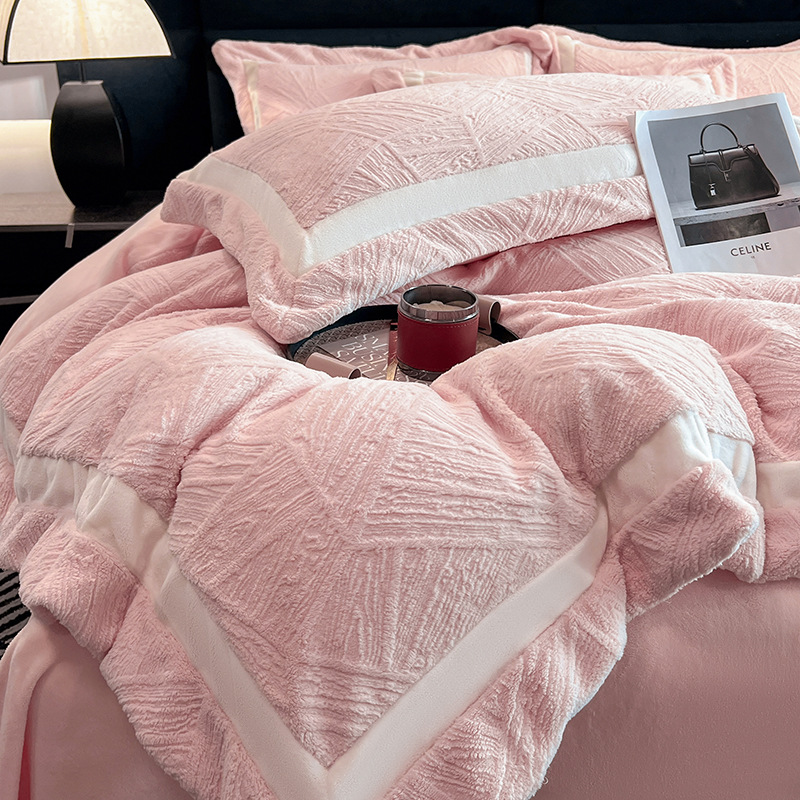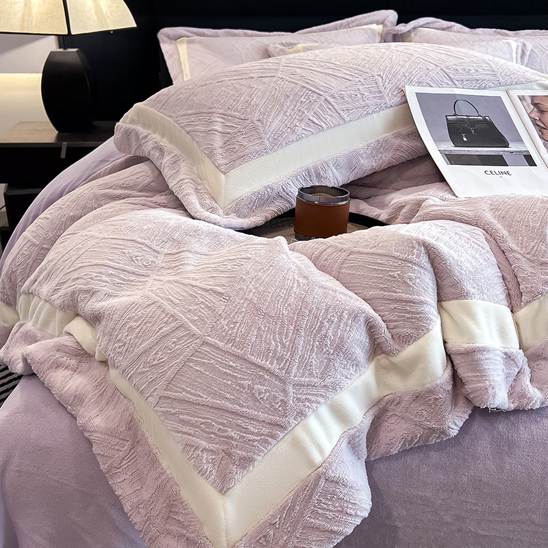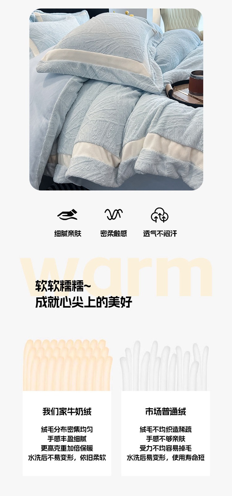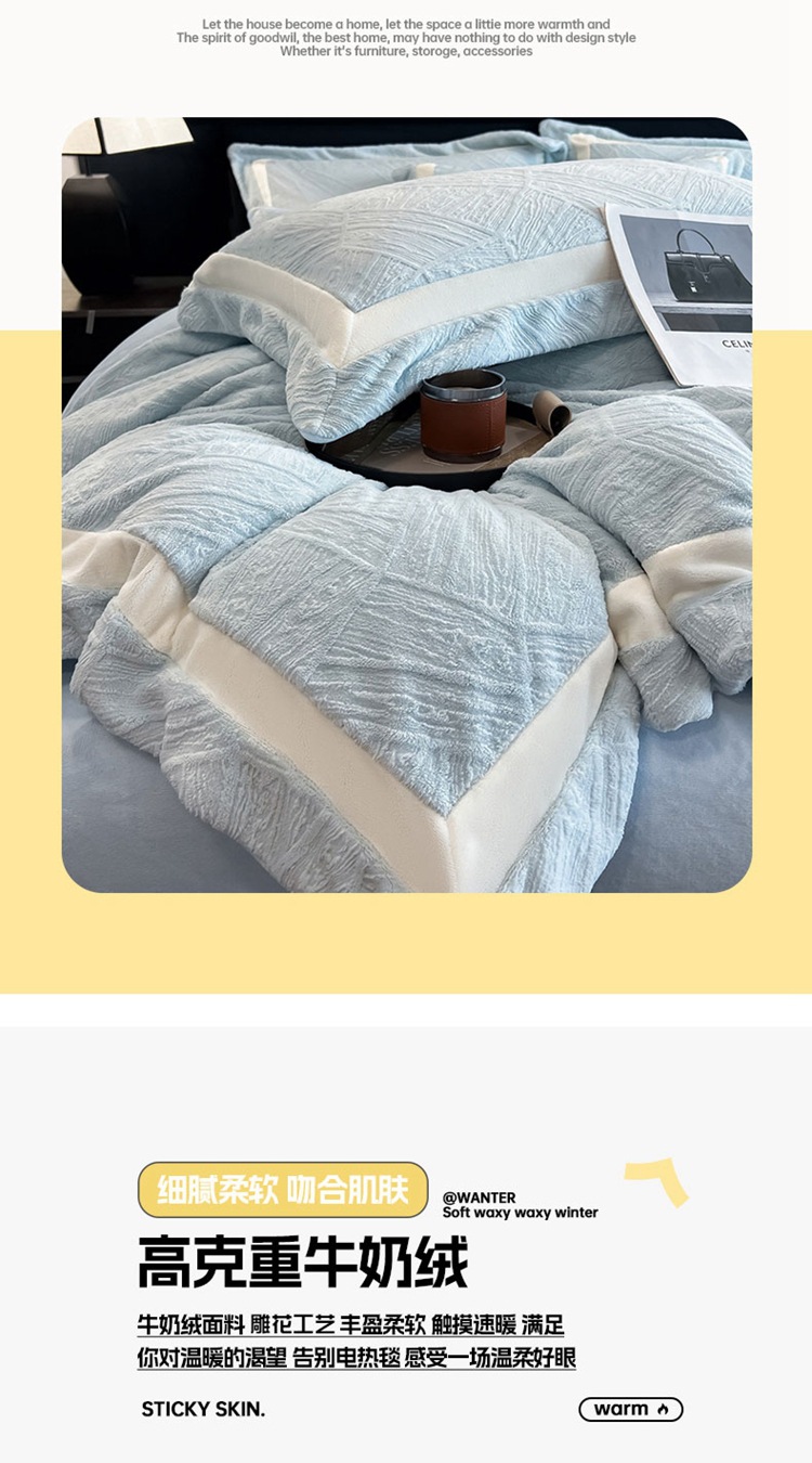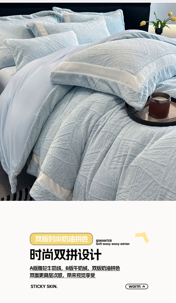 加厚牛奶绒四件套A类婴儿级加厚保暖珊瑚绒法兰绒雕花绒冬季床品4