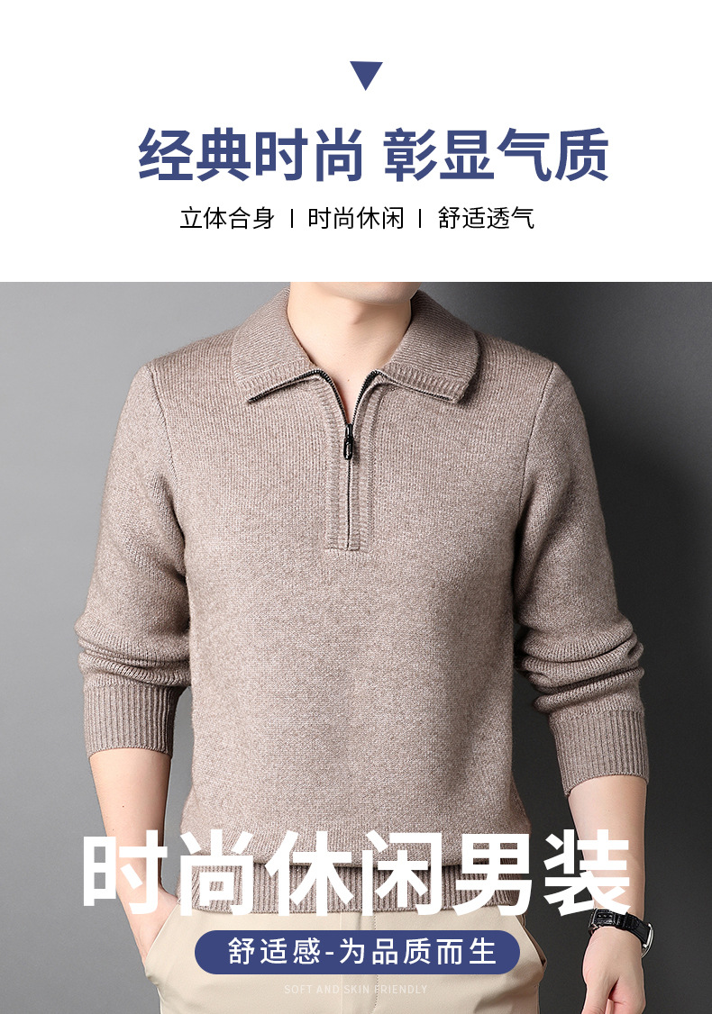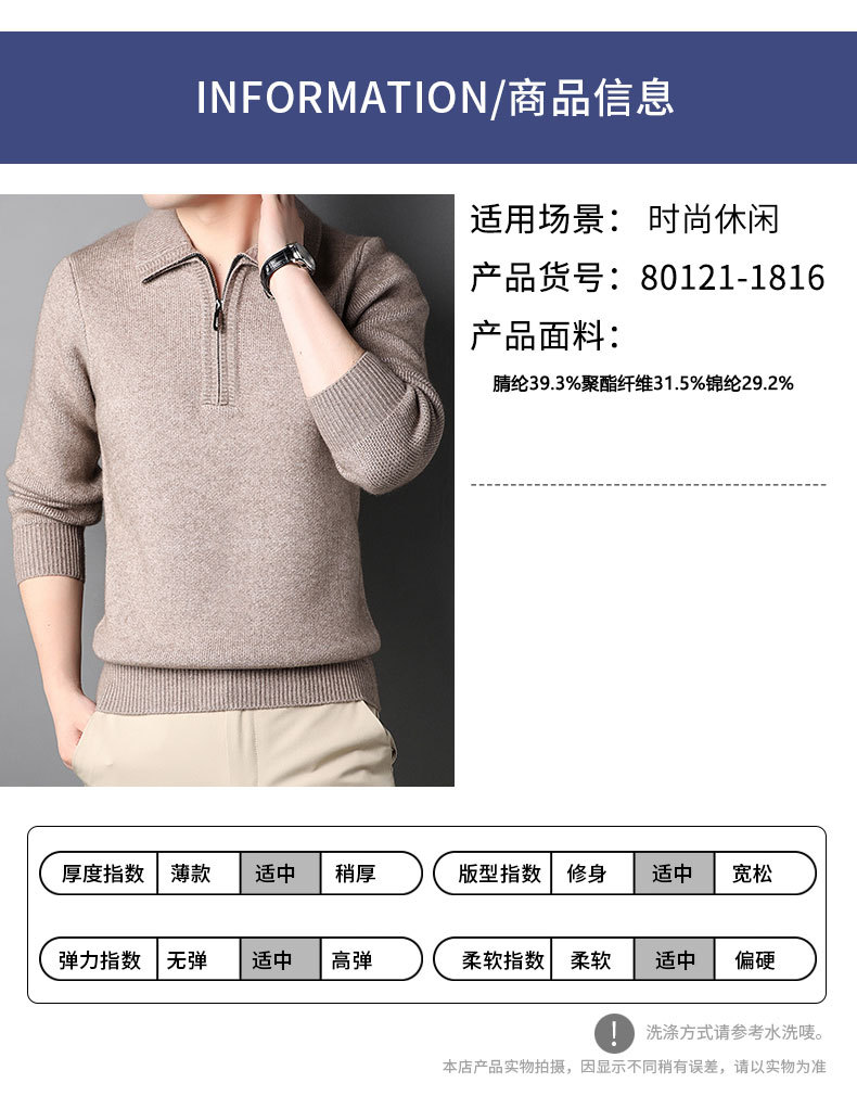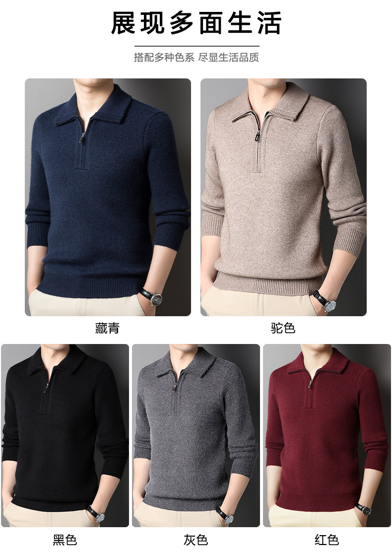 男士毛衣半拉链款秋季加厚打底衫男款休闲针织衫爸爸男装线衣工厂