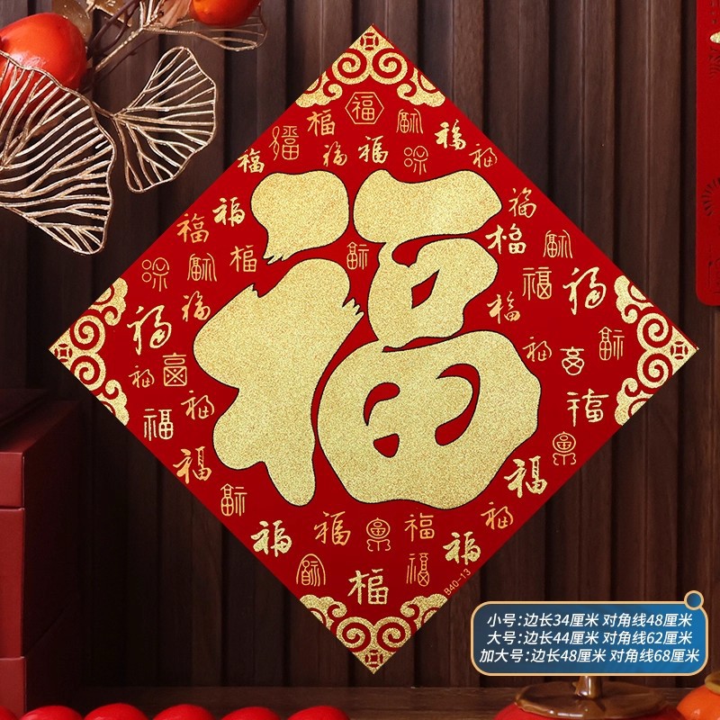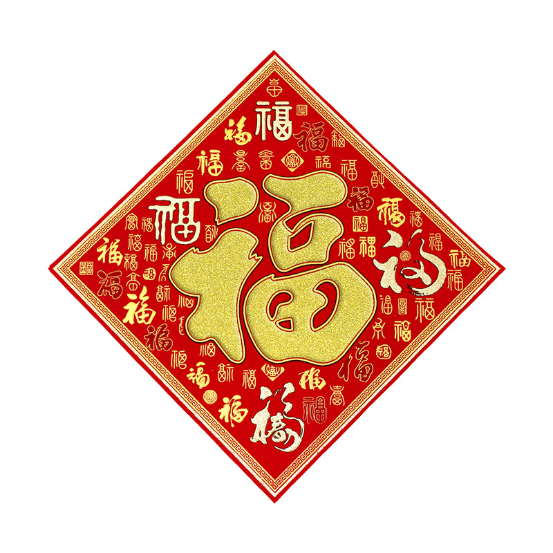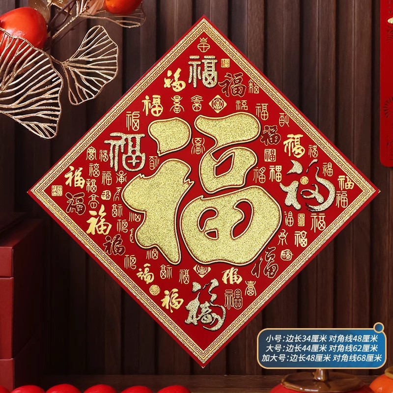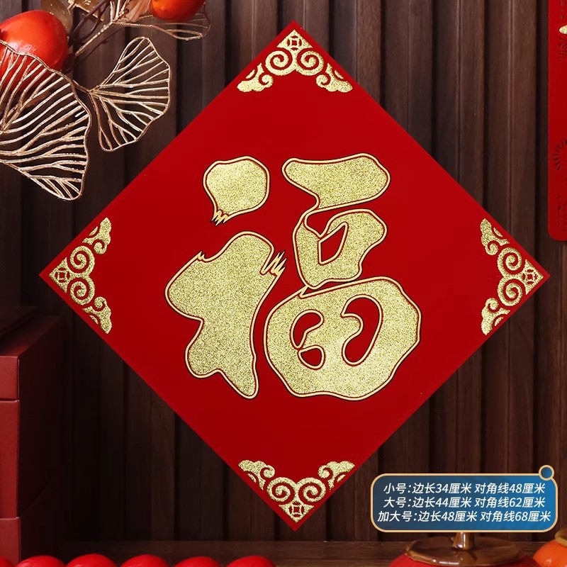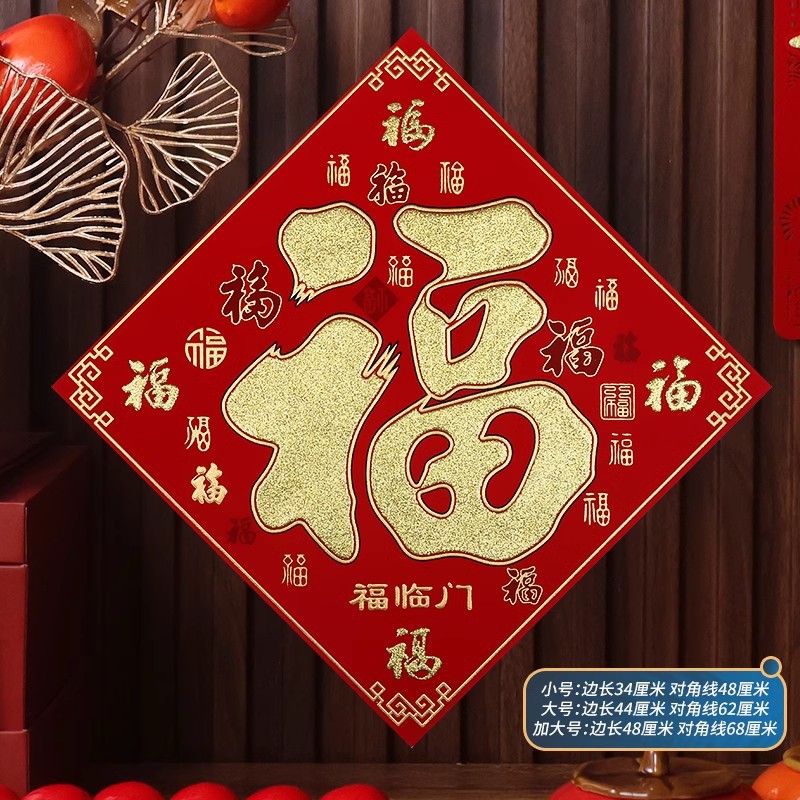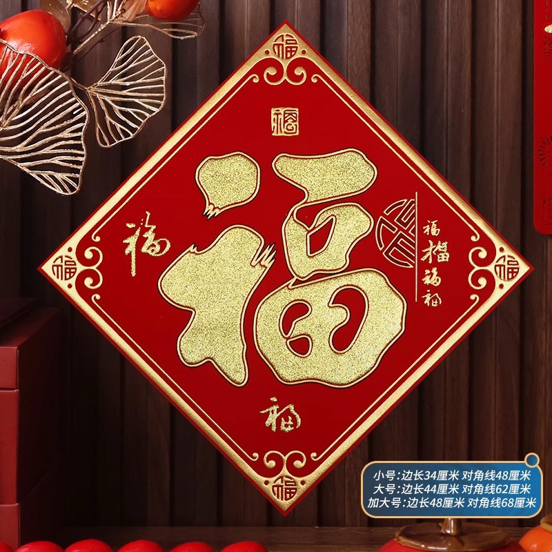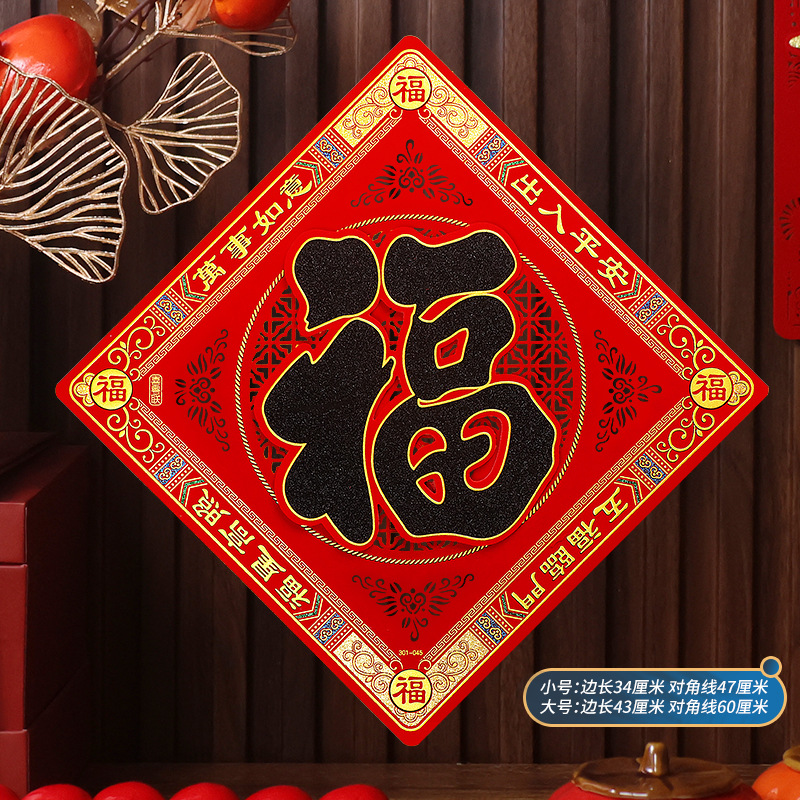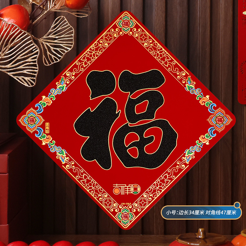 2026马年植绒布春节新年装饰过年用品自粘福字门贴纸贴墙立体福字