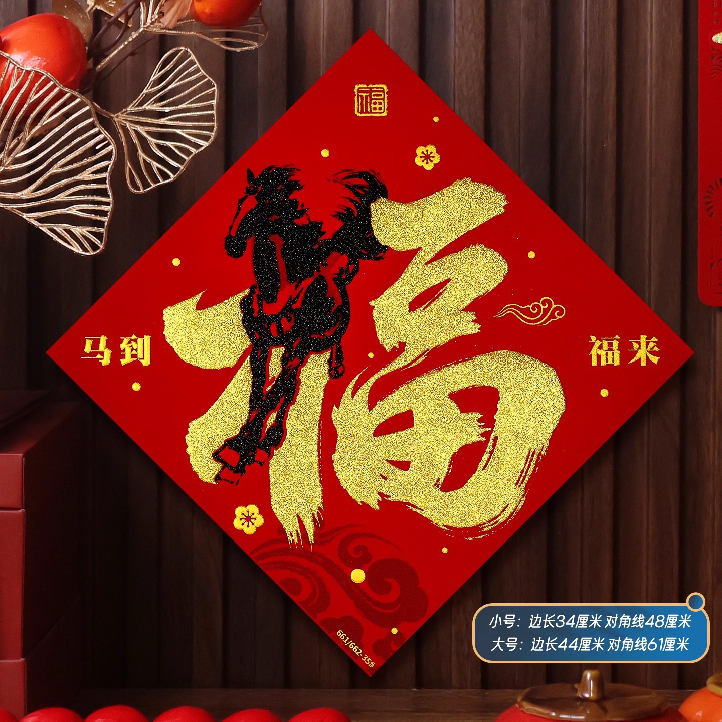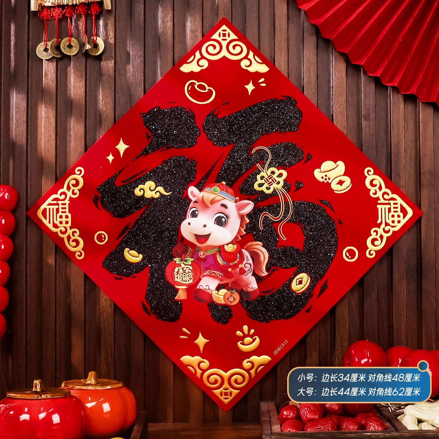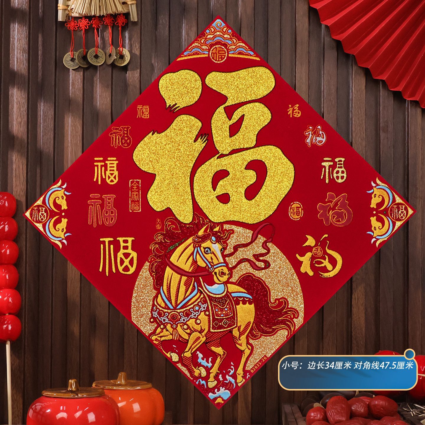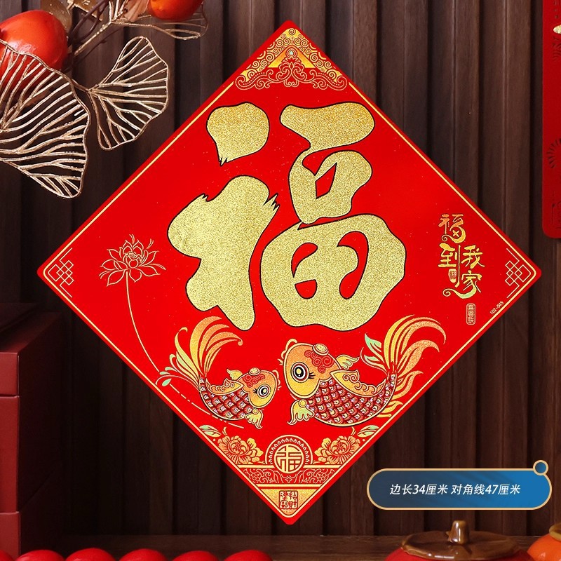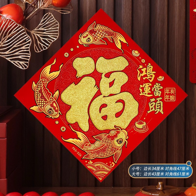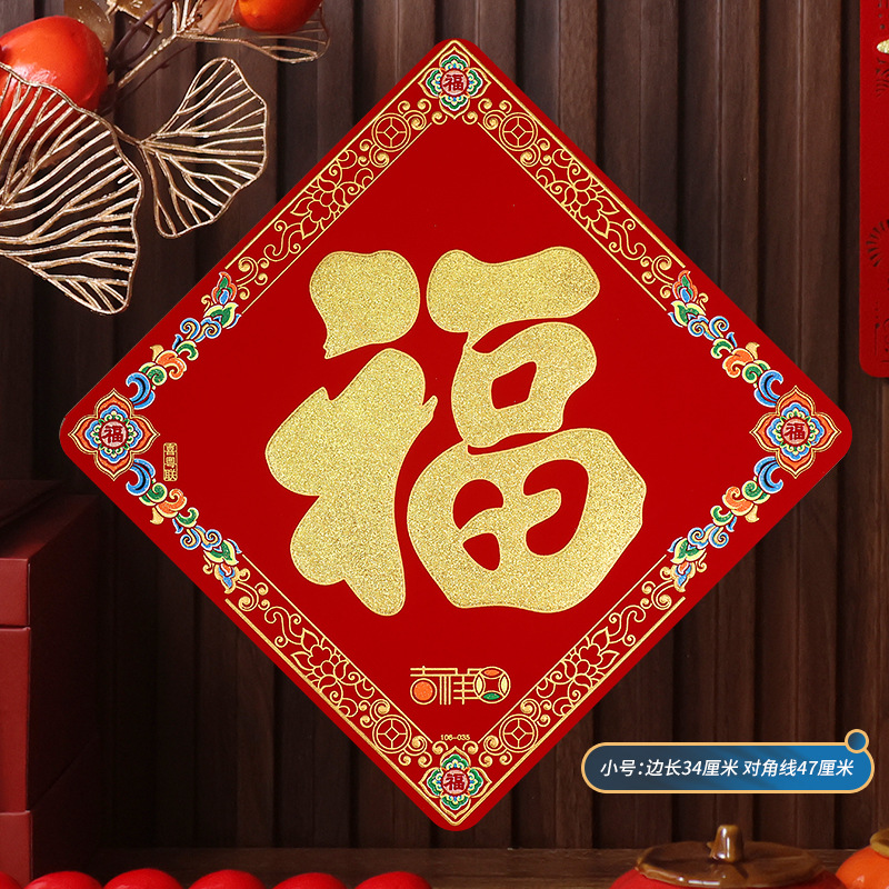 2026马年植绒布春节新年装饰过年用品自粘福字门贴纸贴墙立体福字