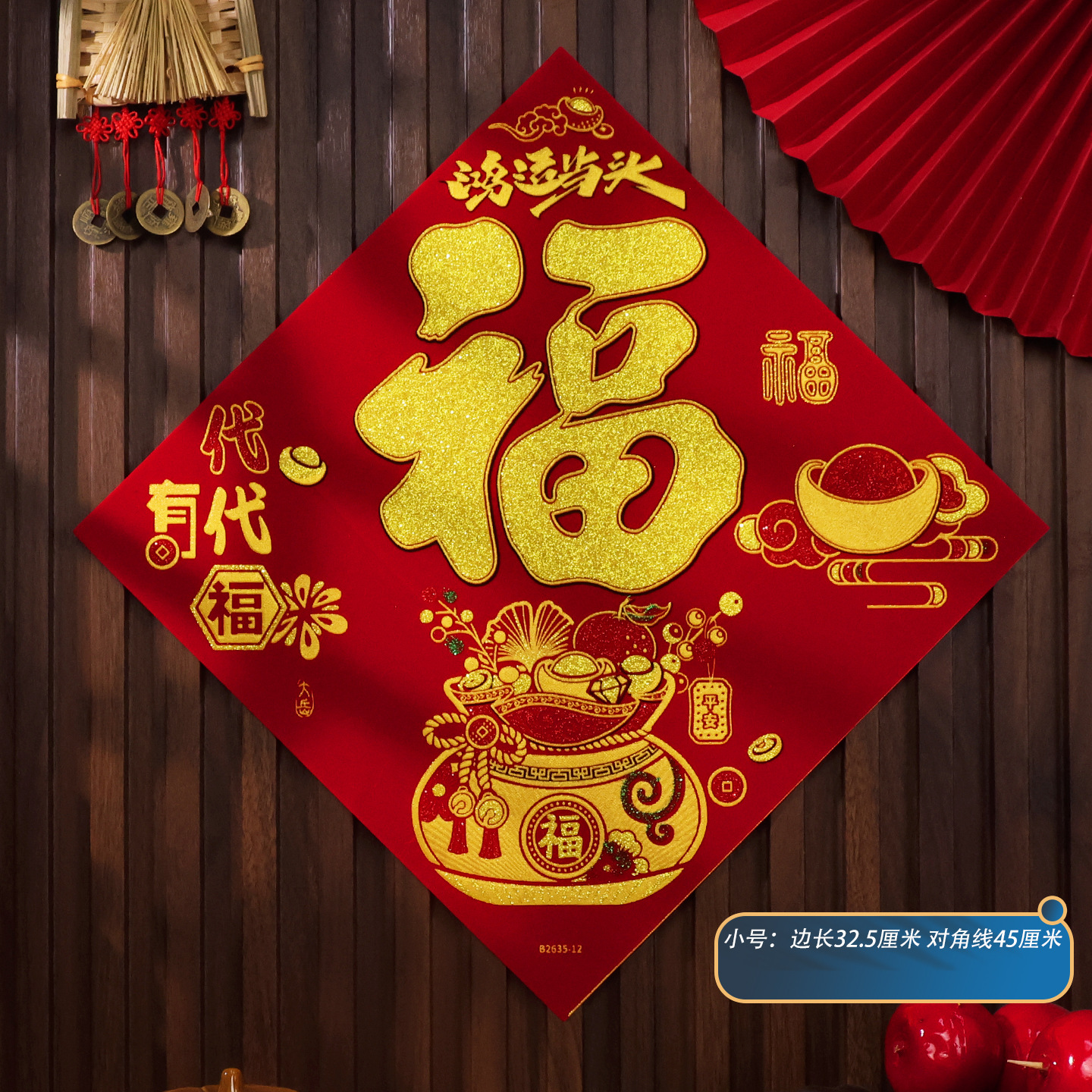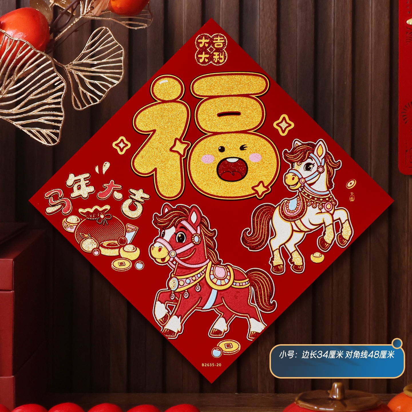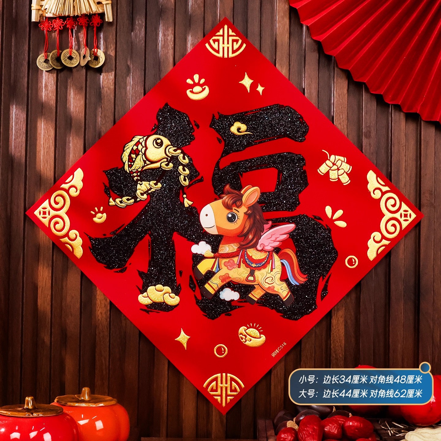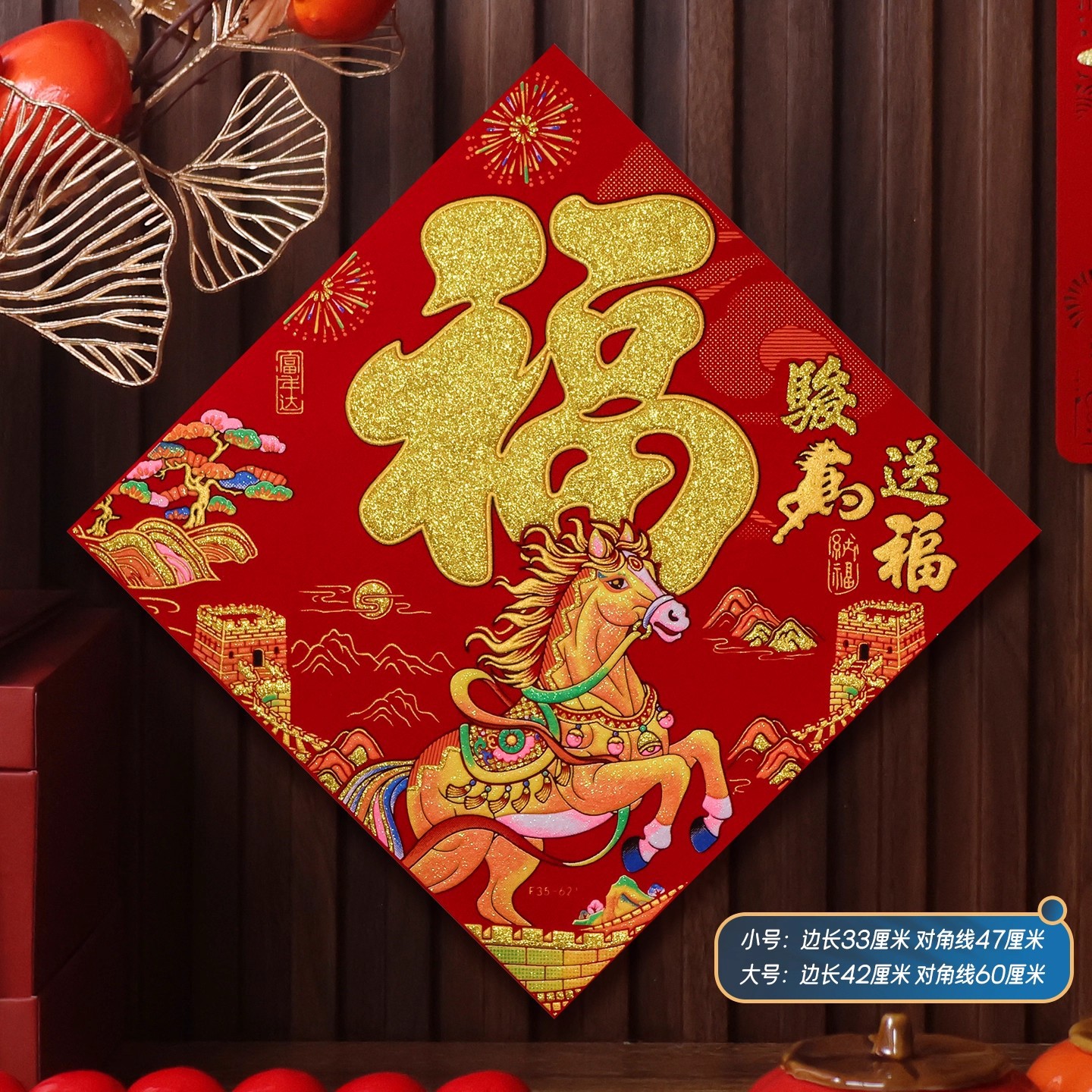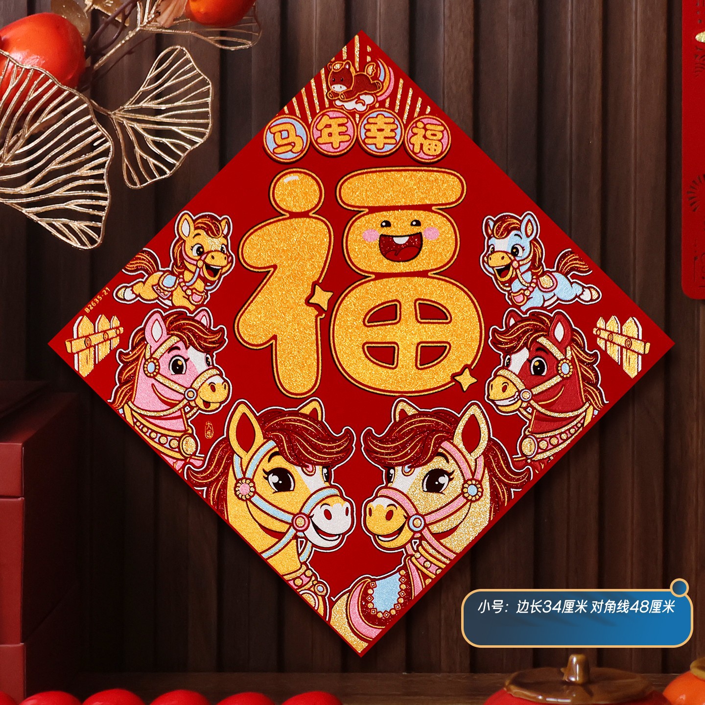 2026马年植绒布春节新年装饰过年用品自粘福字门贴纸贴墙立体福字