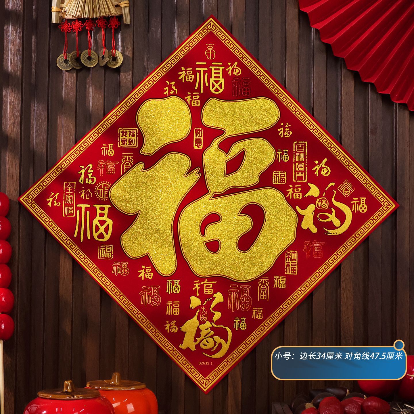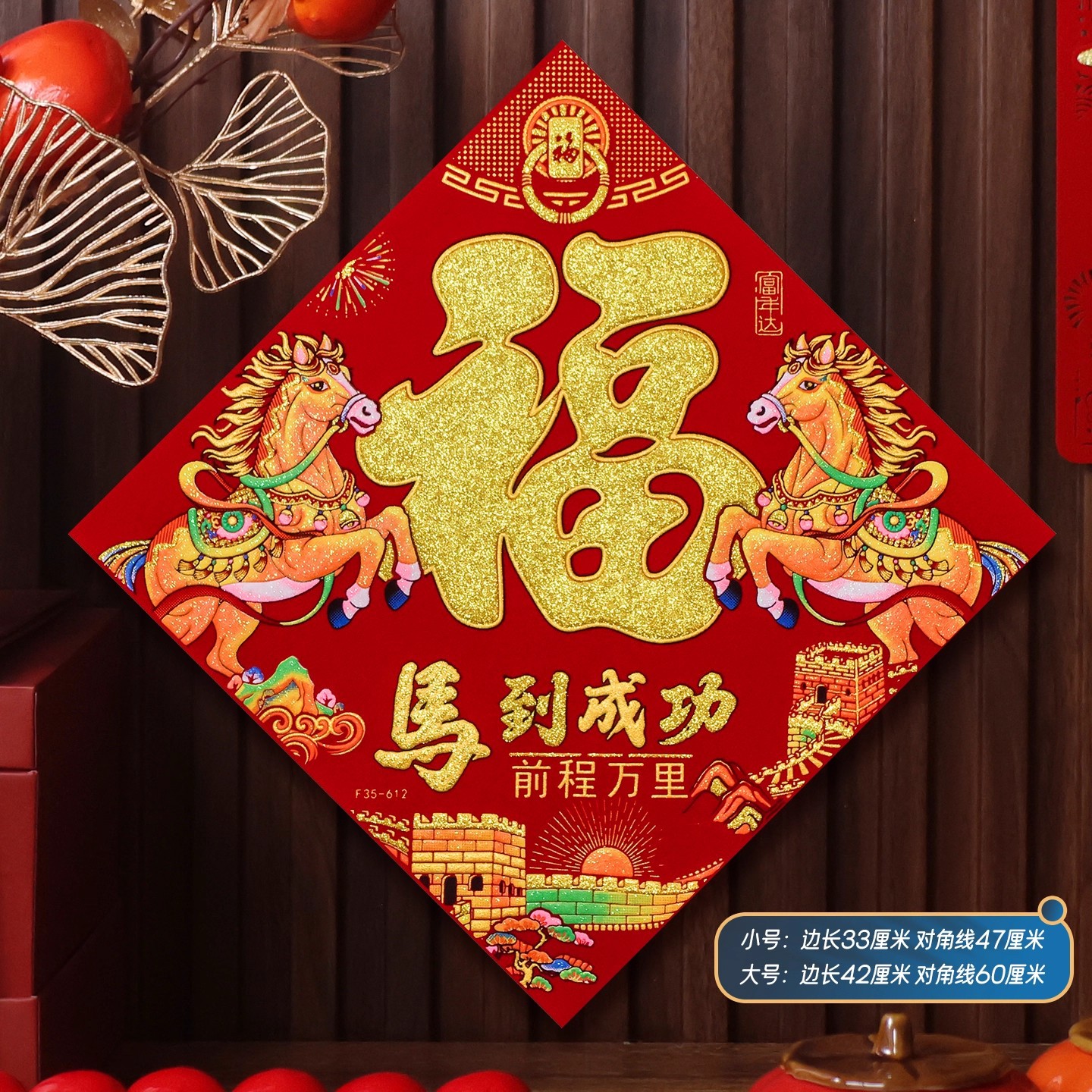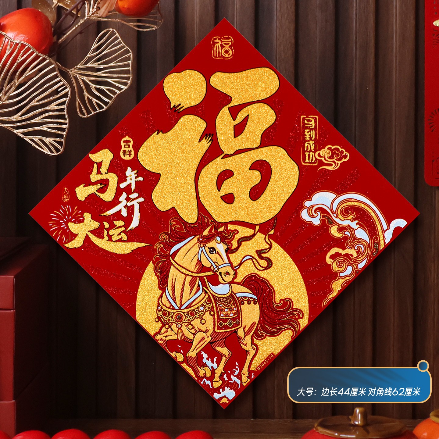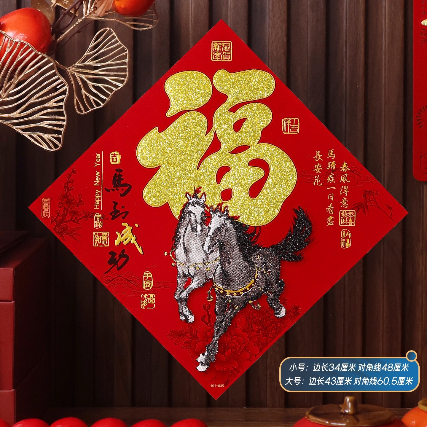 2026马年植绒布春节新年装饰过年用品自粘福字门贴纸贴墙立体福字