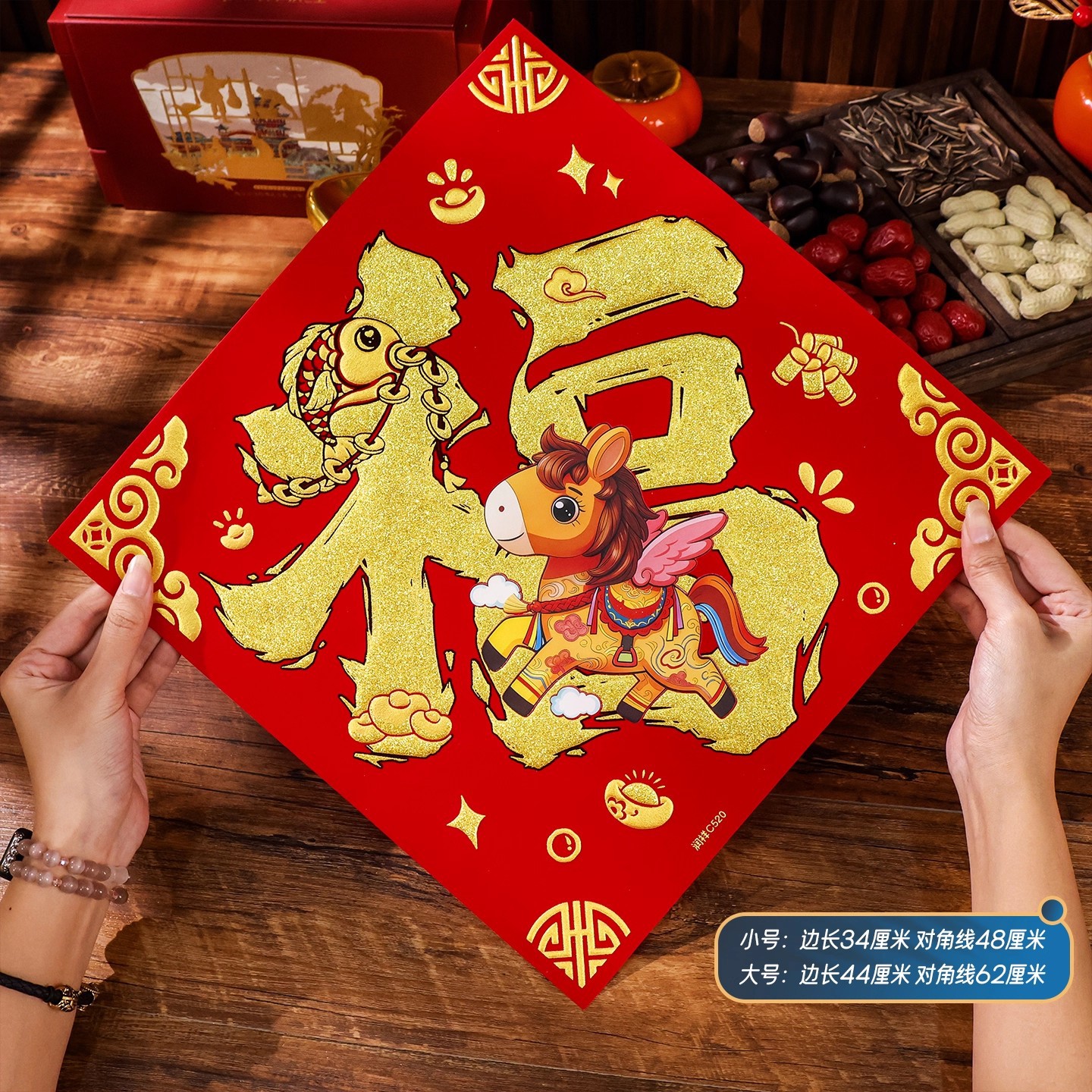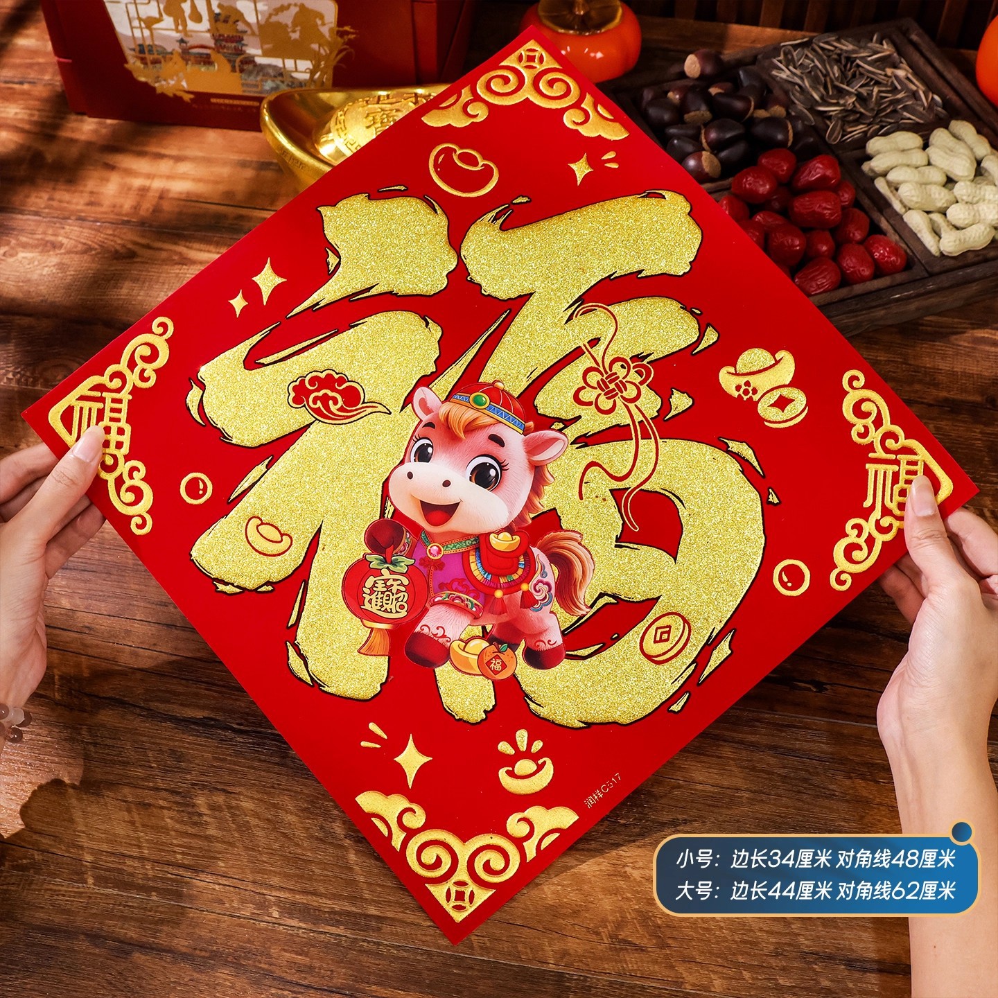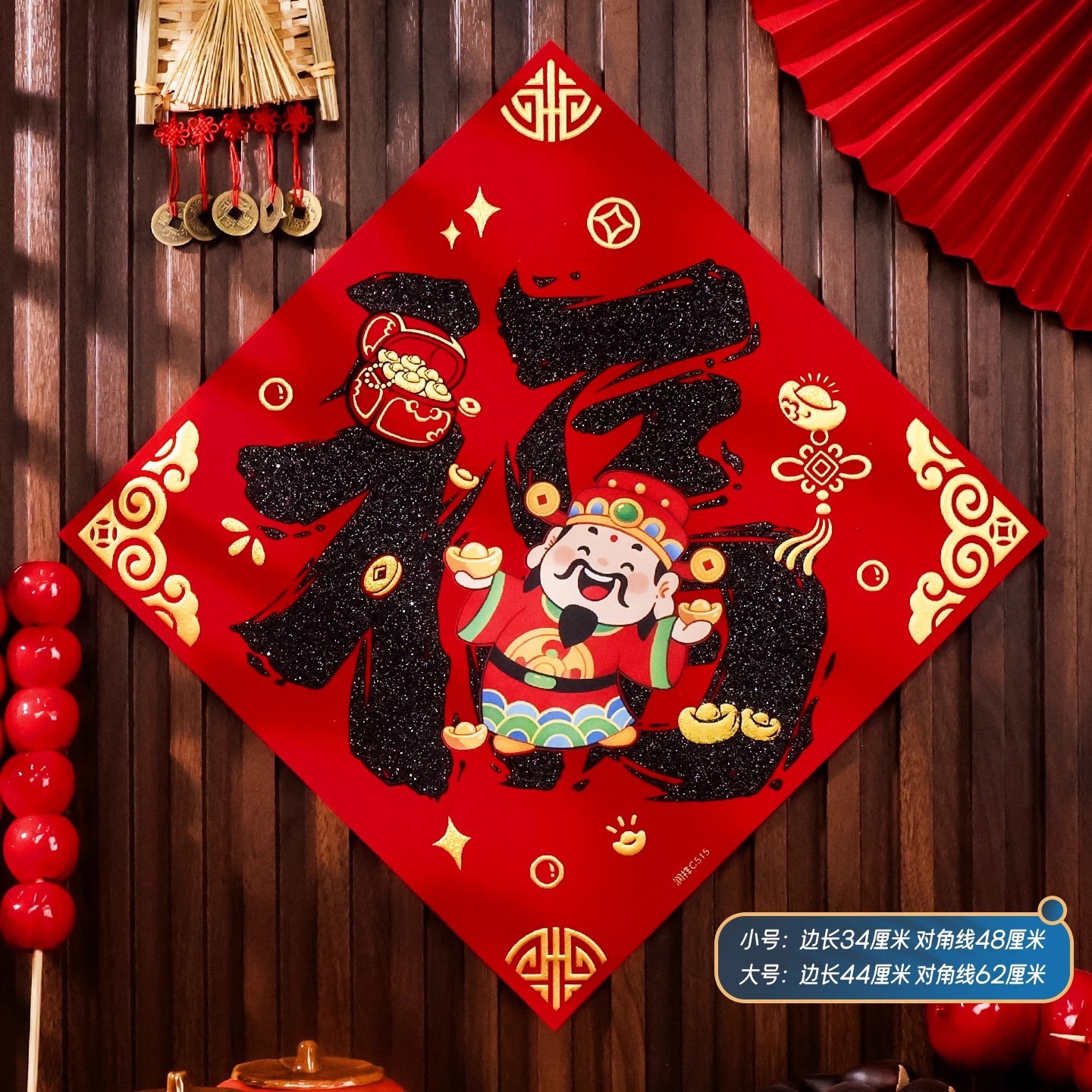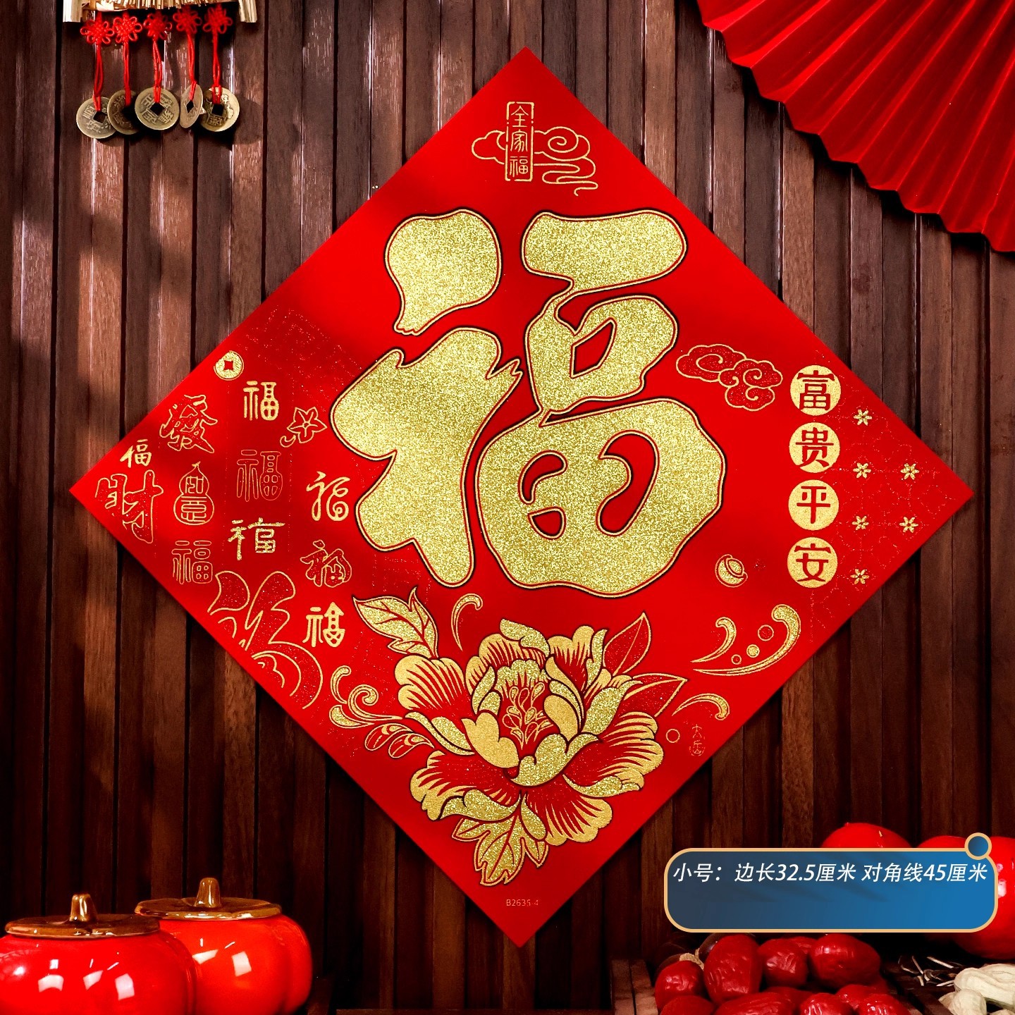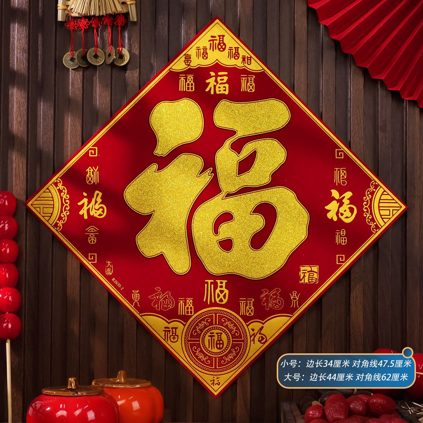 2026马年植绒布春节新年装饰过年用品自粘福字门贴纸贴墙立体福字