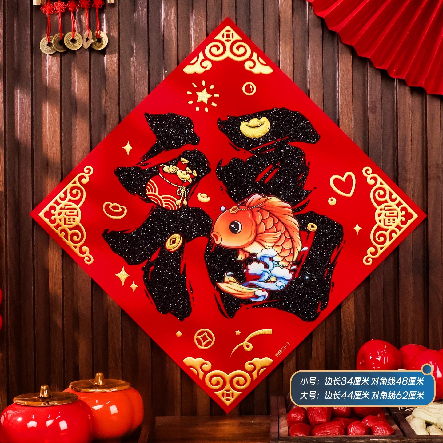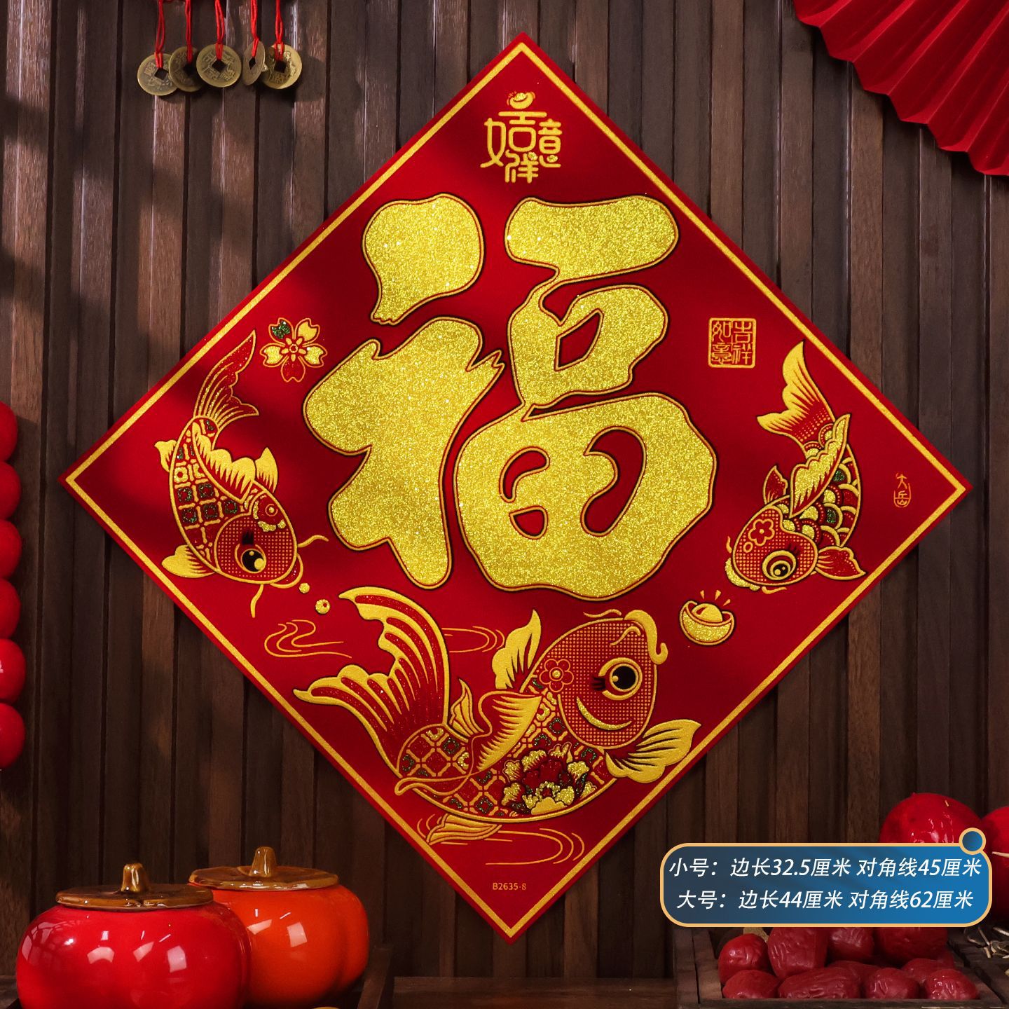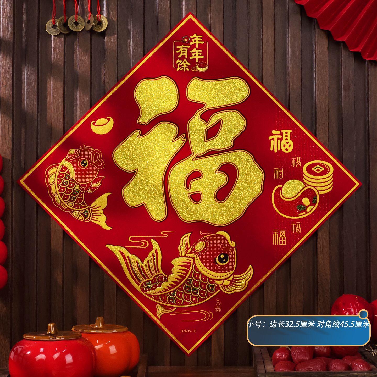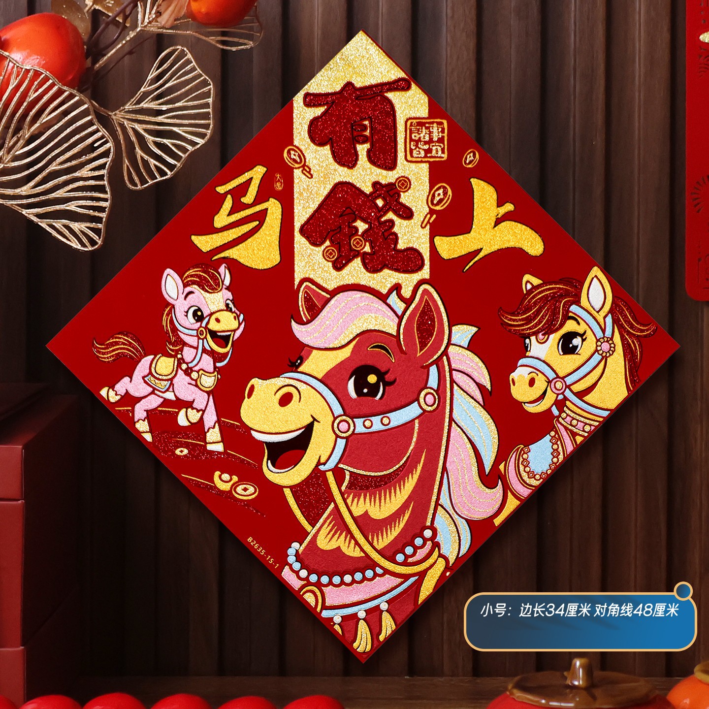 2026马年植绒布春节新年装饰过年用品自粘福字门贴纸贴墙立体福字