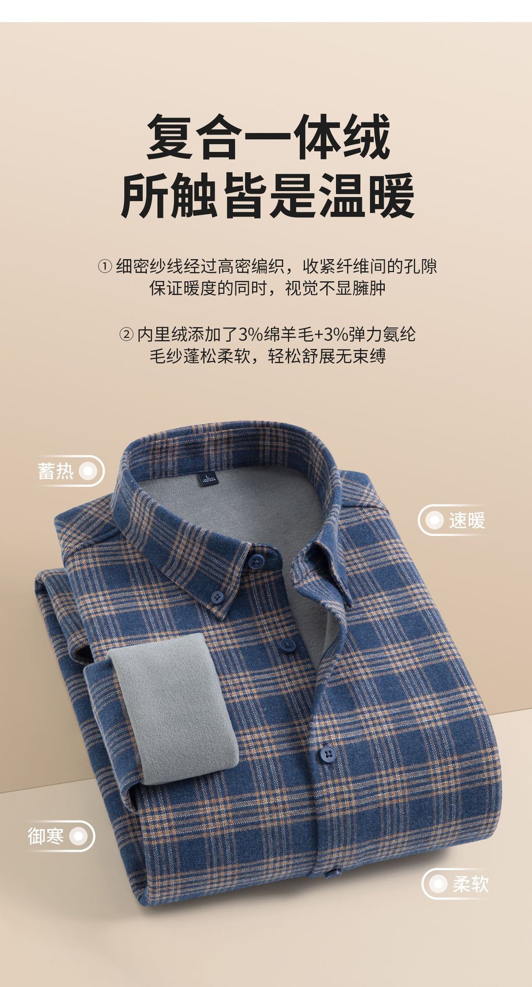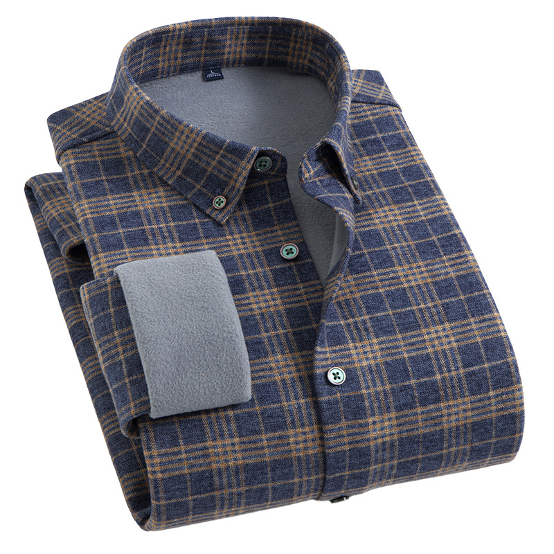 秋冬季保暖男士衬衫长袖磨毛加绒加厚一体绒休闲商务纯棉男式衬衣