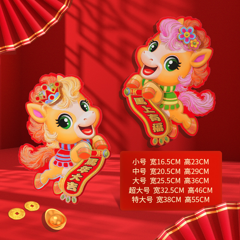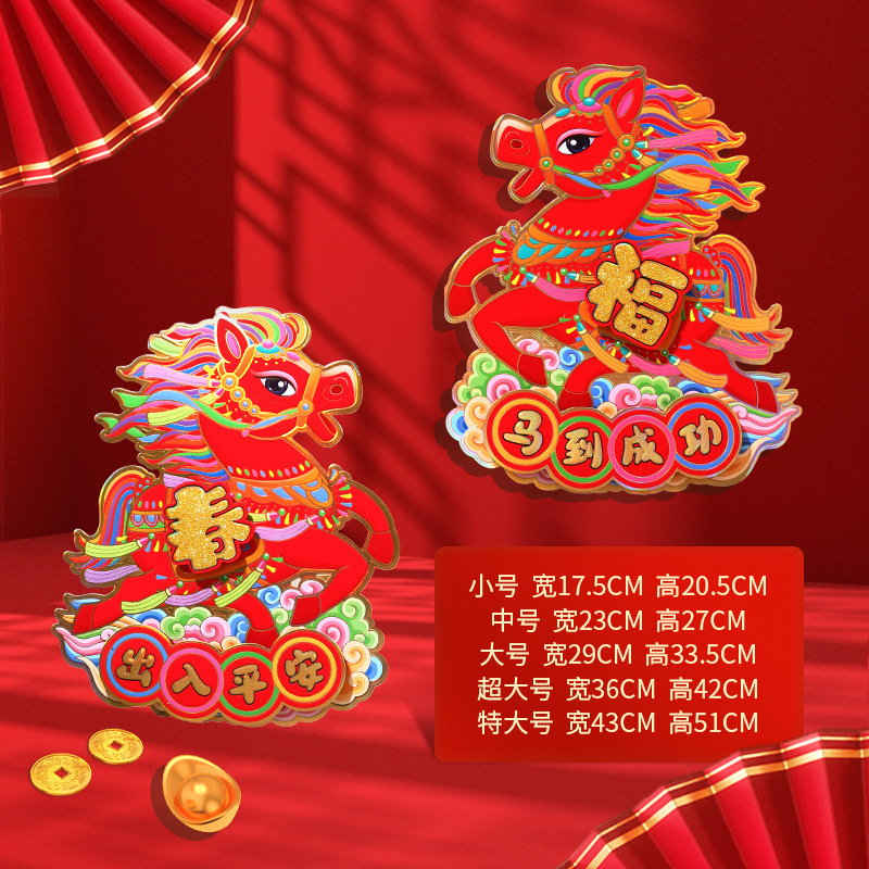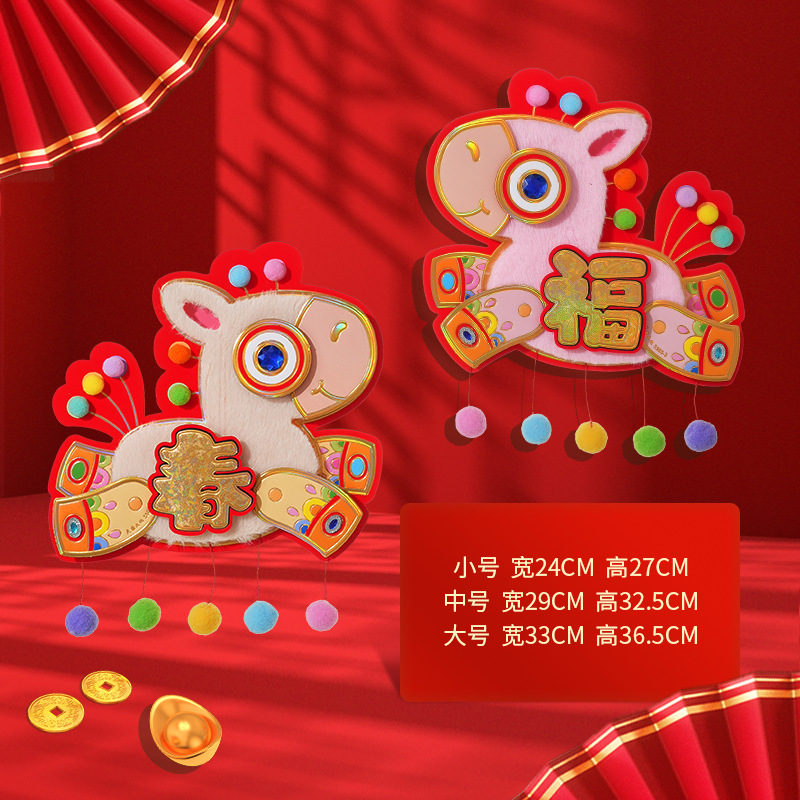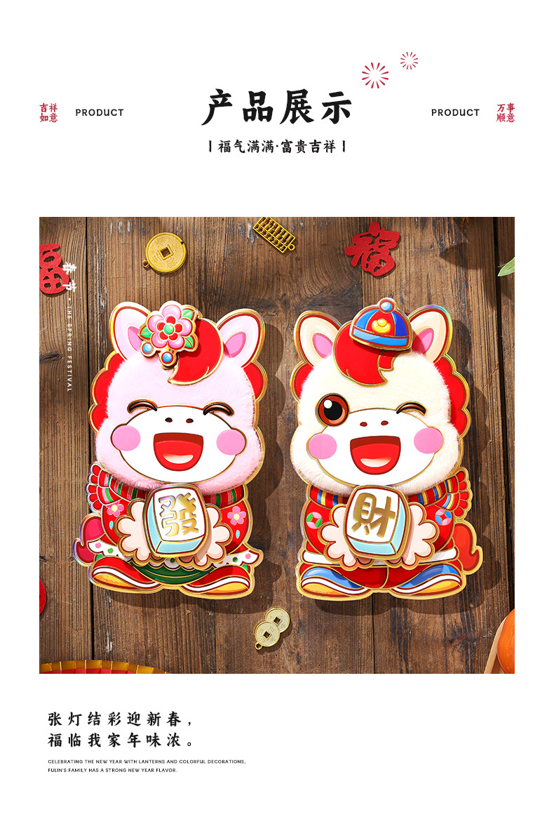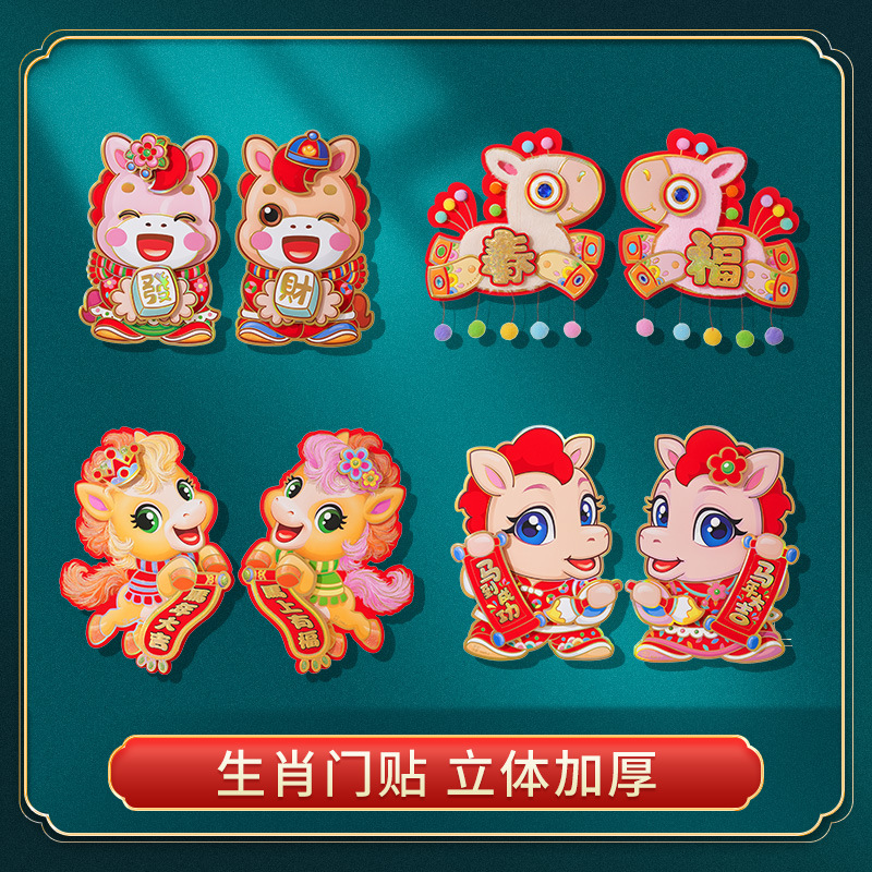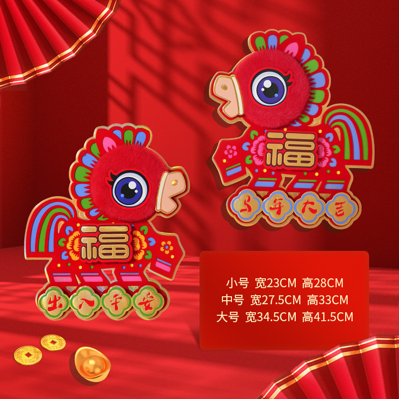 gate stickers door-to-door fu character new ornament spring festival stickers horse new year picture stickers 2026 three-dimensional new year zodiac year flocking