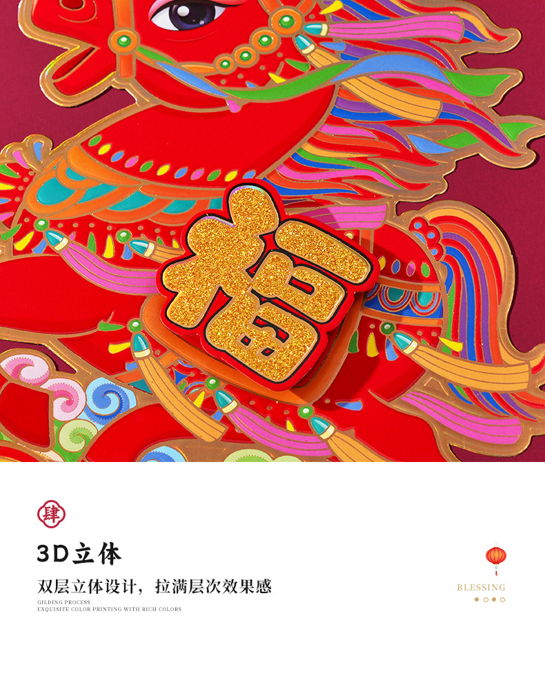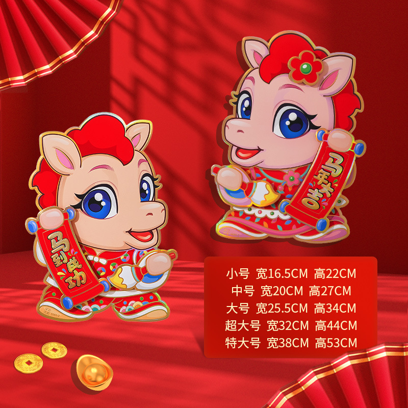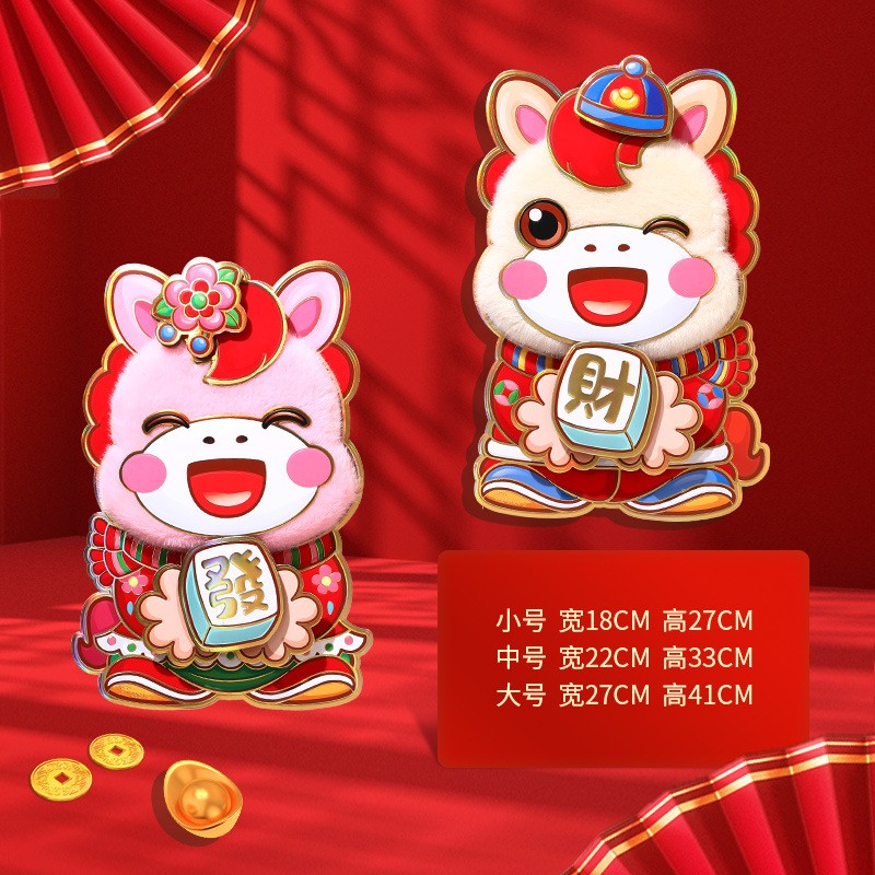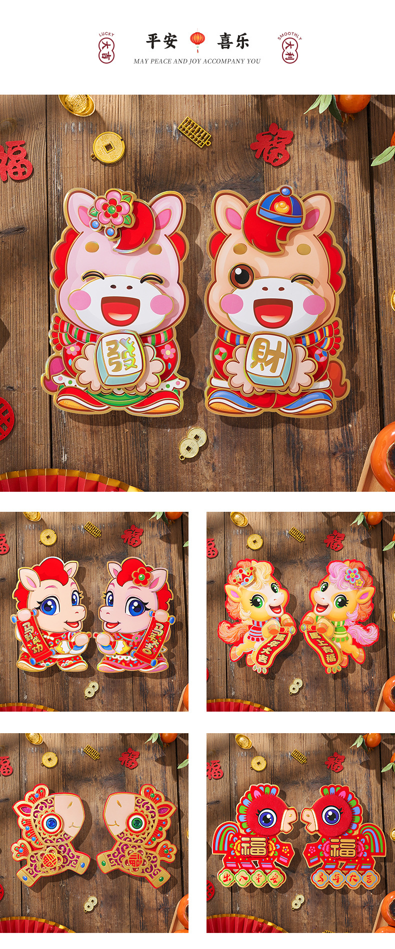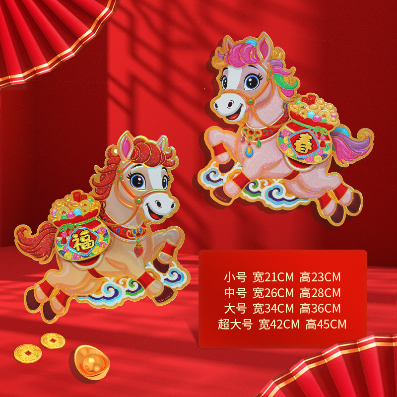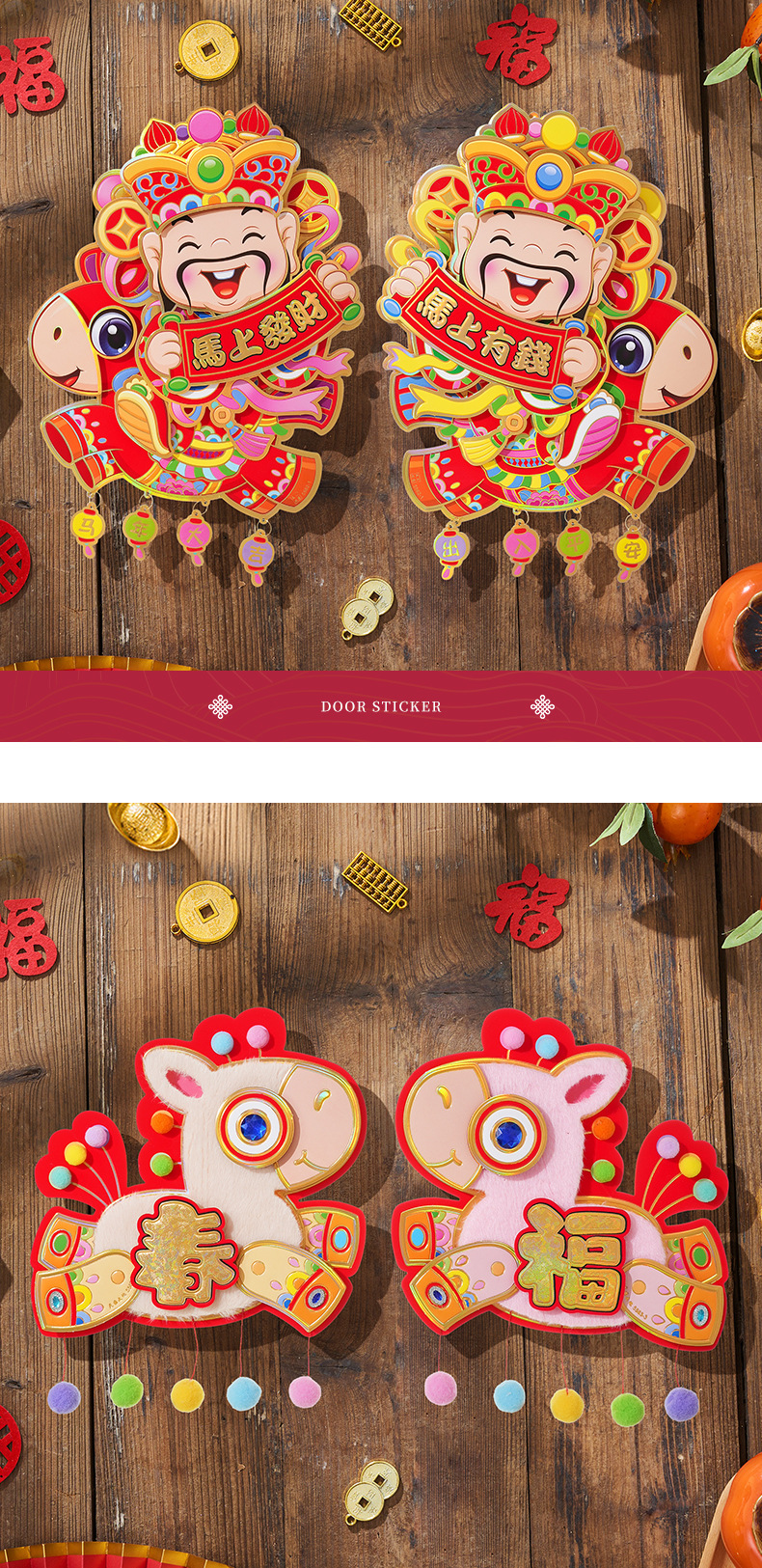 gate stickers door-to-door fu character new ornament spring festival stickers horse new year picture stickers 2026 three-dimensional new year zodiac year flocking