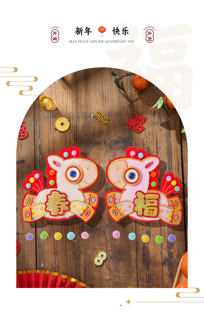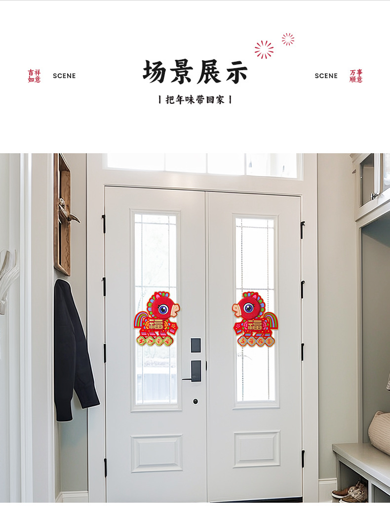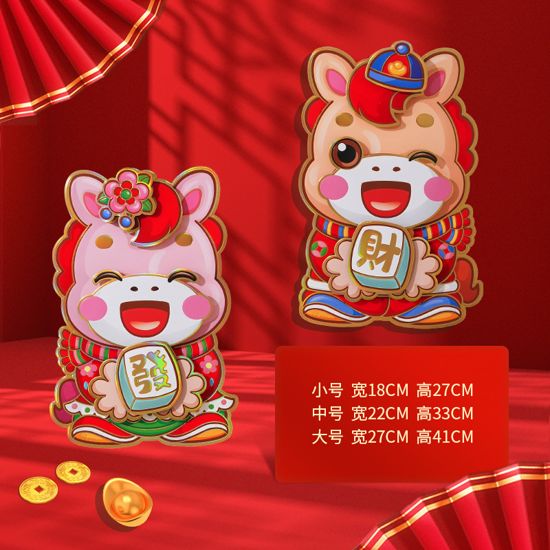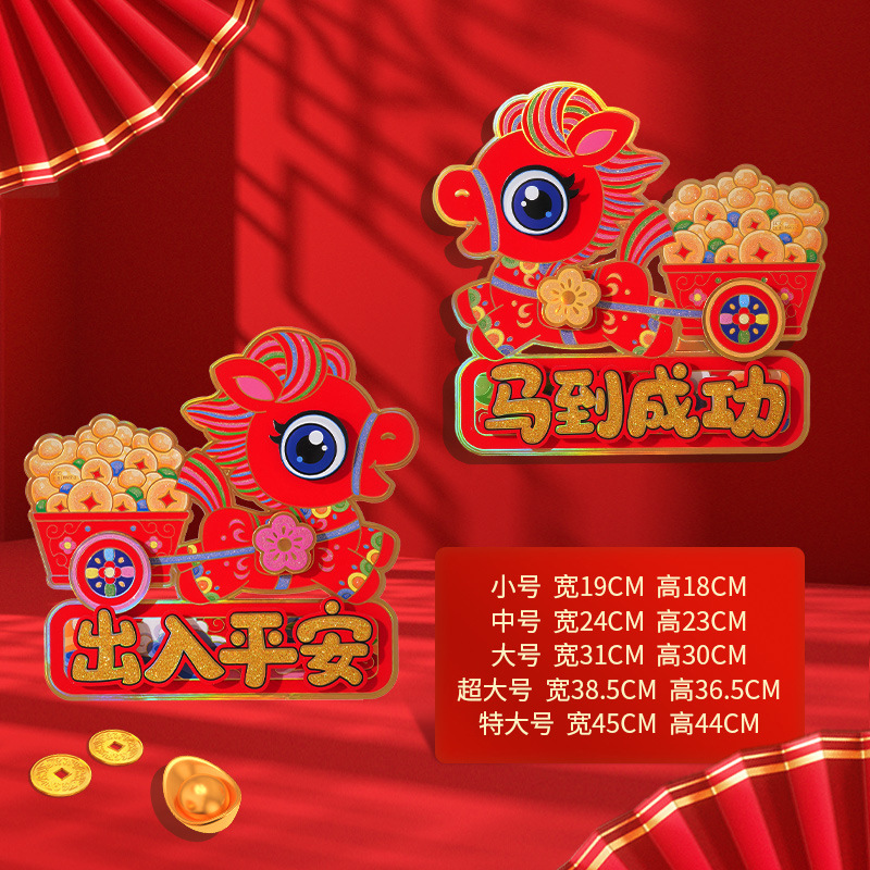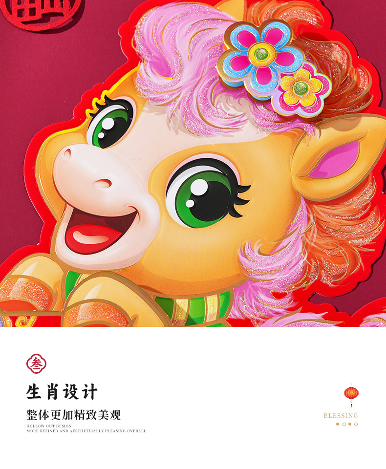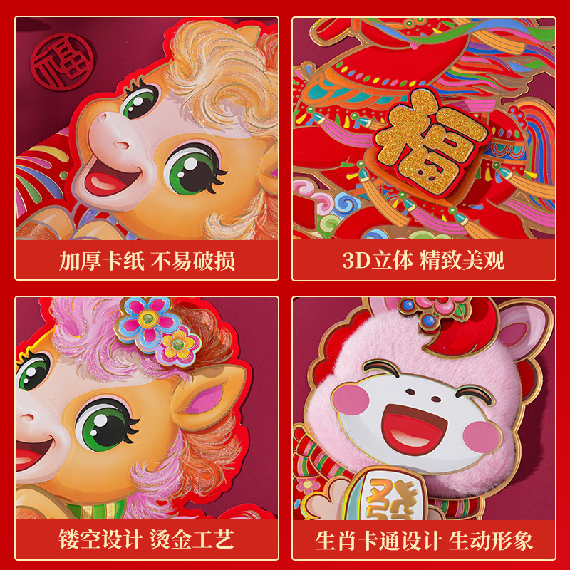 gate stickers door-to-door fu character new ornament spring festival stickers horse new year picture stickers 2026 three-dimensional new year zodiac year flocking