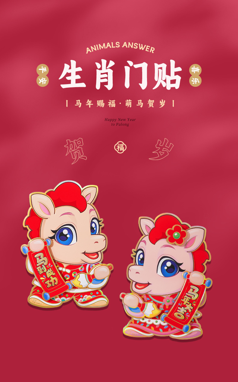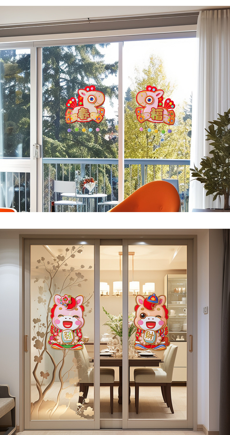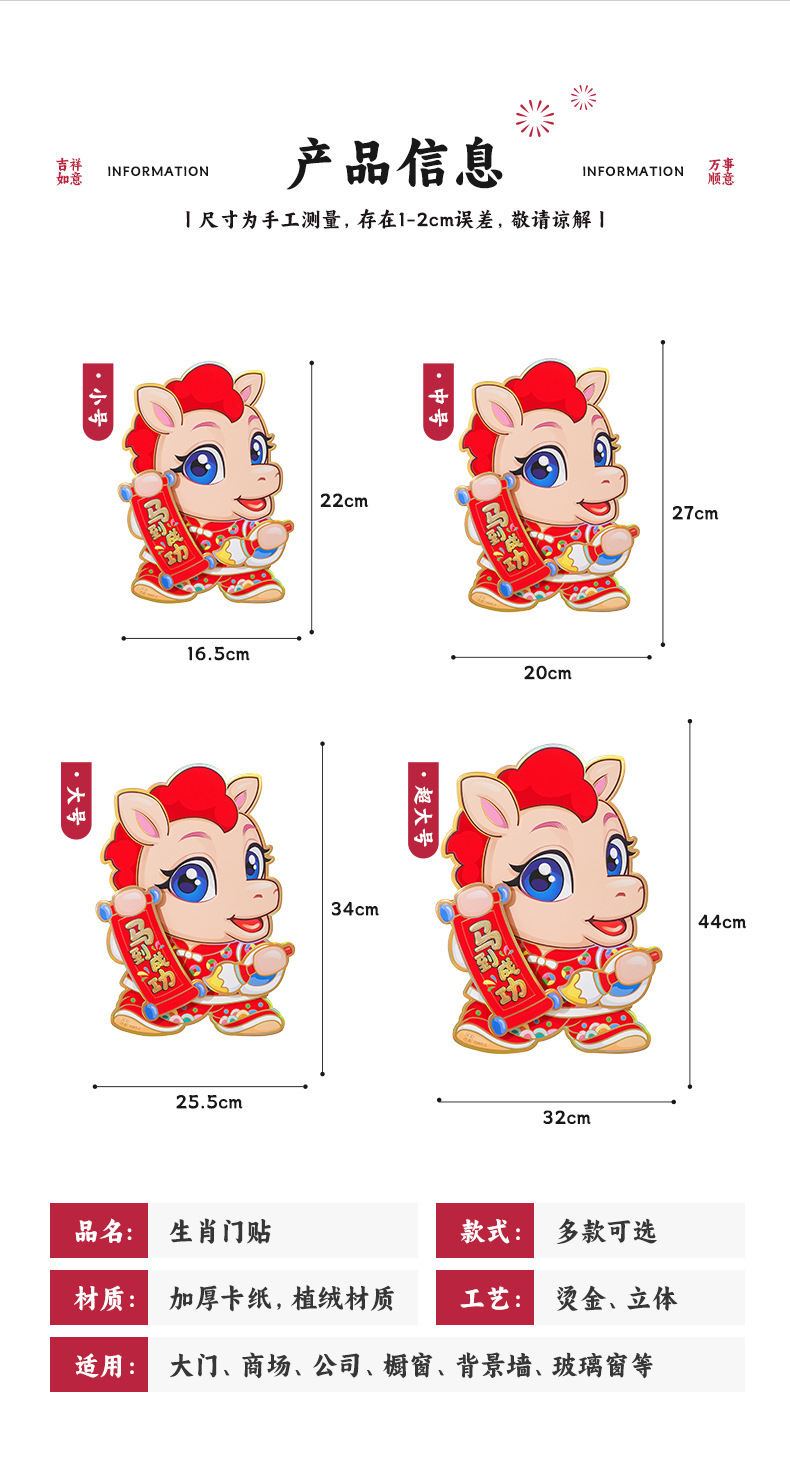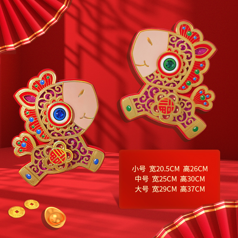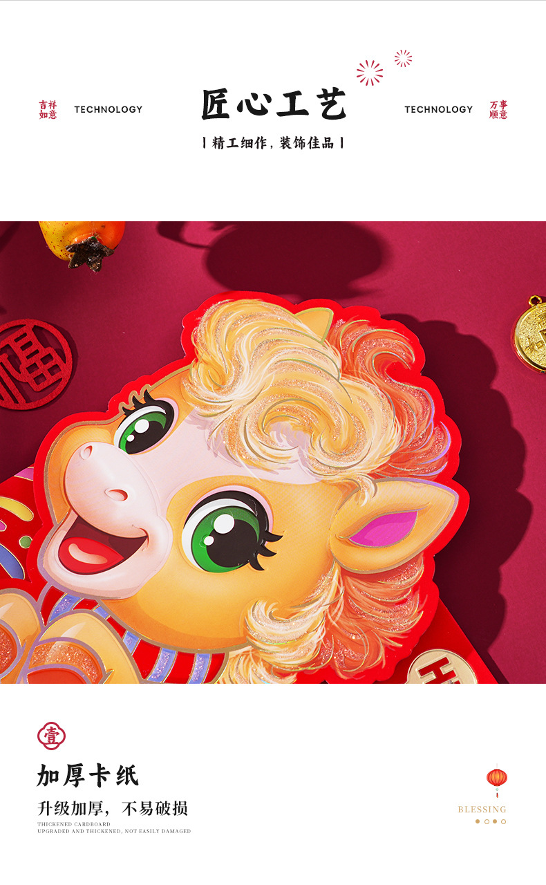 gate stickers door-to-door fu character new ornament spring festival stickers horse new year picture stickers 2026 three-dimensional new year zodiac year flocking