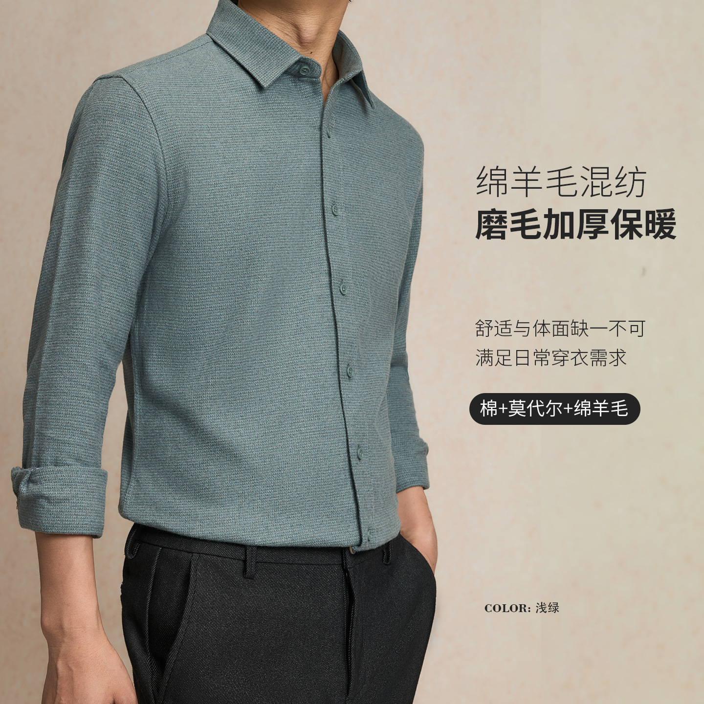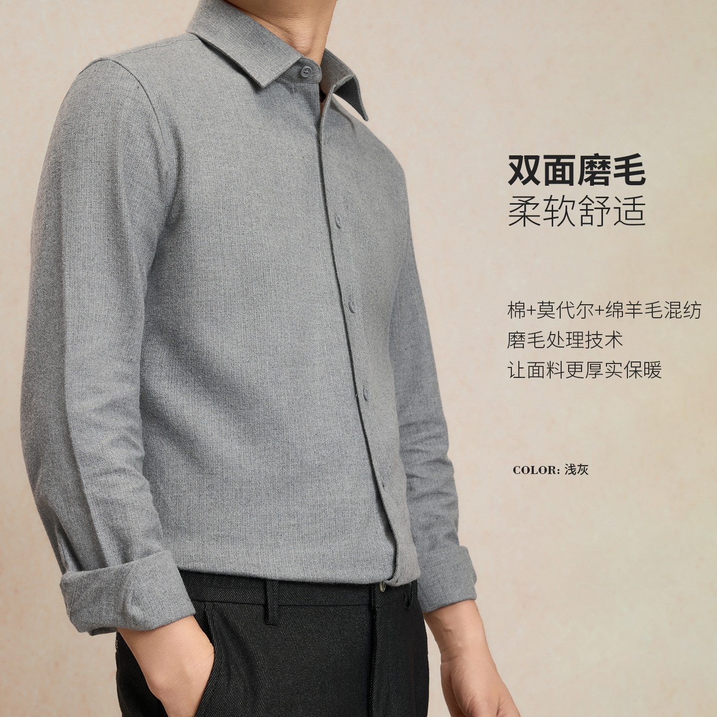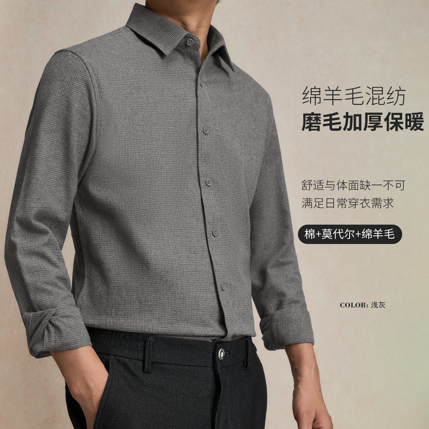 【莫代尔绵羊毛】男士衬衫2025秋冬季新款商务休闲保暖高端男衬衣