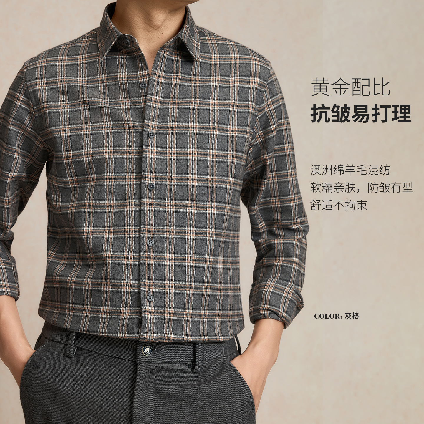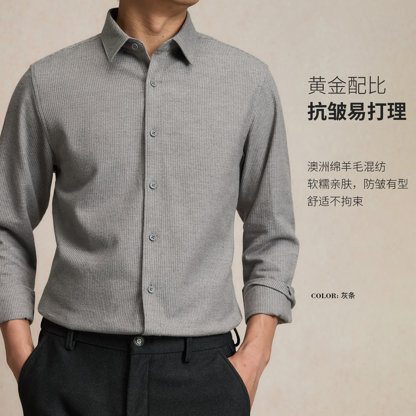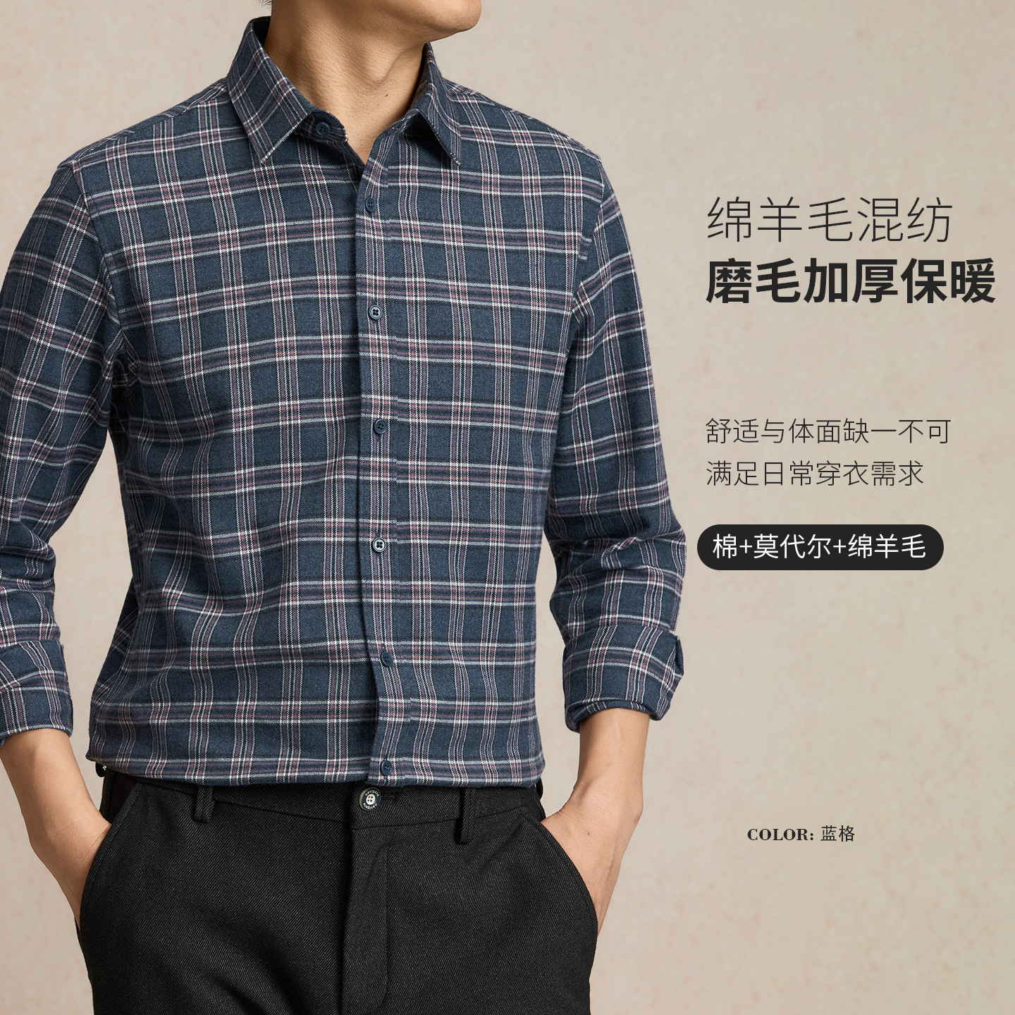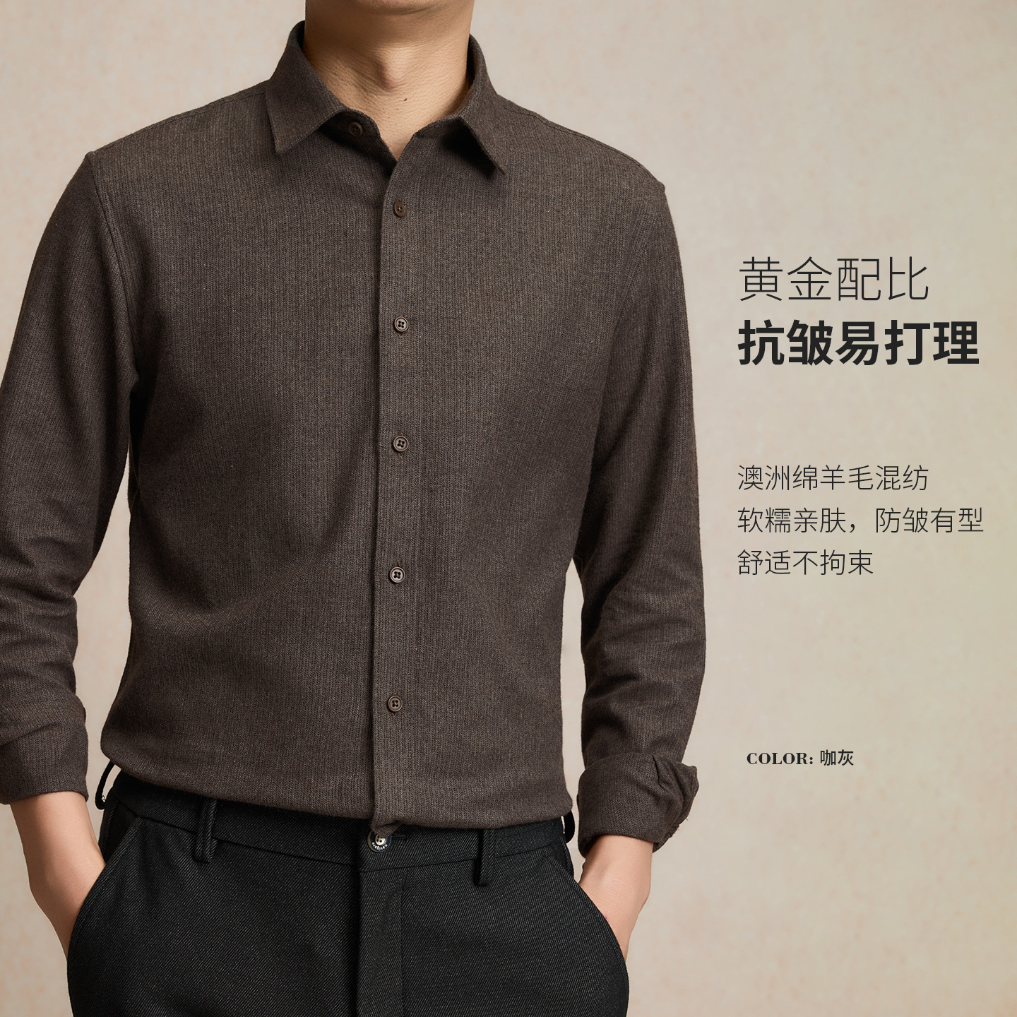 【莫代尔绵羊毛】男士衬衫2025秋冬季新款商务休闲保暖高端男衬衣