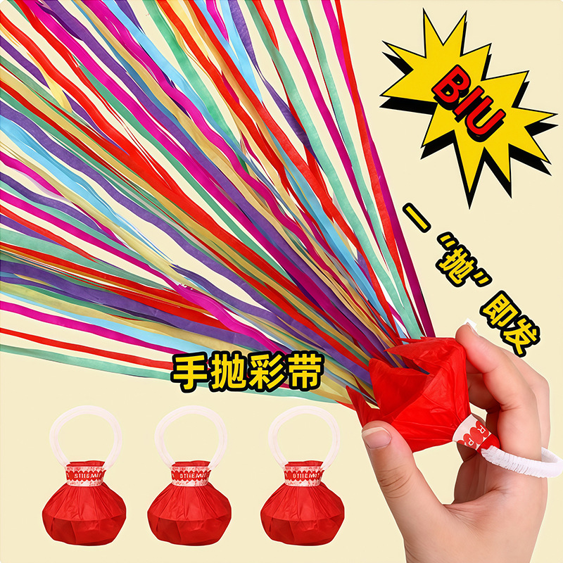 手抛彩带蜘蛛丝手环礼花结婚领证氛围感推推乐喷花筒毕业生日道具