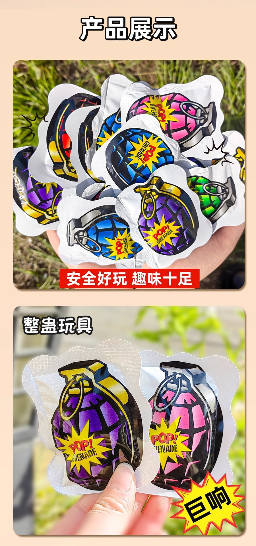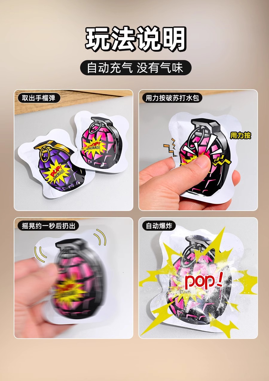 仿真自爆手雷可爆炸玩具网红自动充气摔响炮男生的整蛊解压鞭炮蛋