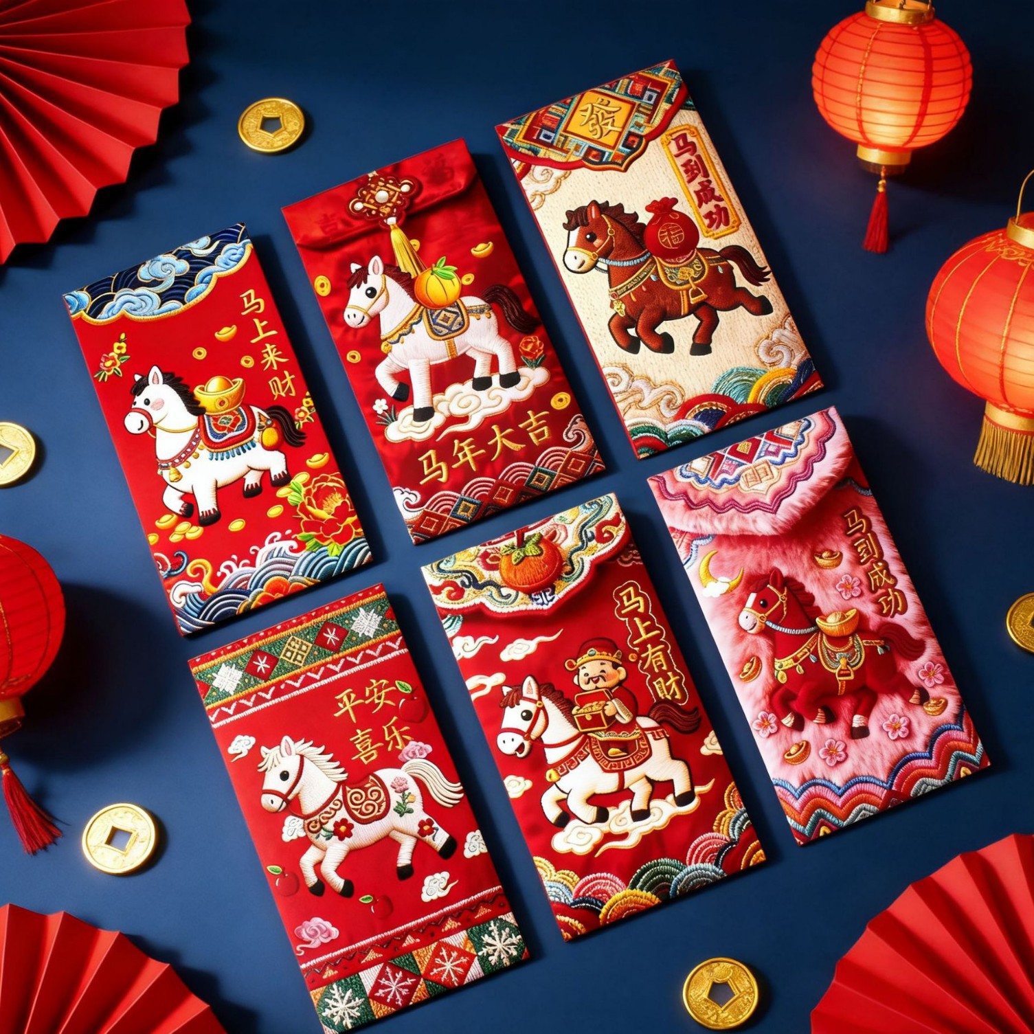 2026ins过年红包毛绒刺绣风格马年利是封国潮新年压岁钱大红包