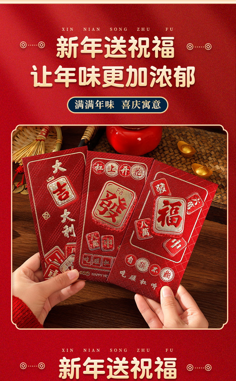 马年红包袋2026新款创意个性麻将烫金红包春节贺岁新年利是封批发