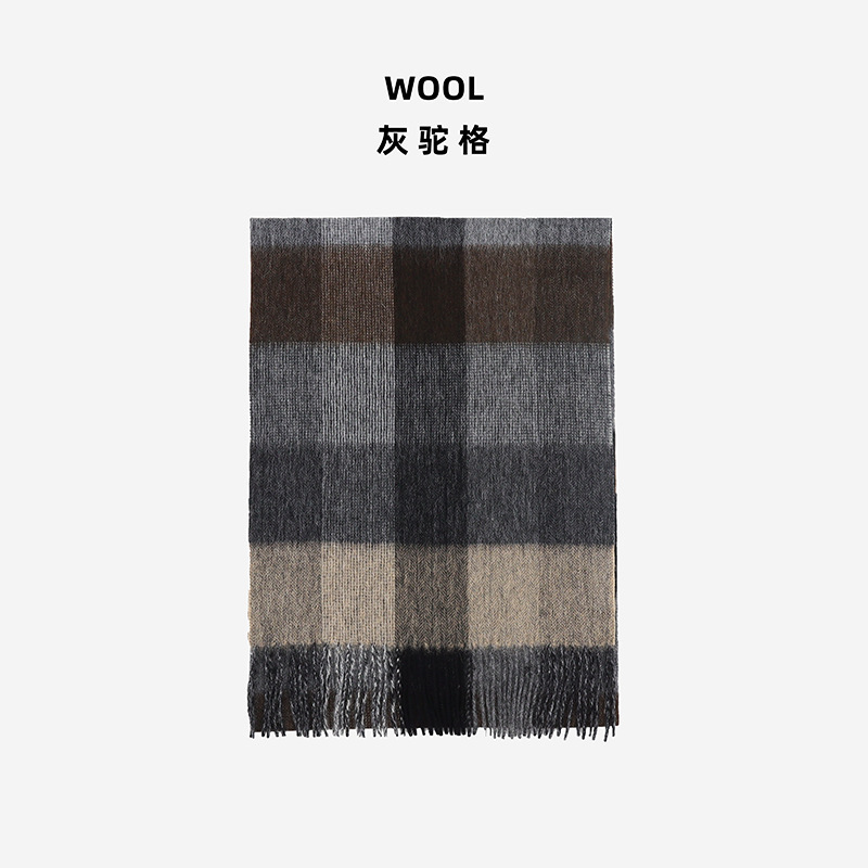 韩系100%羊毛围巾女秋冬韩系氛围感简约女士格子百搭男士流苏围脖