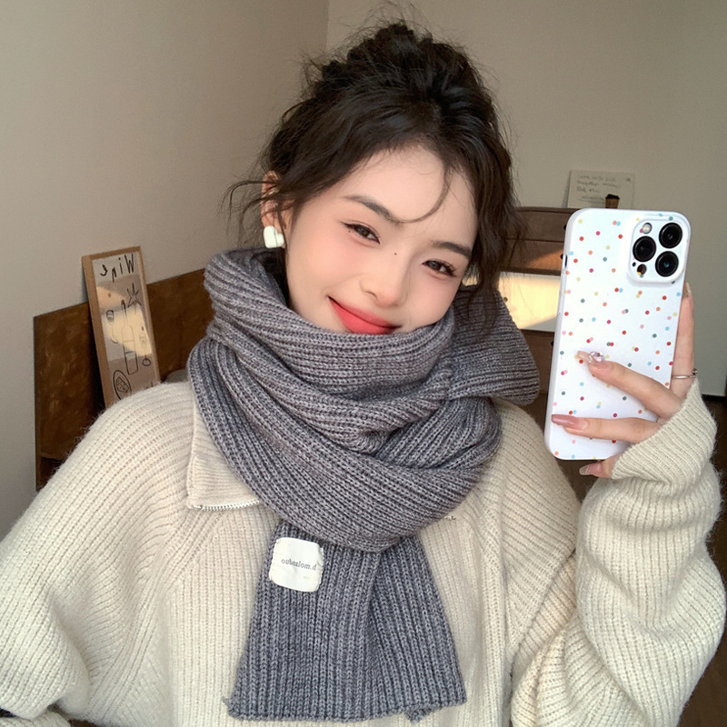 韩国针织毛线纯色围巾秋冬季保暖学院风围脖情侣百搭时尚韩系围巾