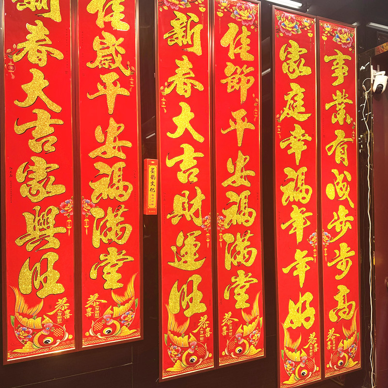 马年新款新年对联 2026纯黑字对联书法对联 植绒春联年货厂家批发