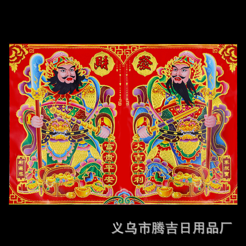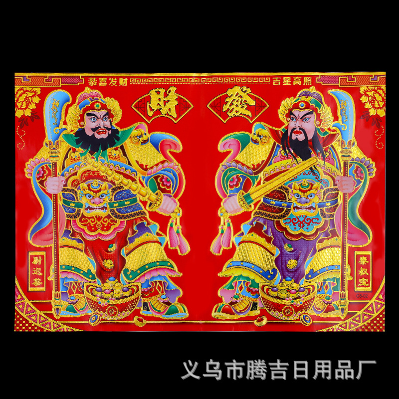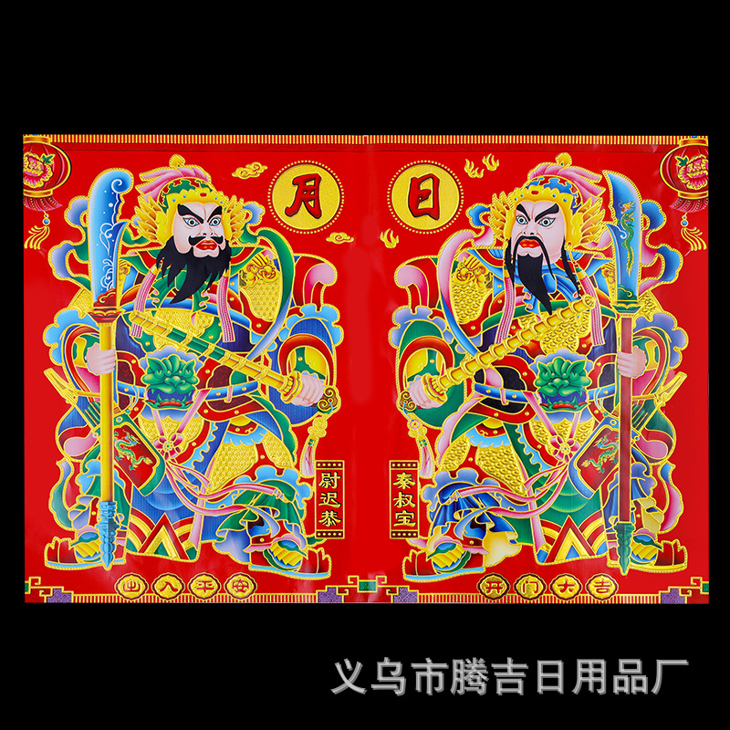 马年新款满烫金大门门神春节铜版纸日月发财门神年画批货厂家批发